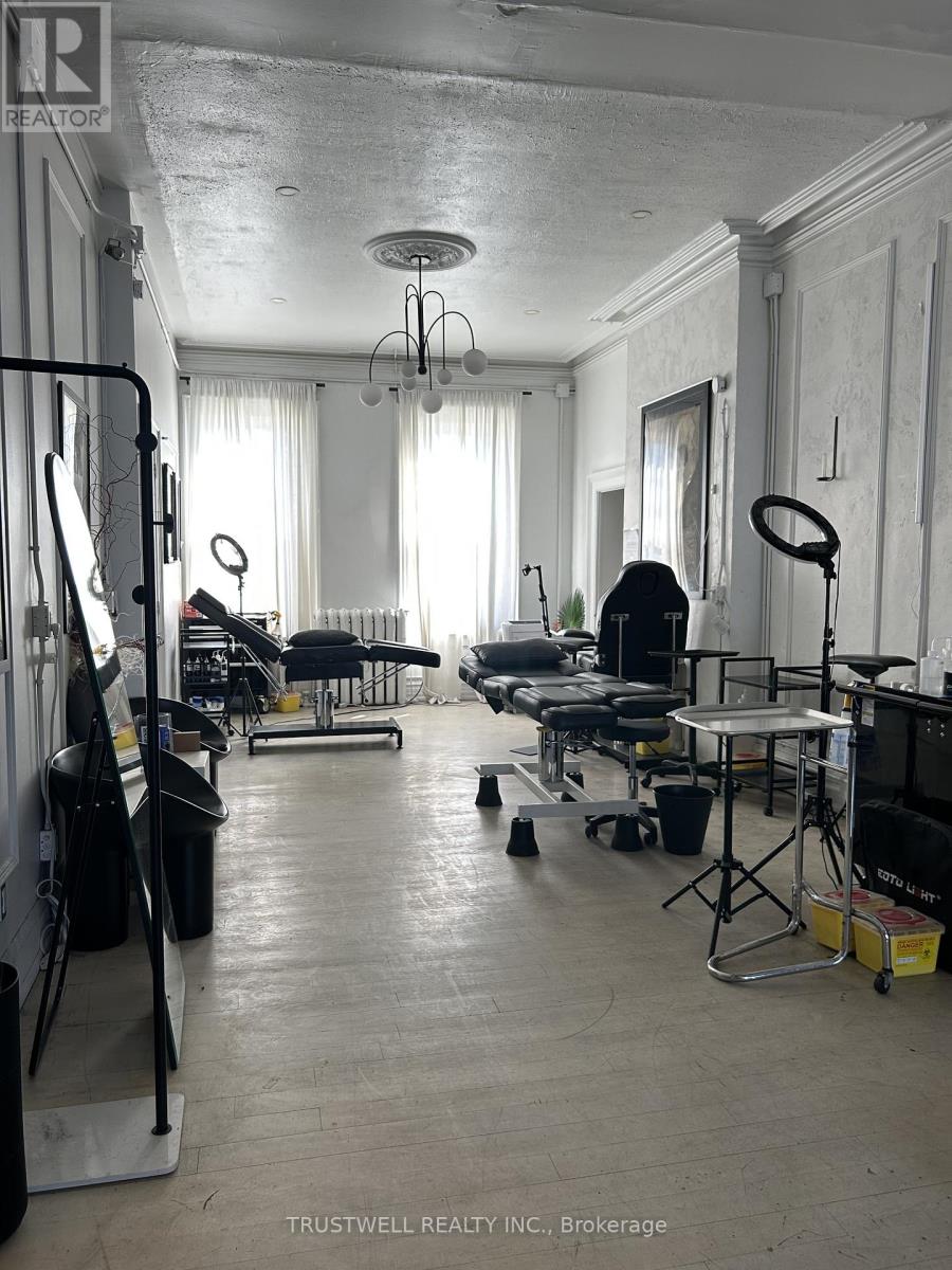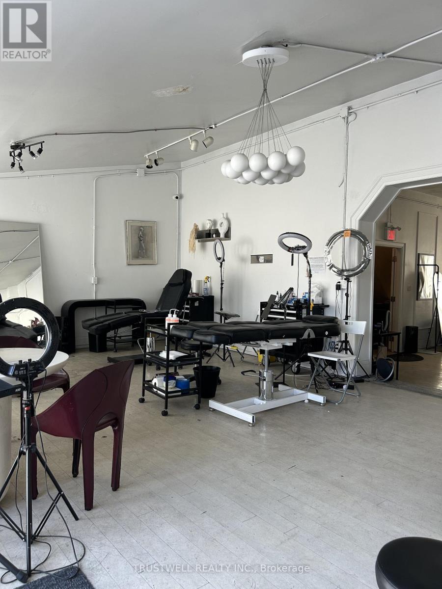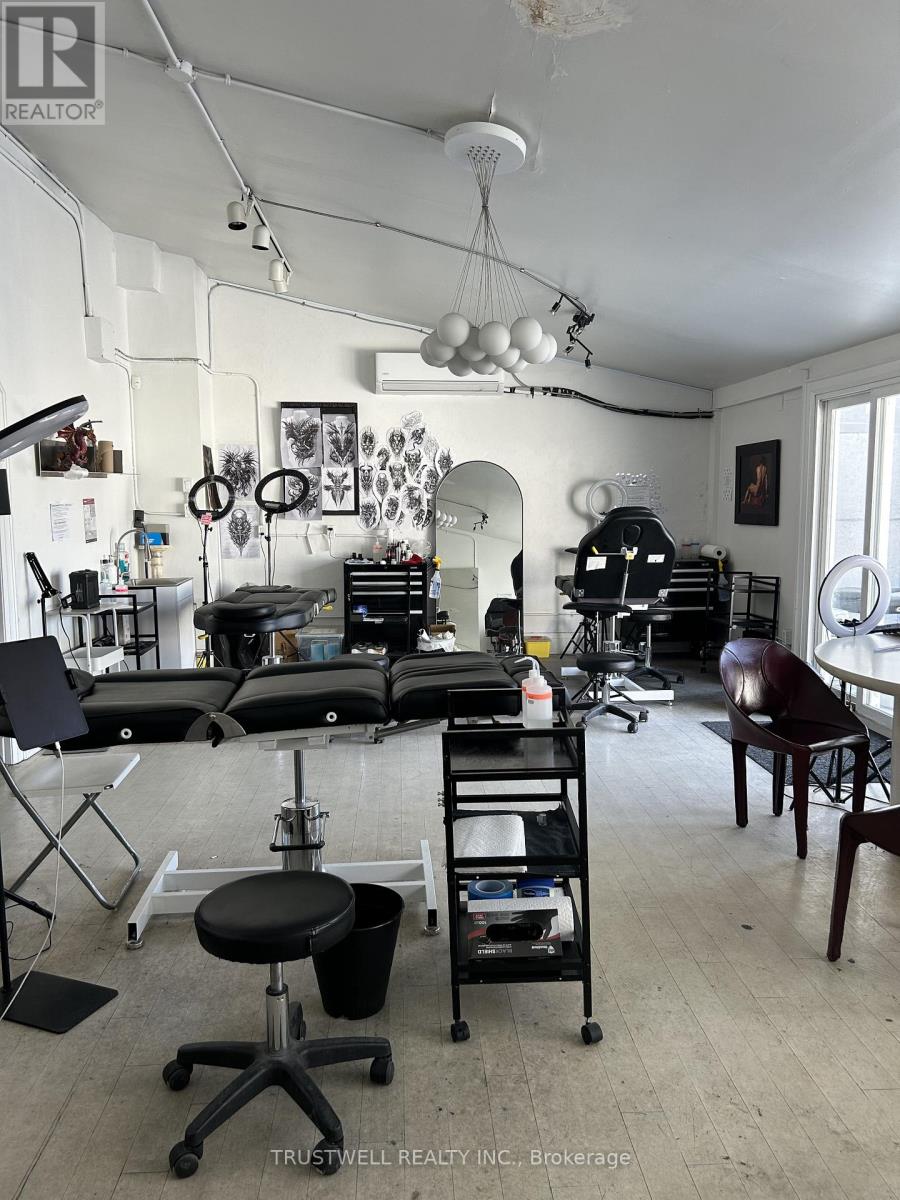 Beautiful and versatile 1,400 sq ft second-floor commercial unit available in a highly sought-after area just steps from Kensington Market and Little Italy. Situated in a vibrant neighborhood with heavy foot traffic and easy access to downtown, this bright and inviting space offers endless possibilities for creative and professional uses.The unit features high ceilings, large windows, and abundant natural light, creating an open and inspiring atmosphere. Currently operating as a tattoo studio, the space is turn-key and well suited for a wide range of businesses including an art gallery, photography studio, creative workspace, café, salon, wellness studio, event space, or boutique retail concept. Additional highlights include two bathrooms and an impressive 800 sq ft private patio. This is a rare opportunity to secure a unique and character-filled space in one of the city's most dynamic and culturally rich neighborhoods. (id:4555)