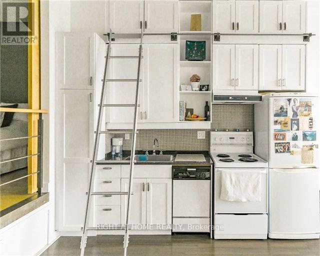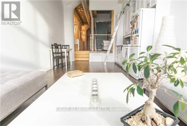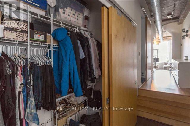 Experience authentic loft living in the iconic Merchandise Building, right in the heart ofdowntown Toronto. This bright and spacious loft offers a functional open-concept layout withsoaring 12-foot concrete ceilings, exposed ductwork, and large west-facing windows with skylineviews, creating the perfect blend of industrial character and modern comfort.The raised bedroom area features generous storage underneath, providing exceptional space-rarely found in lofts. Laminate flooring throughout enhances the clean, modern aesthetic.Residents enjoy state-of-the-art amenities, including a 24-hour concierge and an impressive fitness centre, all within one of Toronto's most sought-after historic buildings.Hydro is additional. AAA tenants only. (id:4555)