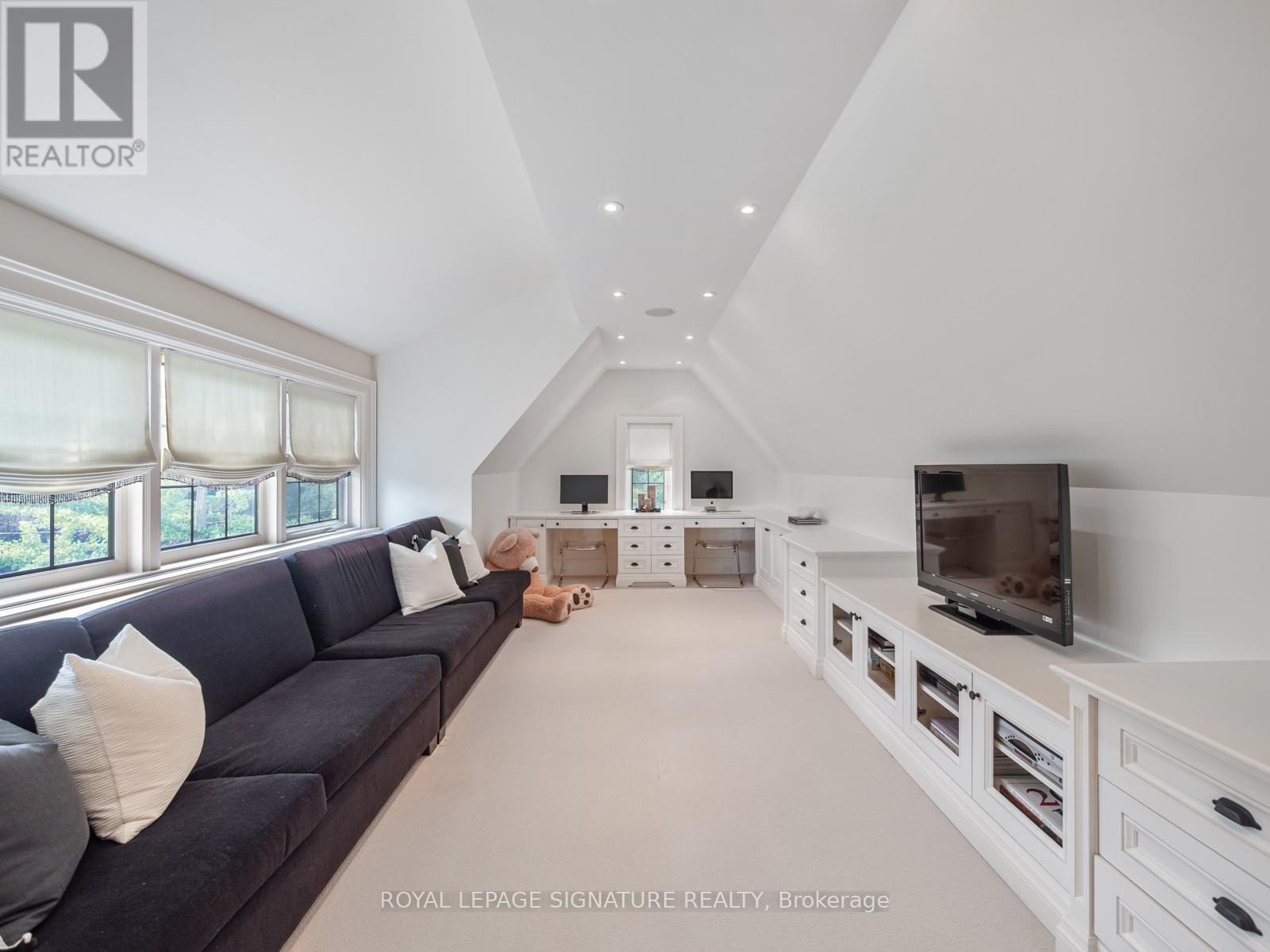 This landmark Tudor residence is located on one of the most prestigious streets in Forest Hill South. Owned by only two families since its original construction, the home has been taken back to the studs and redesigned with an uncompromising commitment to quality. Every element has been elevated blending timeless architectural charm with refined, modern finishes. Offering over 5,000 sq.ft. above grade (plus a fully finished lower level), the home opens with a grand marble-clad foyer framed by classic wood-panelled walls. The main level includes formal living and family rooms, both with gas fireplaces, and an entertainers dream kitchen featuring marble countertops and backsplash, gas-burning stove, oversized island, and top-tier built-in appliances. The formal dining room comfortably seats 12 and connects seamlessly to a private, landscaped backyard terrace. The second level is anchored by a tranquil primary suite with dual walk-in closets, a spa-inspired five-piece ensuite, and a gas fireplace. A second bedroom offers its own ensuite, dressing area, and an adjacent home office. The third floor features three more bedrooms with custom built-ins and a spacious family/rec room. The lower level includes a nanny/in-law suite, custom wine cellar, gym, laundry, storage, and a mudroom with direct access to the built-in two-car garage and private side entrance. Located just moments from Forest Hill Village, top-rated schools, and the area's finest parks and amenities, this is a rare opportunity to own one of Toronto's most iconic and sophisticated homes. (id:4555)