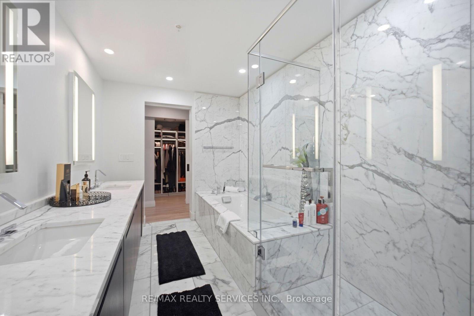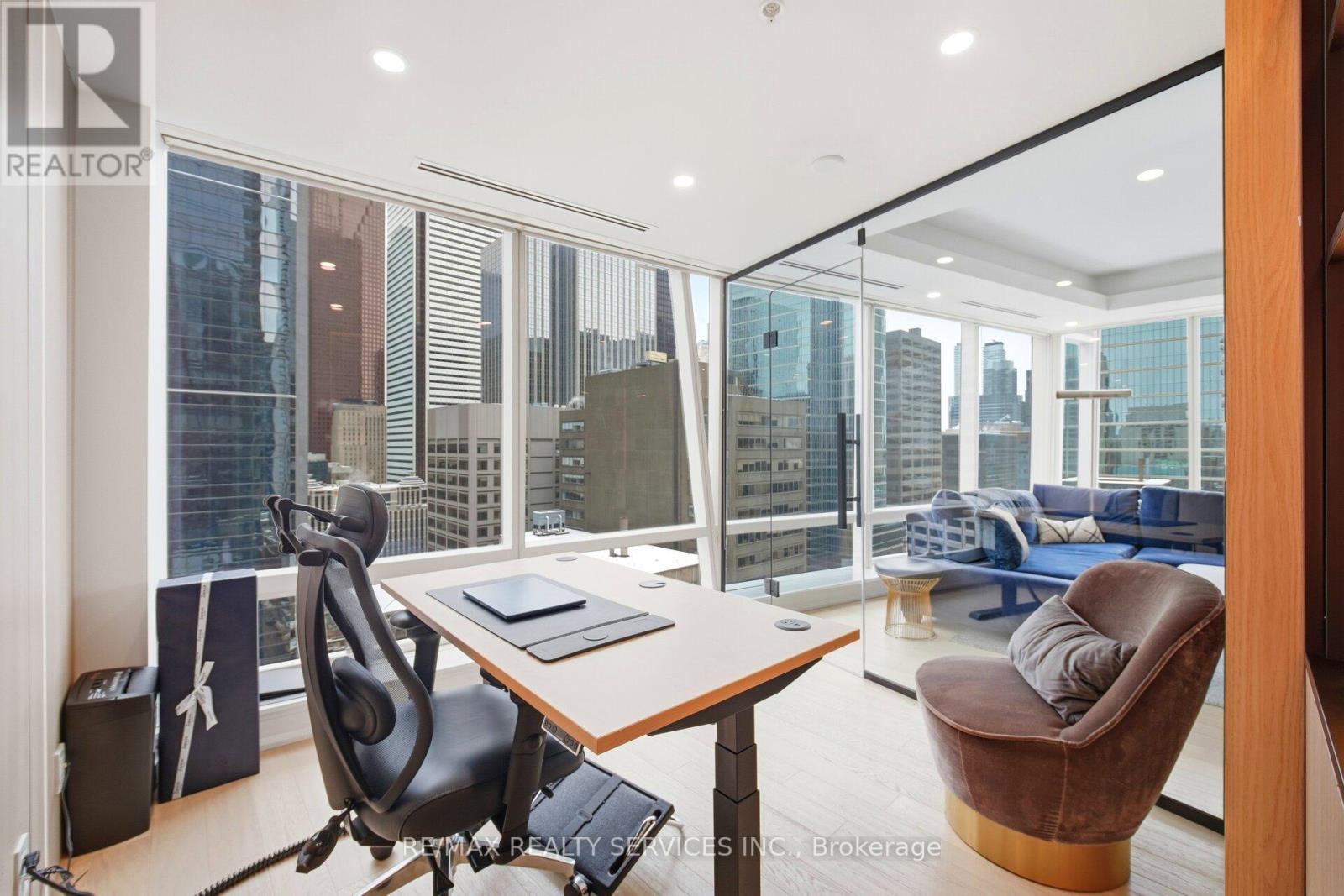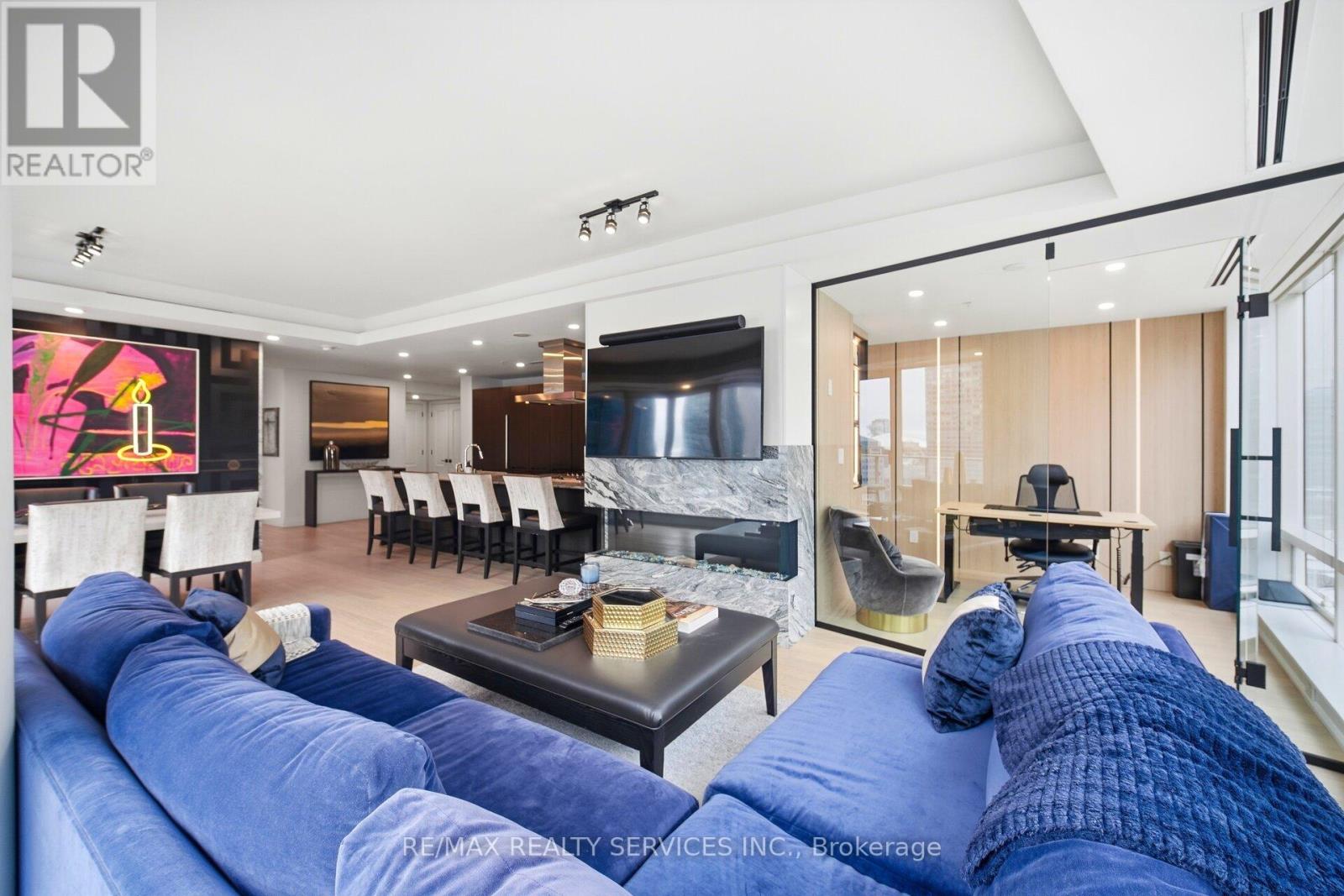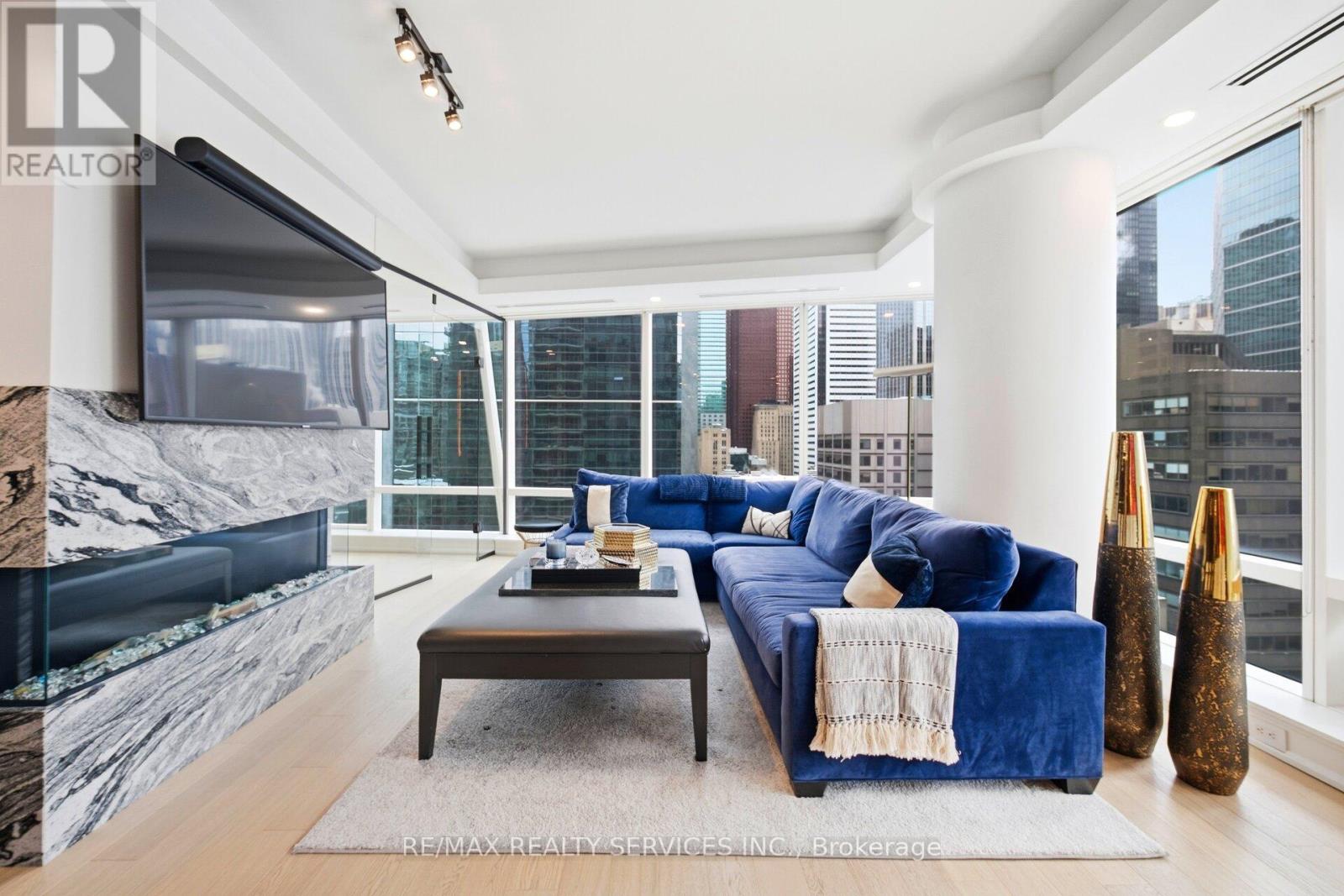 Shangri-La Hotel & Residences In The Heart Of Toronto's Financial And Entertainment Districts. This Extensively Upgraded 1,683 Sq Ft South-East Corner Suite Offers 2 Bedrooms + Enclosed Den And 2.5 Baths With Breathtaking, Unobstructed Views Of The CN Tower, Toronto Skyline, And The Vibrant Core Of The City. Featuring Brand New Hardwood Flooring Throughout, A Custom-Built Bar Seamlessly Integrated Into The Designer Boffi Kitchen With Bespoke Shelving, And Premium Miele& Sub-Zero Appliances. The Large Primary Bedroom Showcases A Custom-Built Walk-In Closet And A Stunning 5-Piece Ensuite Finished In Carrara Marble Countertops And Floors, Complete With A Full Soaker Tub And Separate Glass-Enclosed Shower. Each Bedroom Features Its Own PrivateEnsuite Bath, Offering Elevated Comfort And Privacy. The Den Is Enclosed With Sleek Glass Doors, Creating A Fully Separate Executive Office Or Optional Third Bedroom. The Dining Room Is Elevated With Custom Versace Wallpaper, While The Living Area Is Anchored By A Statement Marble Fireplace. Residents Enjoy 24-Hour Concierge, Valet, Doorman Service, And Access To Five-Star Hotel Amenities Including Lobby Bar, Full-Service Spa, Fitness Centre, Yoga & Spin Studios, Indoor Pool, Hot Tub, And In-Suite Hotel Services. (id:4555)