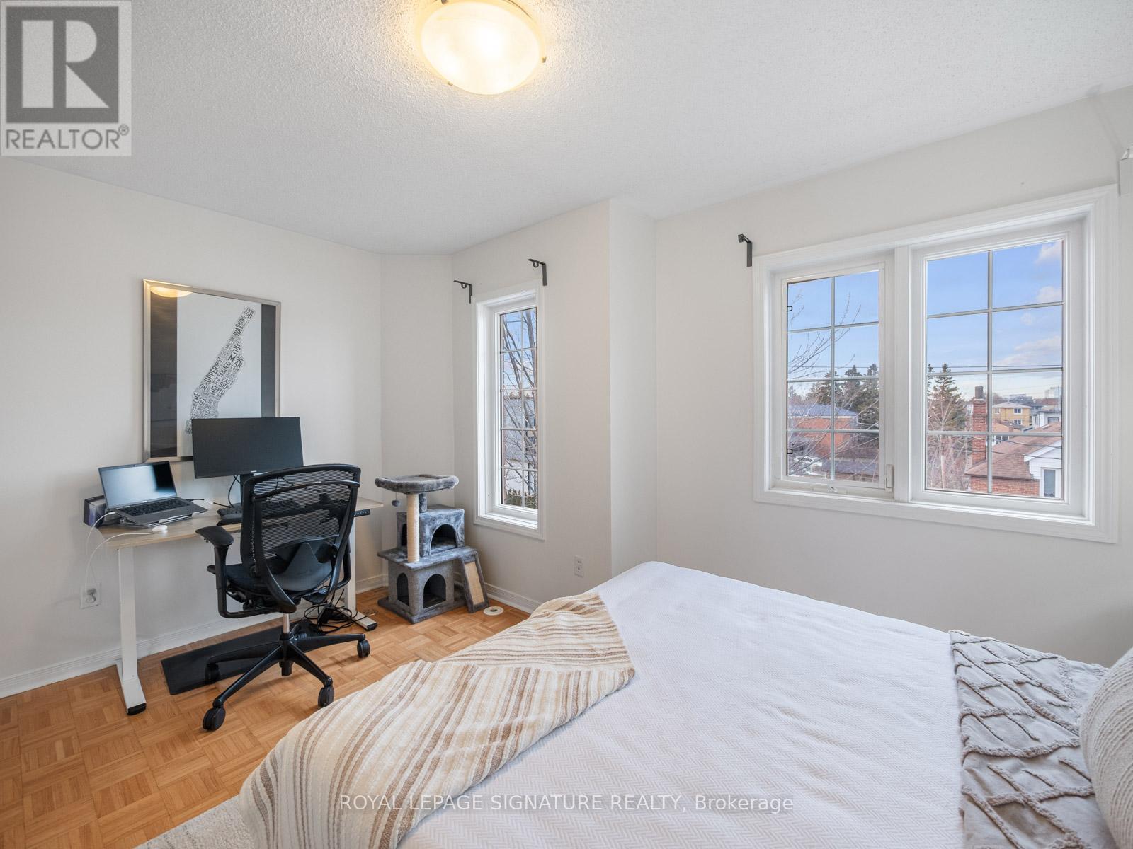 Spacious and functional freehold townhome offering 1,700 sq.ft above grade, with bright interiors and a practical multi level layout. The main floor features a large open concept living and dining area filled with natural light, along with a spacious kitchen and breakfast nook that offers plenty of room for casual meals and everyday use. The second floor includes two large bedrooms with a spacious four piece bathroom in between to service the floor. On the third floor you'll find the primary suite with large his and hers closets and an updated four piece ensuite. Across the hall is the fourth bedroom, offering great privacy and separation between the rooms. The finished lower level adds almost 500 sq.ft of additional living space and includes a powder room and a laundry room, making it ideal for a rec room, workspace, or additional lounge area. Dual access to the home with the main entrance off Roselawn Avenue and a second entrance from the backyard leading to the rare detached one car garage. The hardscaped backyard is perfect for summer hangouts and BBQs. Located in the Briar Hill-Belgravia neighbourhood, within the West Prep school district, and walking distance to parks, schools, local shops, and transit, with convenient access to major routes across the city. (id:4555)