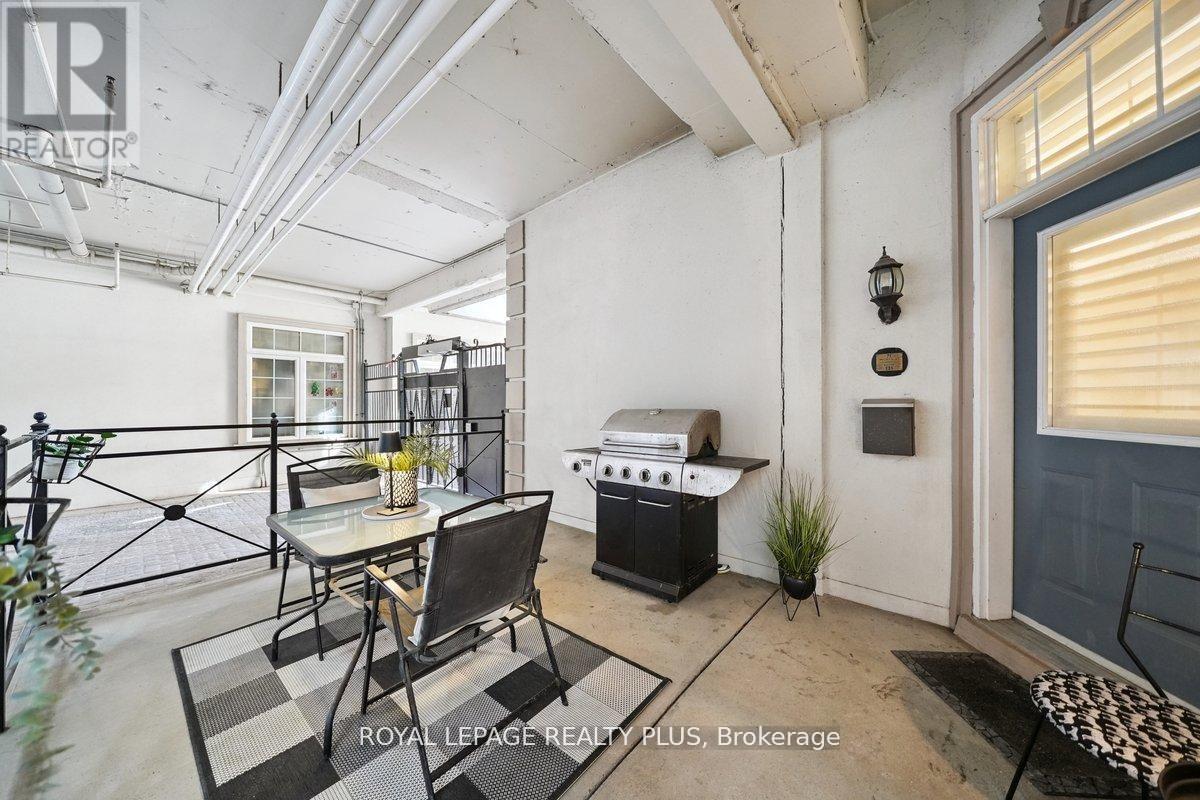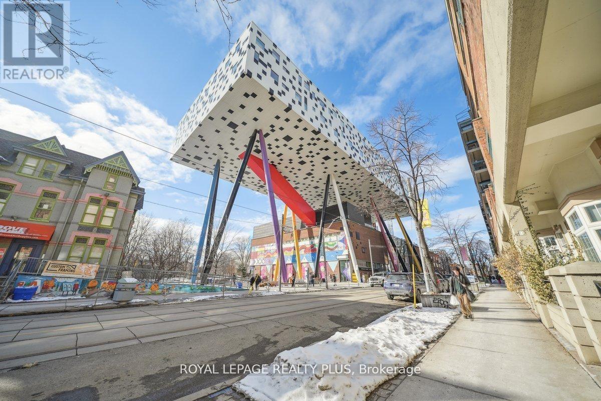 ALL utilities are INCLUDED in the maintenance fees! Welcome to your new home located in Toronto's most vibrant neighbourhood, Queen West. Heat, hydro, water AND fully loaded Bell Fibe TV & Internet package (Fibre 3.0 speed, Better TV package w/ sports channels, Crave, Starz & Cloud PVR). Just set it & forget it, as everything is included keeping your costs consistent & predictable. This beautiful & unique 1 bed, 1 bath, 504sqft condo with a large 150sqft private terrace & 10ft ceilings will not disappoint. Offering an unbeatable combination of location, functionality & VALUE, this freshly painted (Feb 2026) suite is ideal for young professionals, first-time buyers or investors looking for a turnkey opportunity in the CORE of the city. Inside you're greeted immediately by an open-concept layout that features hardwood floors, Cali Shutters, granite countertops & S/S appliances. The living, dining & kitchen area truly give you that "great room" feel, making the space perfect for entertaining all your friends & family. Best of all, open your front door & enjoy your own 150sqft private terrace, providing additional living space & a rare downtown luxury. BBQ's are allowed! The spacious bedroom offers a unique "step-up" room that adds character & separation from the main living area. There is also a "den" near the dining area that is perfect for a home office. Plus, two closets, ensuite laundry & a classic 4-piece bathroom, to top things off. Loads of amenities, seasonal outdoor pool, gym, rec room, gated access w/ security, pet friendly & landscaped courtyards. Convenience is literally outside your front door (doctor's office, dentist & hairdresser) within the complex. Finally, location truly can't be beat! Situated in the HEART of the city & steps from some of Toronto's most iconic landmarks, AGO & OCAD University, across from Grange Park (has dog park), minutes from the PATH & TTC, trendy restaurants & cafes, boutique shops & best nightlife all at your fingertips (id:4555)