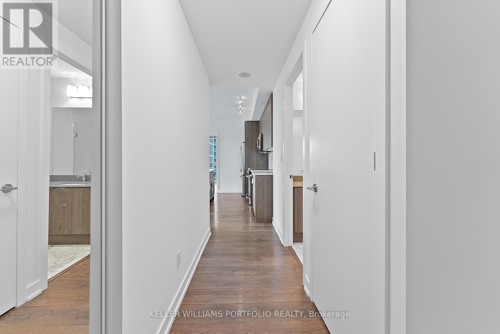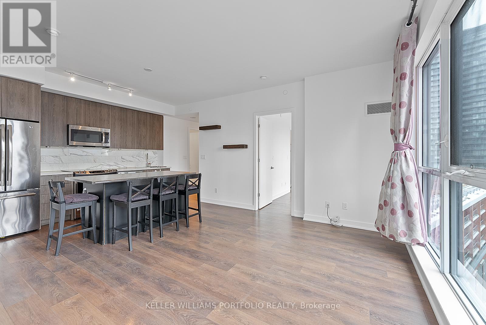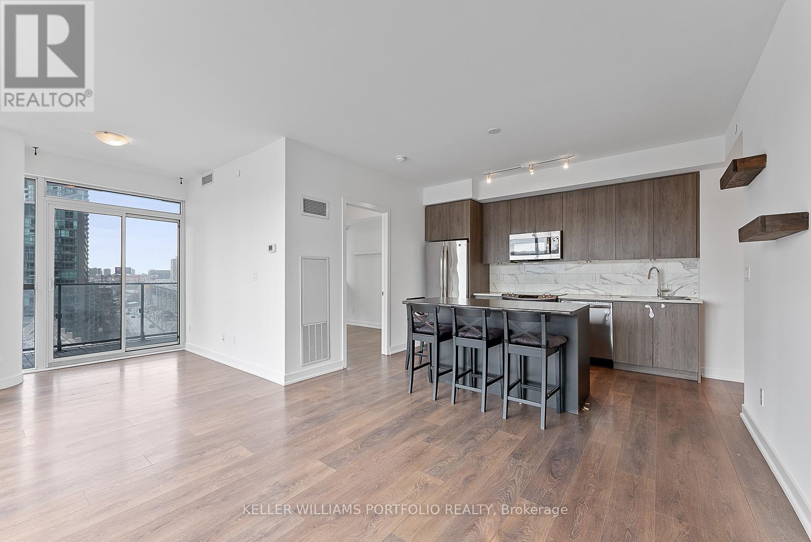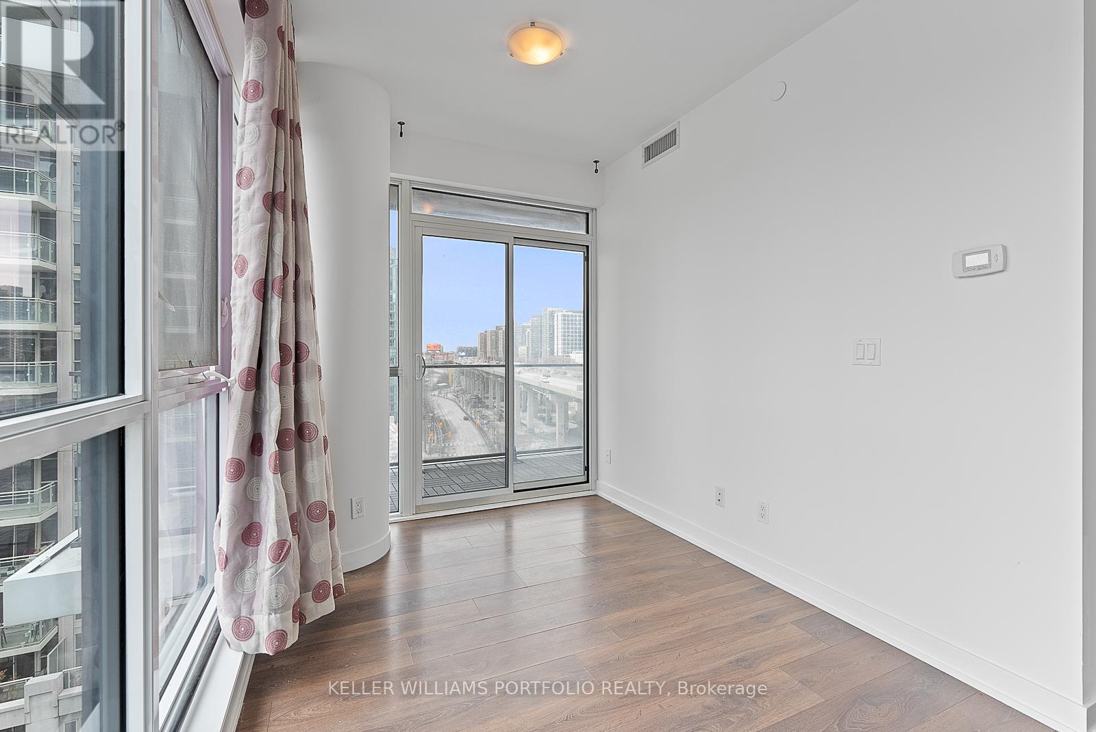 Luxurious Large Corner Unit 2 Bedrooms + 2 Bathrooms with floor to ceiling windows and ceiling lights in both bedrooms, south facing and west facing. Large Open Concept Den combined with Dining/living. Ensuite Laundry, Primary bedroom w/Ensuite Bath, Walk-In Closet. Large Balcony. Prime location, Steps To TTC, Street Car. Close To Banks And Shopping, Lake And Waterfront, Library, CN Tower, A Short Walk To The Rogers Centre, Air Canada Centre. Walking distance to a school and daycares, parks and canoe landing community centre. One Parking and One Locker Included (id:4555)