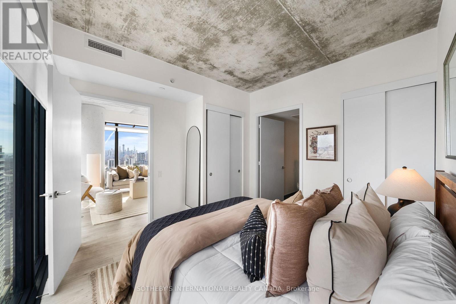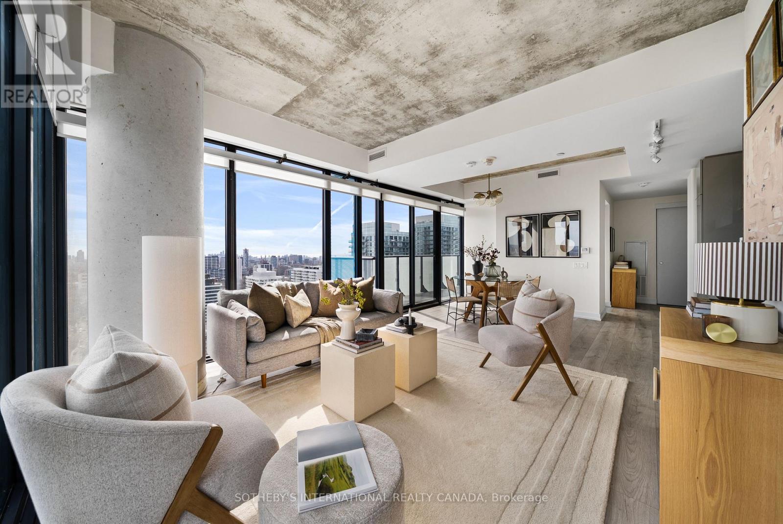 Set above the vibrant Yonge & Eglinton neighbourhood, this bright & beautifully appointed 2-bedroom, 2-bathroom corner suite is bathed in natural light & framed by sweeping city views. Designed for modern living, the residence offers a refined & contemporary atmosphere throughout. The well-planned layout provides approximately 794 sf of interior living space, complemented by a spacious 100 sf balcony with expansive unobstructed city vistas. 9-foot ceilings & floor-to-ceiling windows fill the suite with natural light, enhancing the airy, open-concept living, dining, & kitchen areas. The sleek kitchen blends style & functionality with quartz countertops, a luxe backsplash & high-end integrated appliances. The primary bedroom is a sophisticated space, thoughtfully positioned on one side of the suite to ensure privacy. It features ample closet space & a 4-piece ensuite with polished finishes, creating a calm, hotel-like atmosphere. On the opposite side of the suite, the 2nd bedroom offers versatile elegance with its own closet & a layout that adapts seamlessly for guests or a home office. Residents enjoy access to an impressive selection of amenities, including a 24-hour concierge, an infinity outdoor pool, a fully equipped fitness centre, a BBQ terrace, a party room & games room. The expansive 8th-floor outdoor terrace provides a welcoming setting to relax, socialize, or take in the surrounding city views. Located in one of Toronto's most sought-after urban communities, the building offers exceptional convenience & connectivity. Just a short walk to Eglinton Subway Station & steps from the Eglinton LRT, commuting across the city is effortless. An array of acclaimed restaurants, cafés, grocery stores, parks & everyday essentials are all moments from your door. An exceptional opportunity for professionals, couples, or investors seeking a turnkey residence in a prime midtown location- simply move in and enjoy. (id:4555)