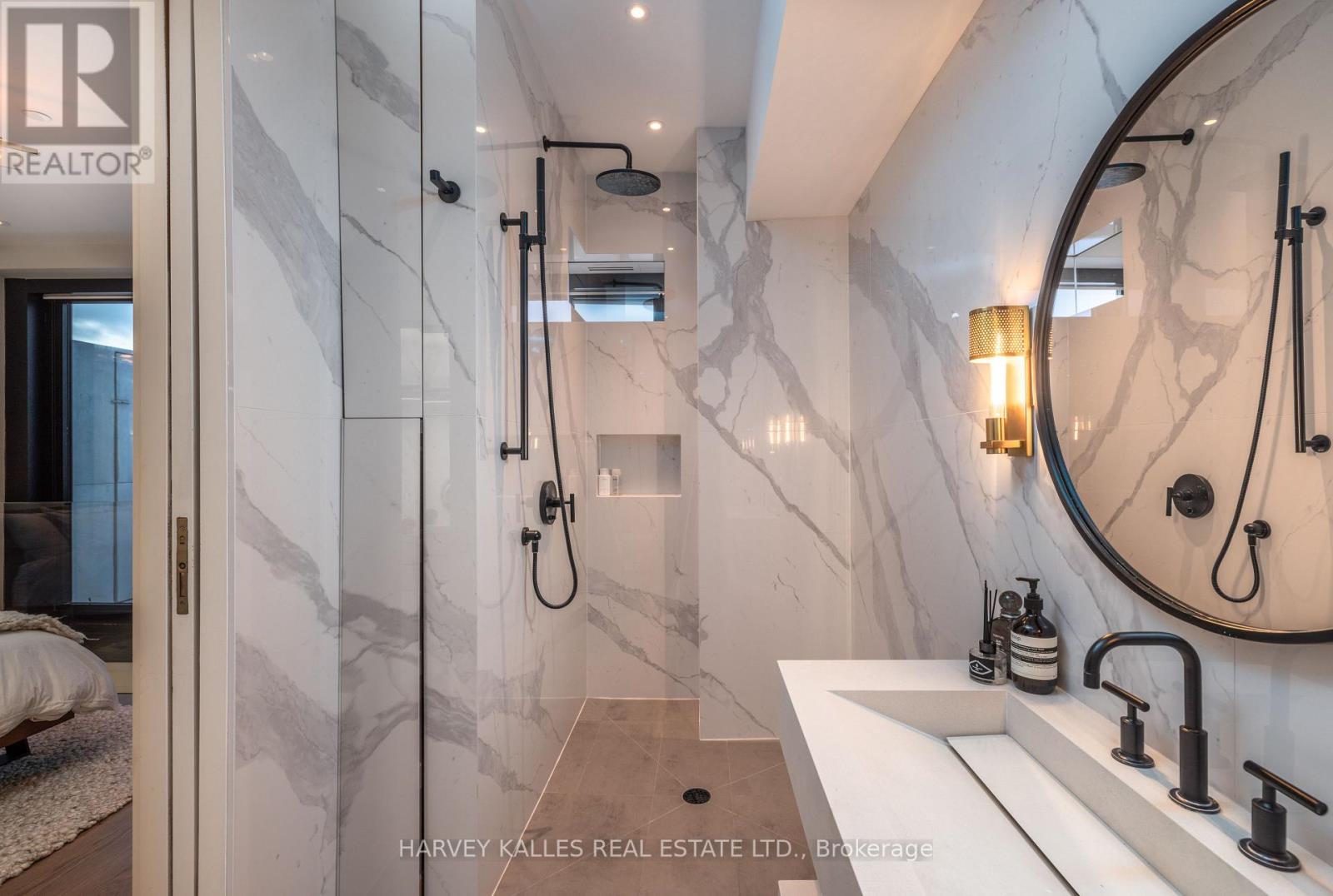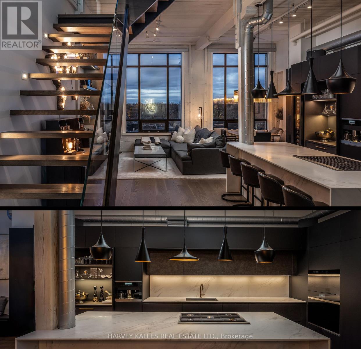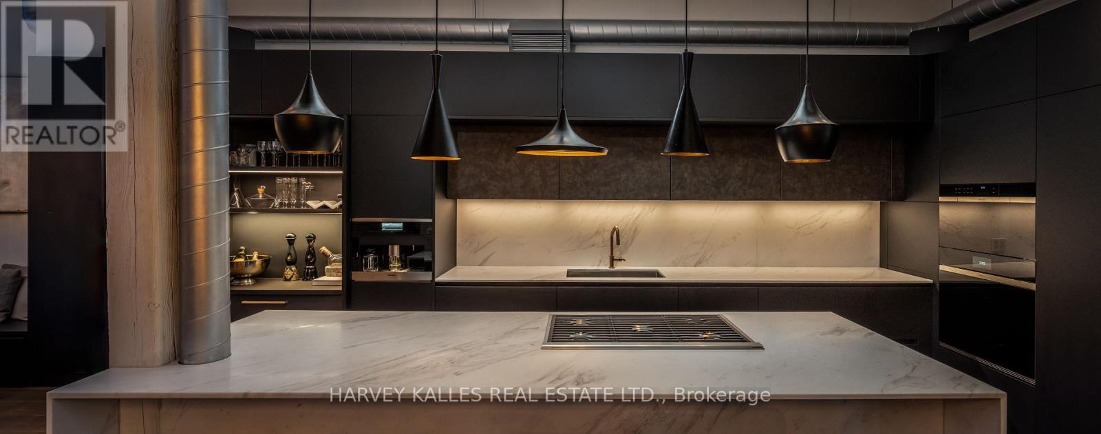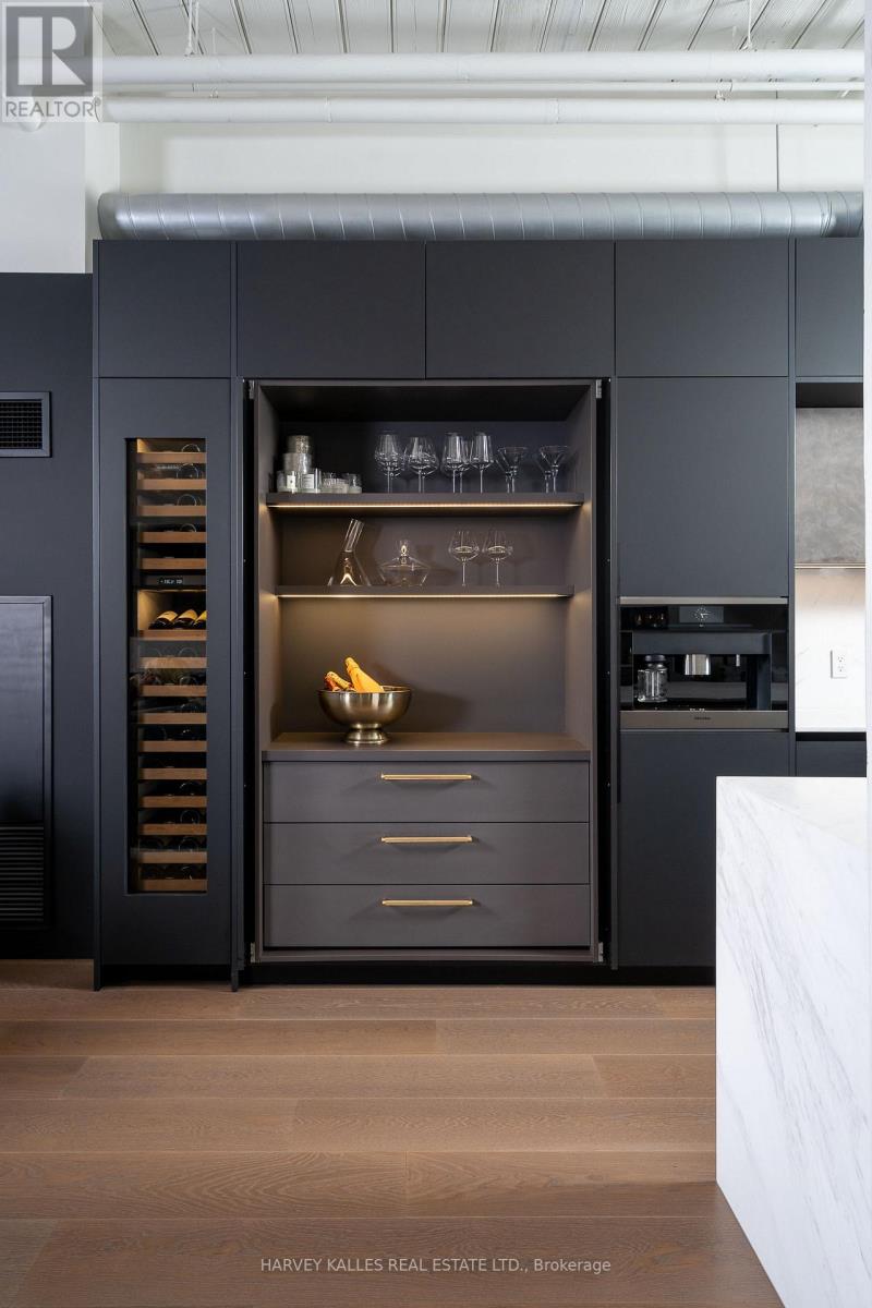 A one-of-one masterpiece in Toronto's legendary Candy Factory Lofts, where a top-to-bottom custom renovation meets a spectacular private terrace and unmatched attention to detail. This rare two-storey penthouse is a true showpiece, complete with two parking stalls and a design that perfectly balances industrial soul with refined modern living. Every inch of this home has been meticulously reimagined. The custom HVAC integration preserves the open window line, while soundproofed walls and a Lutron-controlled lighting system create an effortless, ambient flow. Select-grade wide-plank white oak floors, low-iron Starfire glass railings, and a one-piece honed marble island set the tone for the Italian-crafted kitchen and open living space. The kitchen blends form and performance with Wolf double ovens (including steam), a rare in-unit gas grill with downdraft, Sub-Zero refrigeration and wine column, Miele coffee system, and concealed bar and pantry storage. Upstairs, dual bi-fold glass doors (craned in) open to an expansive terrace with a Wolf BBQ station, outdoor fridge, and linear fireplace, creating an entertainer's dream with unobstructed sunset and skyline views over the park. Outfitted with five Sonos zones, three Samsung Smart TVs (including one outdoors), dual Nest thermostats, and a professionally managed Lutron system, every feature is deliberate, connected, and elevated. Both bathrooms feature Toto fixtures and Kohler upgrades, and the home includes weekly cleaning, monthly organization, and on-site car detailing, with annual patio care and storage included. An irreplaceable residence that defines what true loft luxury can be. PH 12 at The Candy Factory is a singular home for those who value design, craftsmanship, and the rarest of outdoor spaces. (id:4555)