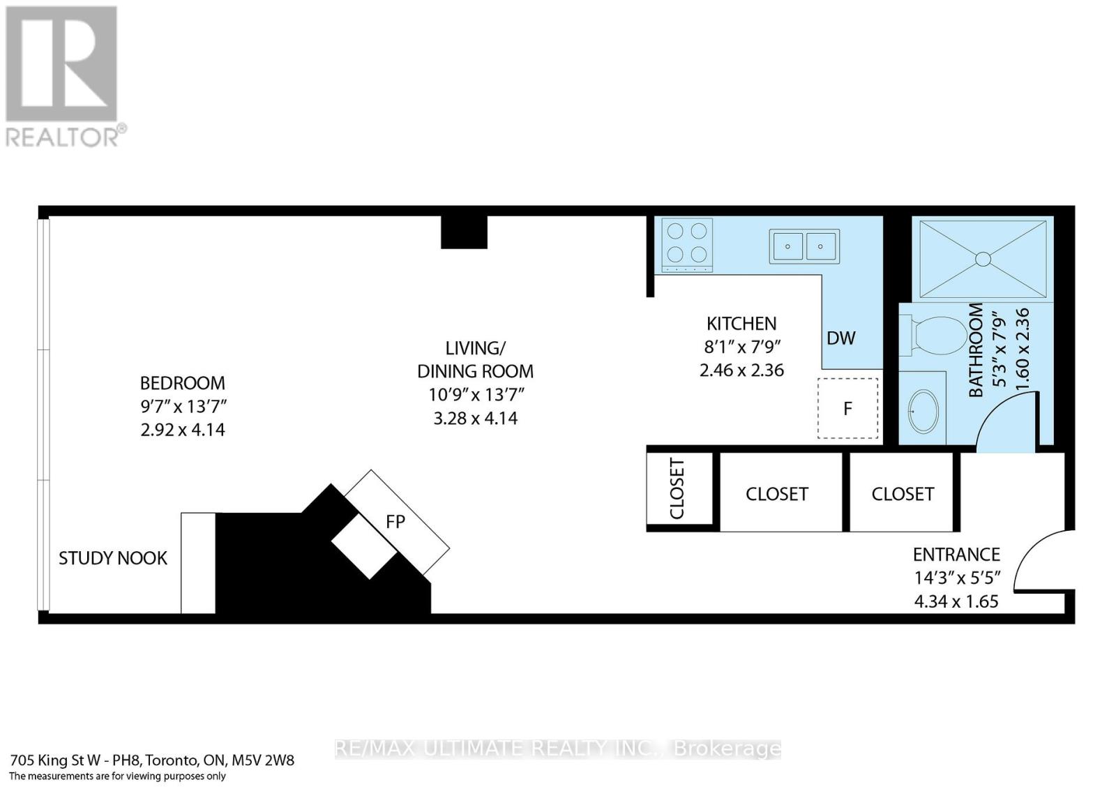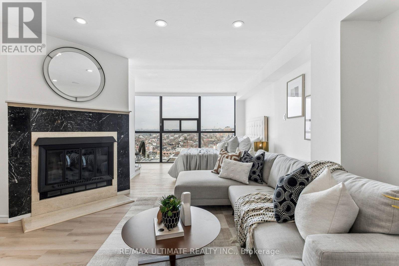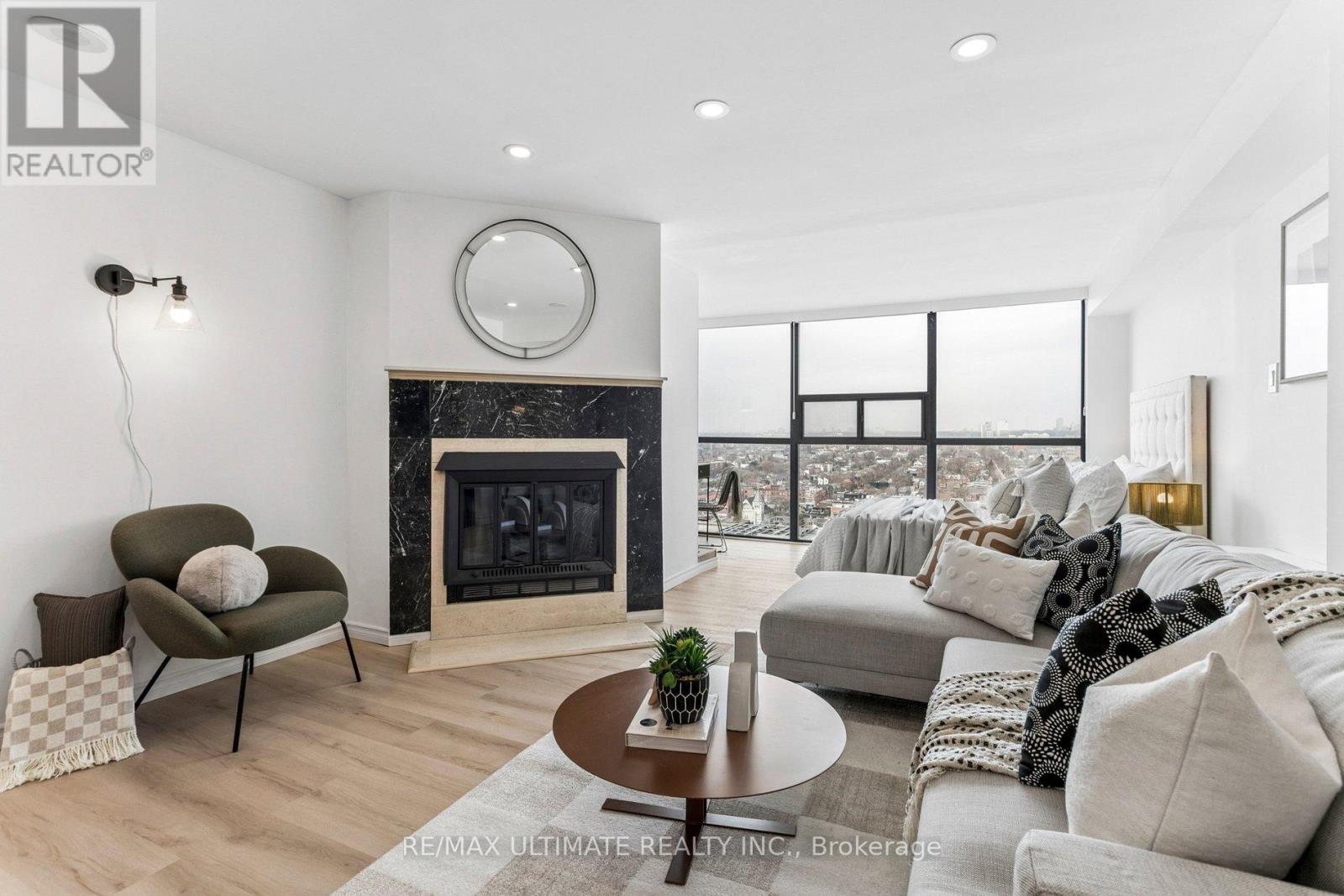 Experience elevated downtown living in this beautifully updated Penthouse-level junior 1-bedroom suite at 705 King St W, offering 531 sq ft of stylish, functional living space with clear, unobstructed city views. This bright and modern residence has been thoughtfully renovated with new vinyl flooring, smooth ceilings, pot lights, and elegant finishes throughout. The sleek kitchen features Corian countertops, chic high-gloss cabinetry, a new backsplash, and brand new stainless steel appliances, creating a contemporary space perfect for cooking and entertaining. The open-concept layout is enhanced by a cozy fireplace, adding warmth and character rarely found in condo living. The spacious bedroom area offers excellent functionality along with ample closet space, while the recently renovated bathroom provides a fresh, modern feel. New electric roller blinds allow for effortless privacy and light control while framing the spectacular city skyline. Located in the heart of King West, one of Toronto's most vibrant neighbourhoods, you are steps to renowned restaurants, cafés, boutique shopping, nightlife, and everyday conveniences. Enjoy easy access to the King streetcar, The Well, Stackt Market, Trinity Bellwoods Park, and Toronto's Financial and Entertainment Districts. Residents enjoy a full suite of building amenities including 24-hour concierge, fitness centre, party room, media room, rooftop terrace with BBQs, indoor and outdoor pools, squash courts and visitor parking. An exceptional opportunity to own a stylish penthouse suite in one of downtown's most sought-after communities. (id:4555)