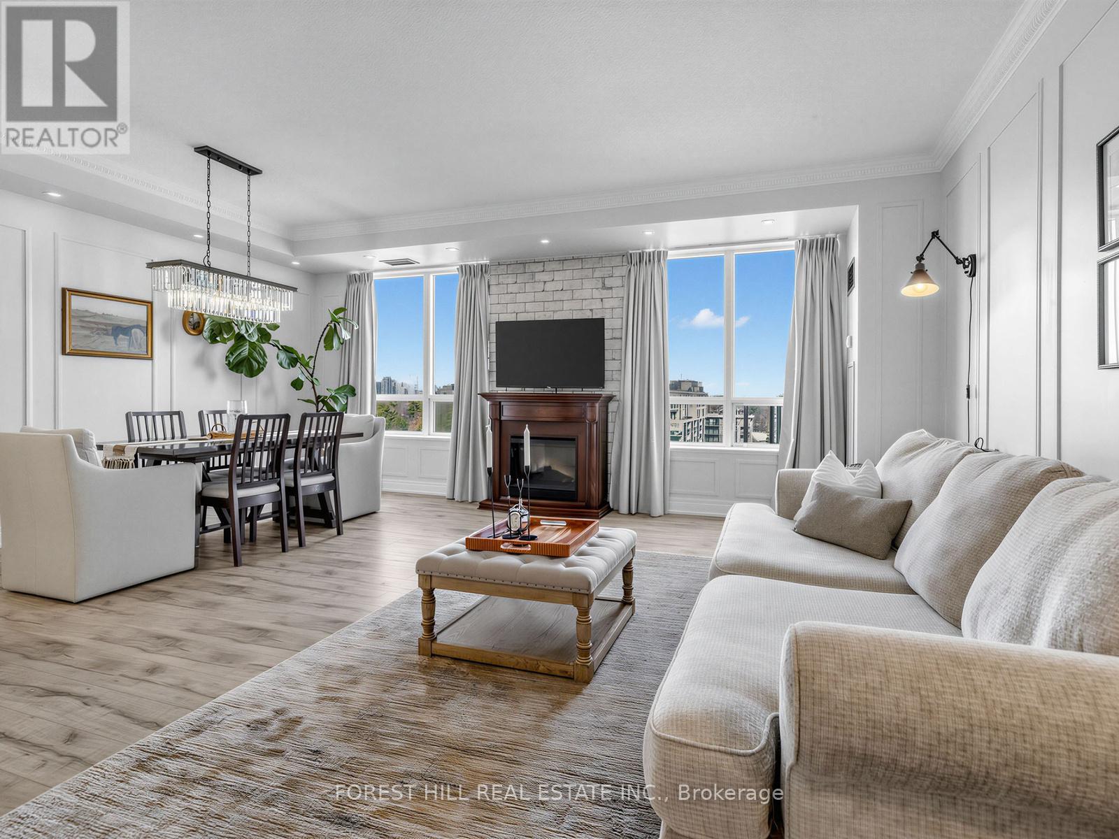 ****TOP-RANKED SCHOOL---HOLYWOOD PS****WALKING DISTANCE TO SUBWAY STATION****This stunning, fully recently renovated(SPENT $$$$)1,366 sq. ft. corner suite(N.E EXPOSURE) at the prestigious Bayview Mansions offers a rare blend of modern luxury and serene urban living. This bright three-bedroom residence features 9-foot ceilings with crown moulding, 6-inch plank flooring, and a designer white lacquer kitchen equipped with premium Bosch appliances, induction cooktop, and quartz counters. Both bathrooms have been meticulously upgraded with heated floors, Toto Washlets, and a free standing master tub. Designed for comfort and style, the open-concept layout includes a Napoleon fireplace, custom closets throughout, and a spacious balcony offering breathtaking, unobstructed cityscape and sunset views. Located in a boutique mid-rise with 24-hour concierge, rooftop deck, and top-tier amenities, you are just steps from the Bayview Village Shopping Centre, YMCA, and the subway, with easy access to Hwy 401/404. All utilities are included in the maintenance fee, making this 10th floor unit a ten out of ten ultimate turnkey retreat in a top-ranked school district. (id:4555)