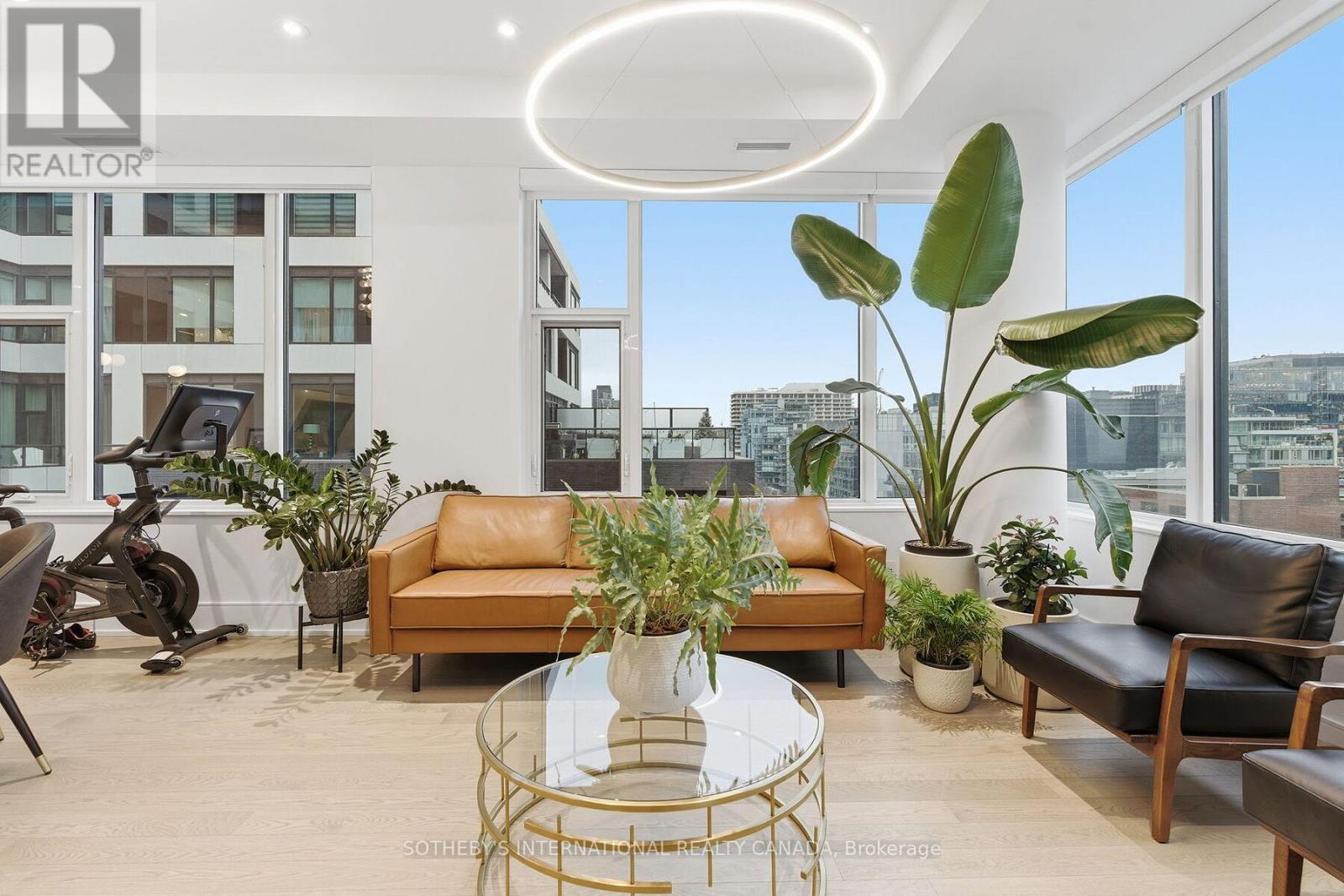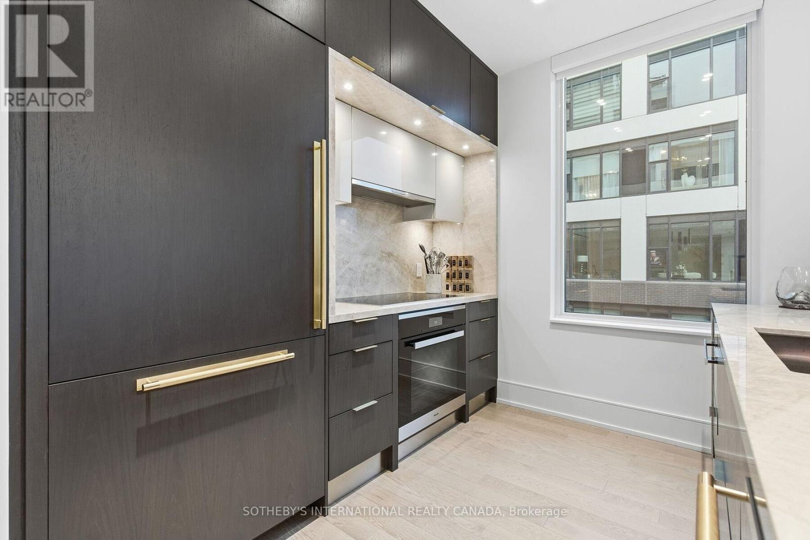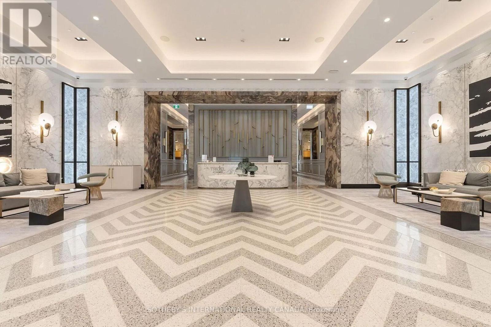 Welcome to The Well Signature Series, a 14-storey, 98-suite boutique residence by Tridel located on the quieter side of Wellington Street West overlooking the Grand Promenade below. This fully furnished luxury Northwest corner residence offers 1,468 sq. ft. of interior space plus a 62 sq. ft. balcony, featuring 10-foot smooth ceilings, expansive windows, and engineered hardwood flooring throughout. The open-concept layout includes 2 bedrooms plus a separate study and 2.5 bathrooms, with a rare split-bedroom design for privacy. The upgraded chef's kitchen is appointed with Miele appliances, including a 36" induction cooktop, wall oven, panelled refrigerator and dishwasher, quartzite Taj Mahal countertops and backsplash, brushed brass hardware, under-cabinet lighting, and a luxe gold-finish faucet. The primary suite features a walk-in closet and second large closet, custom built-ins, and a spa-inspired ensuite with marble flooring and heated floors. The second bedroom includes a walk-in closet and private four-piece ensuite. Custom motorized roller shades, curated lighting, and high-end furnishings complete this turnkey offering. Residents enjoy an elevated amenity collection including 24-hour concierge, state-of-the-art fitness facilities, entertainment and dining lounges, co-working spaces, and refined social areas. Outdoor amenities feature a landscaped terrace with open-air pool, loungers, and fireplace lounge. Bordering Front, Spadina, and Wellington, The Well is an extension of King West's energy and diversity. Living at The Well is a walker's paradise with a Walk Score of 99. Steps to transit including the Spadina streetcar, world-class dining, curated retail, entertainment venues, and waterfront trails, The Well delivers an unmatched urban lifestyle perfect for those seeking a luxury city retreat or executive residence. (id:4555)