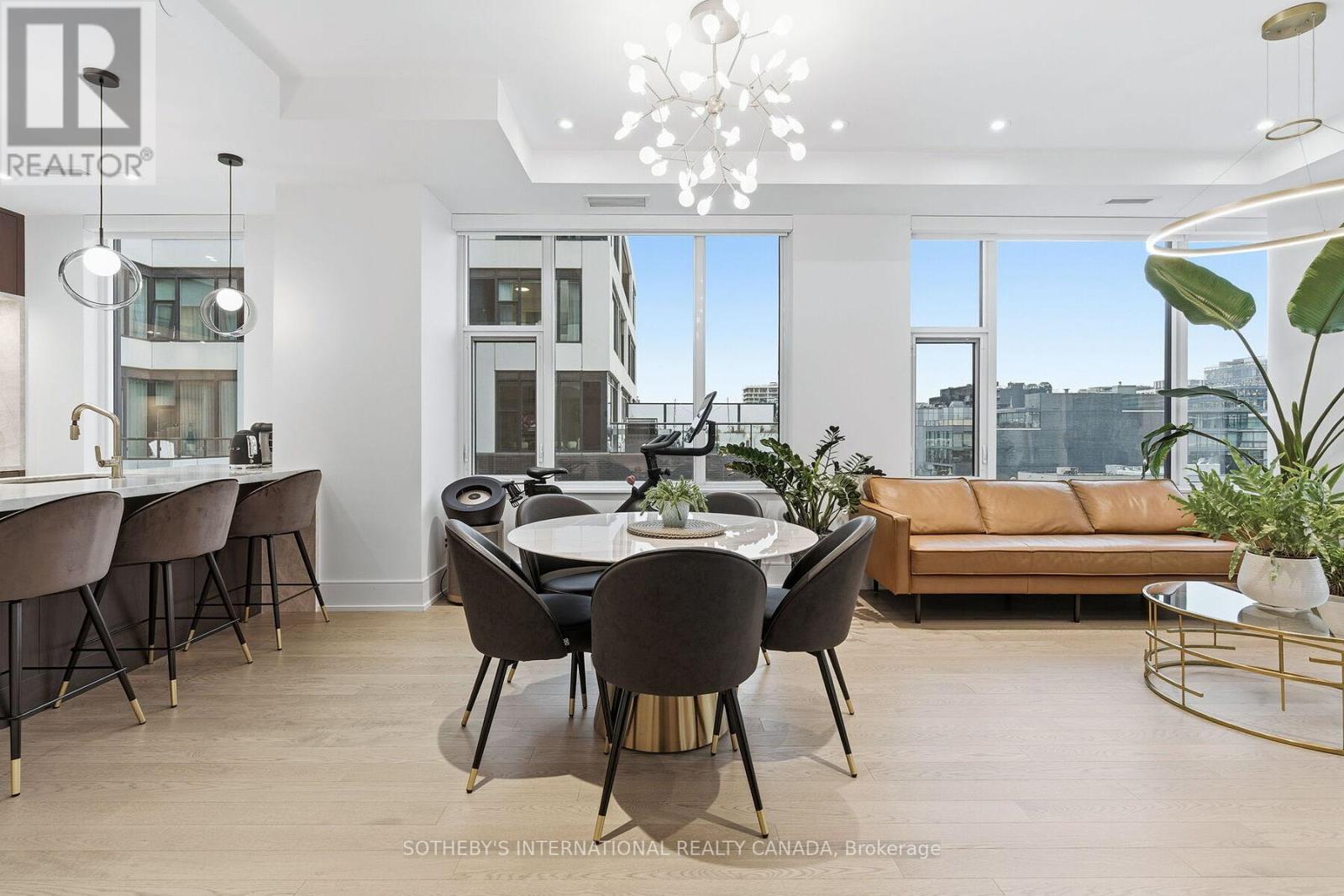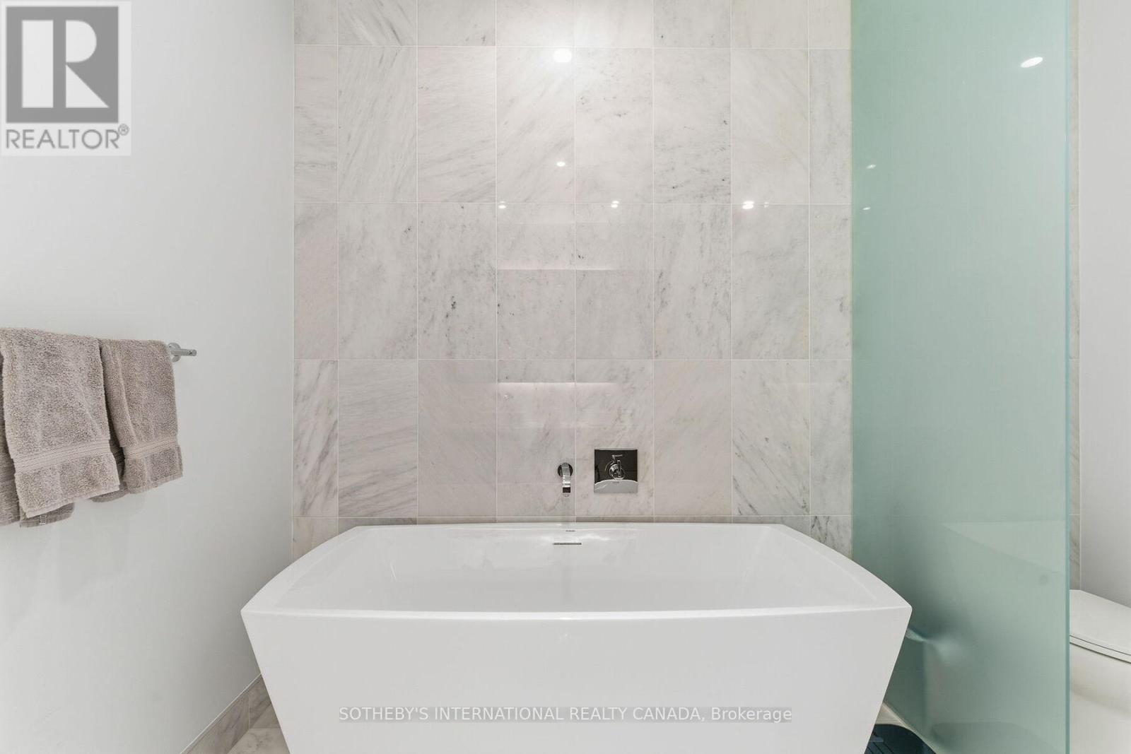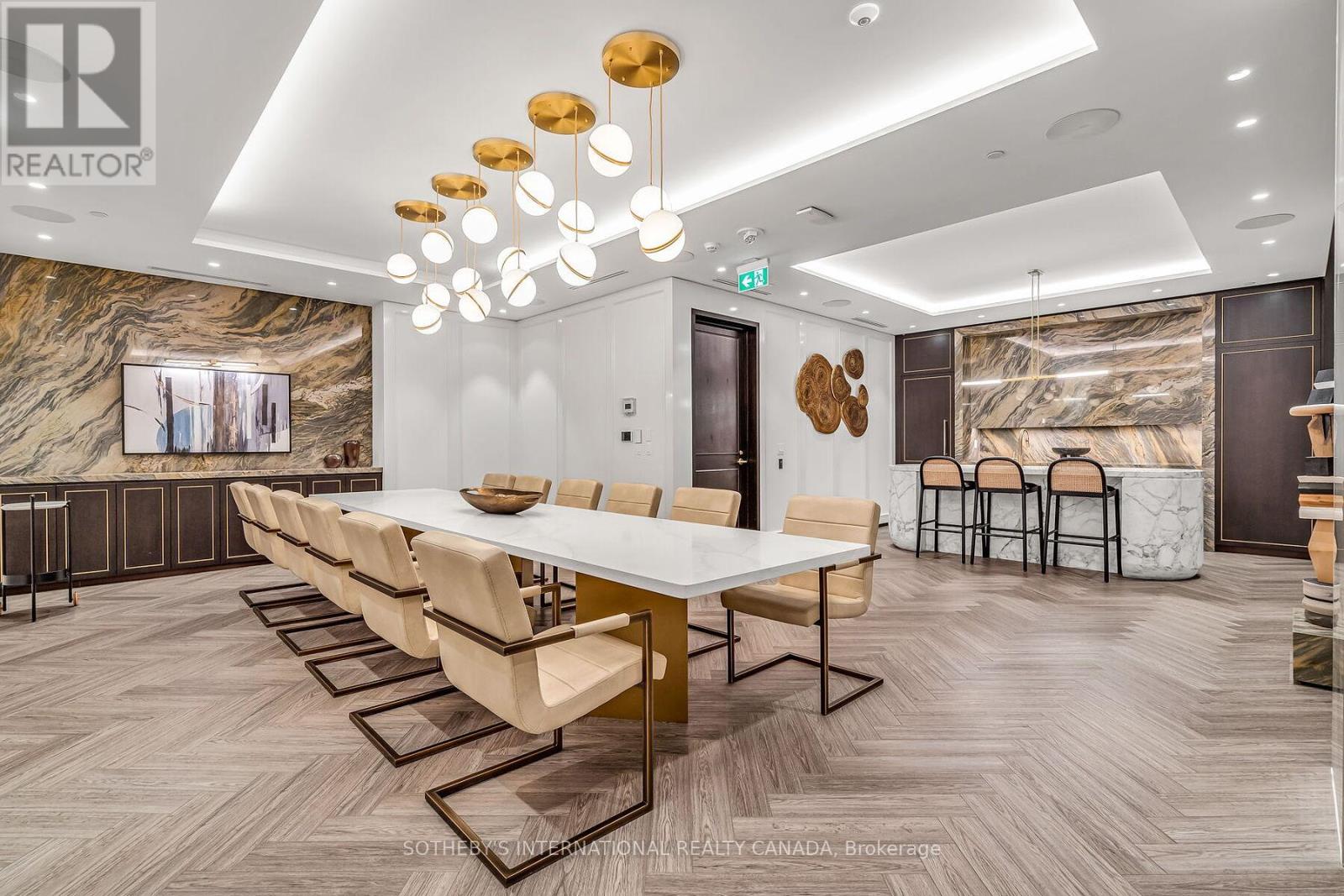 Welcome to The Well Signature Series, a 14-storey, 98-suite boutique residence by Tridel located on the quieter side of Wellington Street West overlooking the Grand Promenade below. This fully furnished luxury Northwest corner residence offers 1,468 sq. ft. of interior space plus a 62 sq. ft. balcony, featuring 10-foot smooth ceilings, expansive windows, and engineered hardwood flooring throughout. The open-concept layout includes 2 bedrooms plus a separate study and 2.5 bathrooms, with a rare split-bedroom design for privacy. The upgraded chef's kitchen is appointed with Miele appliances, including a 36" induction cooktop, wall oven, panelled refrigerator and dishwasher, quartzite Taj Mahal countertops and backsplash, brushed brass hardware, under-cabinet lighting, and a luxe gold-finish faucet. The primary suite features a walk-in closet and second large closet, custom built-ins, and a spa-inspired ensuite with marble flooring and heated floors. The second bedroom includes a walk-in closet and private four-piece ensuite. Custom motorized roller shades, curated lighting, and high-end furnishings complete this turnkey offering. Residents enjoy an elevated amenity collection including 24-hour concierge, state-of-the-art fitness facilities, entertainment and dining lounges, co-working spaces, and refined social areas. Outdoor amenities feature a landscaped terrace with open-air pool, loungers, and fireplace lounge. Bordering Front, Spadina, and Wellington, The Well is an extension of King West's energy and diversity. Living at The Well is a walker's paradise with a Walk Score of 99. Steps to transit including the Spadina streetcar, world-class dining, curated retail, entertainment venues, and waterfront trails, The Well delivers an unmatched urban lifestyle perfect for those seeking a luxury city retreat or executive residence. (id:4555)