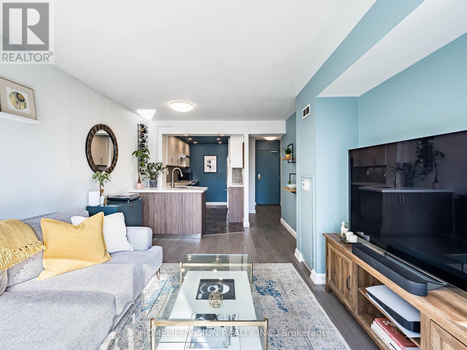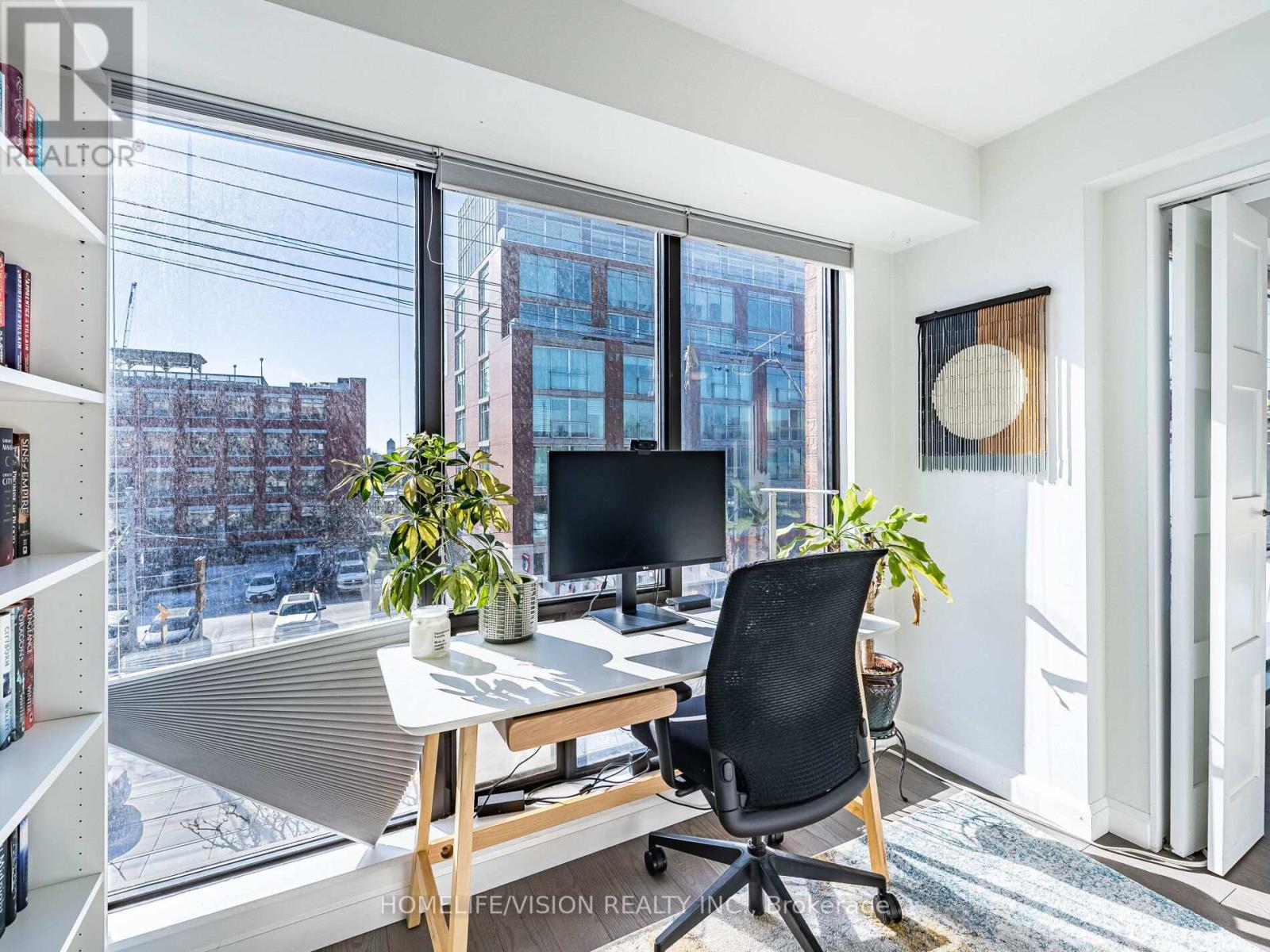 Welcome to this bright 1Br+Den apartment in the heart of the very desirable Little ITALY! South exposure, spoiled with CN Tower and downtown views. Generously sized windows fill this apartment with warmth and plenty of natural light. Very welcoming with charm and modern upgrades. Newer 2-toned kitchen cabinets with upgraded stainless steel appliances, beautiful backsplash and stone countertop. Plenty of counterspace with lots of storage. Spacious bedroom and separate den/office. Small sized building with party room, gym/exercise room, rooftop deck. Conveniently located with transit service at your door. Steps to trendy restaurants, cafes and shops. Very motivated Sellers! Sellers currently rent a parking spot in the building. (id:4555)