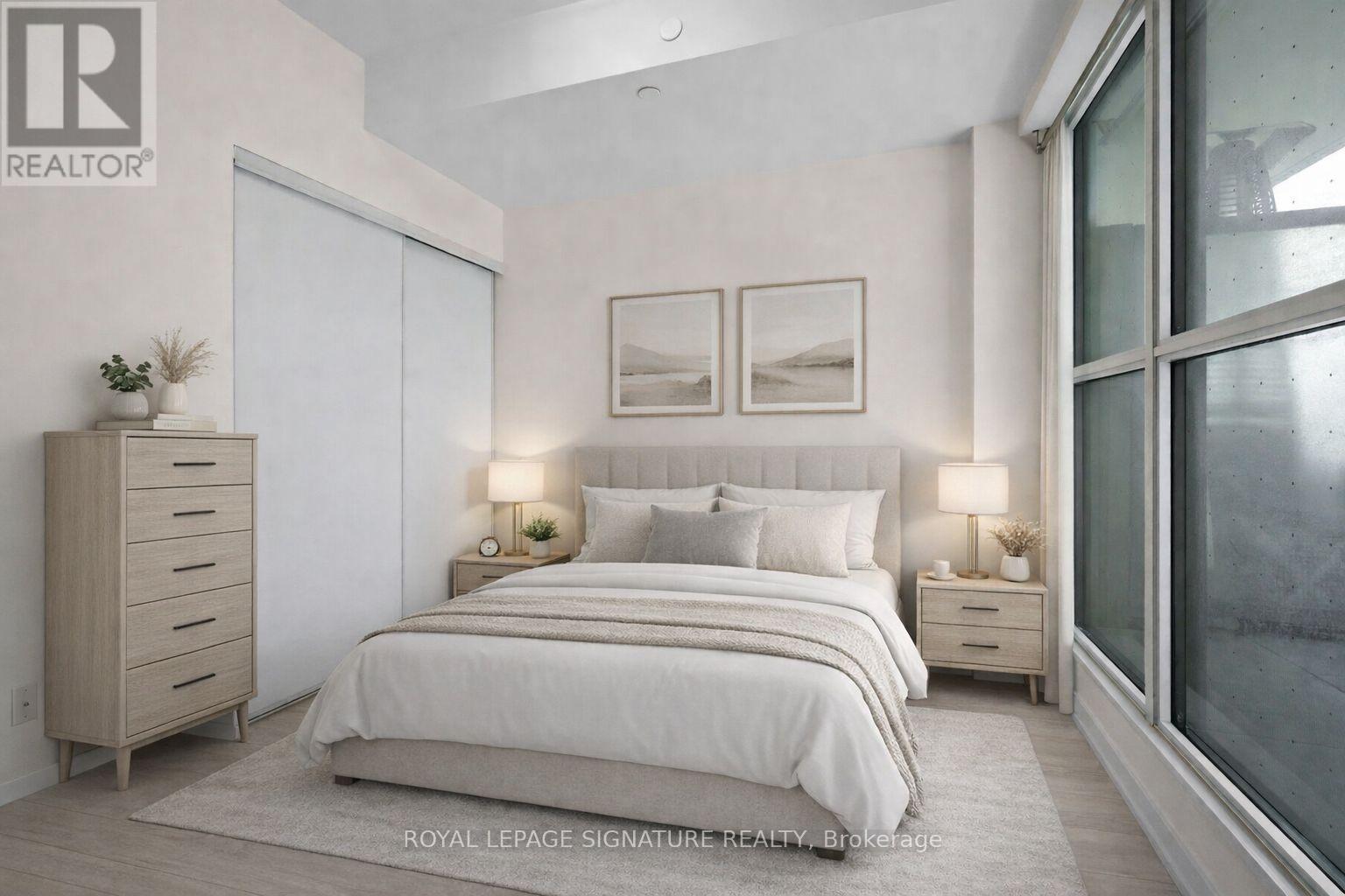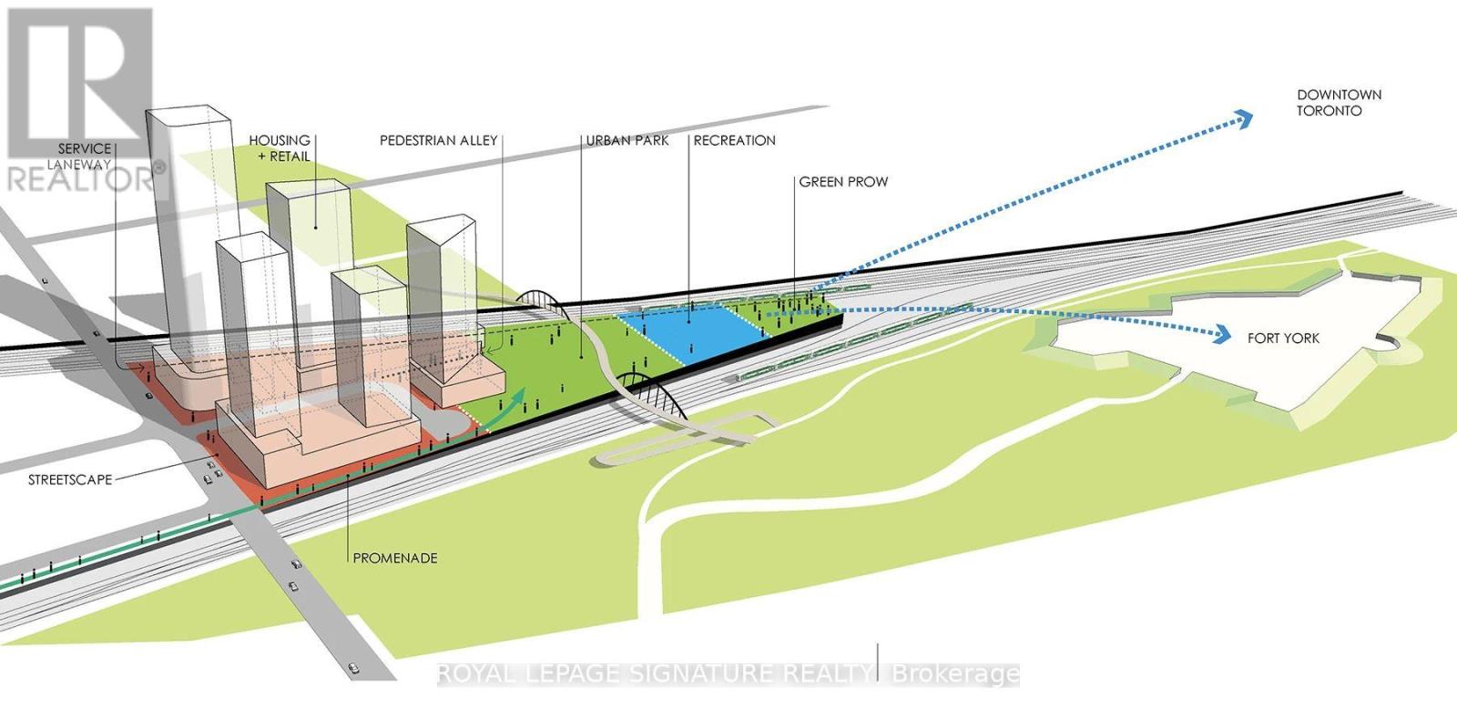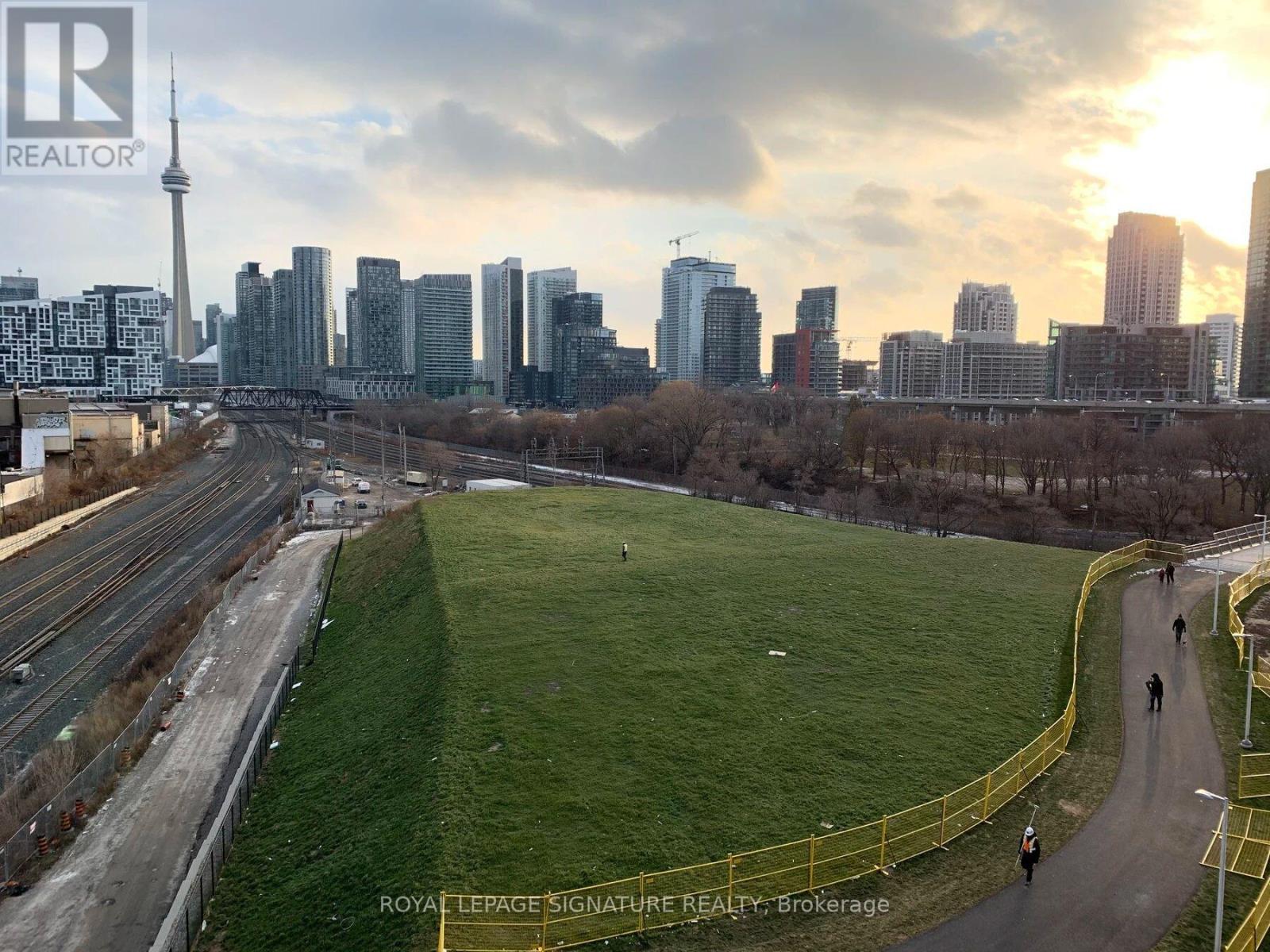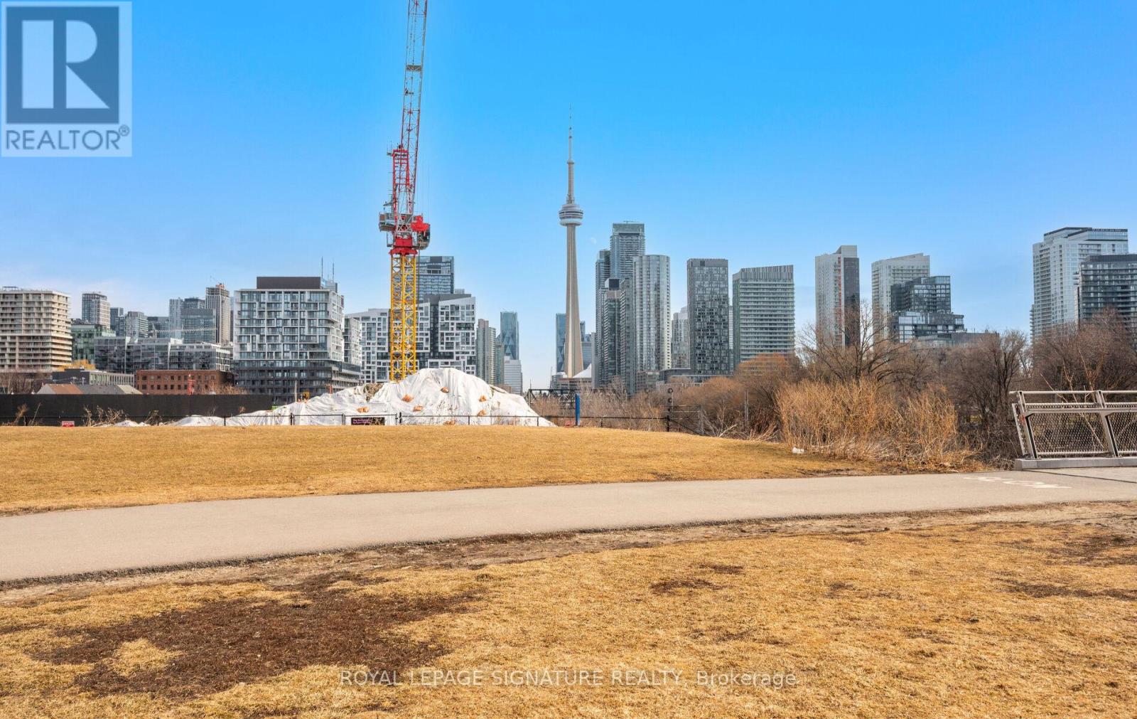 Immaculate and cozy 1-bedroom suite at Garrison Point Condos. Situated on a 3.9-acre city park with extraordinary views of Toronto's skyline. Unwind and relax-or enjoy your morning coffee-on your own private 100 sq ft terrace, also perfect for hosting summer dinners. The bright, thoughtfully designed suite features 9-ft smooth ceilings, laminate flooring throughout, and a modern kitchen with integrated Bloomberg stainless-steel appliances, custom backsplash, and quartz countertops. Exceptional building amenities include 24-hr concierge/security, gym, movie theatre, meeting/party rooms, outdoor pool, indoor hot tub & cold tub, sauna, steam room, guest suites and visitor parking. Secure building with FOB controlled elevator and floor access. Prime location: steps to TTC streetcar stops, EX-GO, QEW, new pedestrian bridge, King West, Lakeshore, waterfront trails, and parks. Walking distance to Starbucks, Metro grocery, Wine Rack, major banks, restaurants, cafes, medical and dental services, physiotherapy clinic, fitness studios, and hotels. Experience the ease of living with everything you need just moments away. **Some images have been virtually staged to illustrate potential design ideas.** (id:4555)