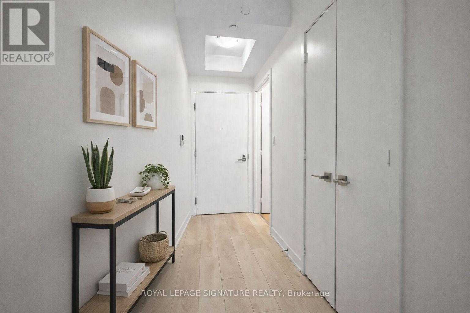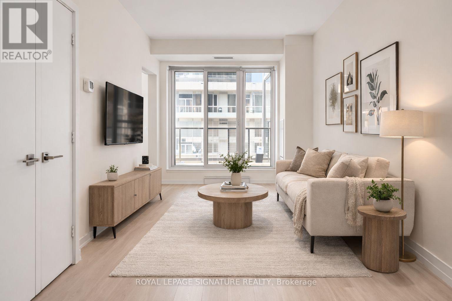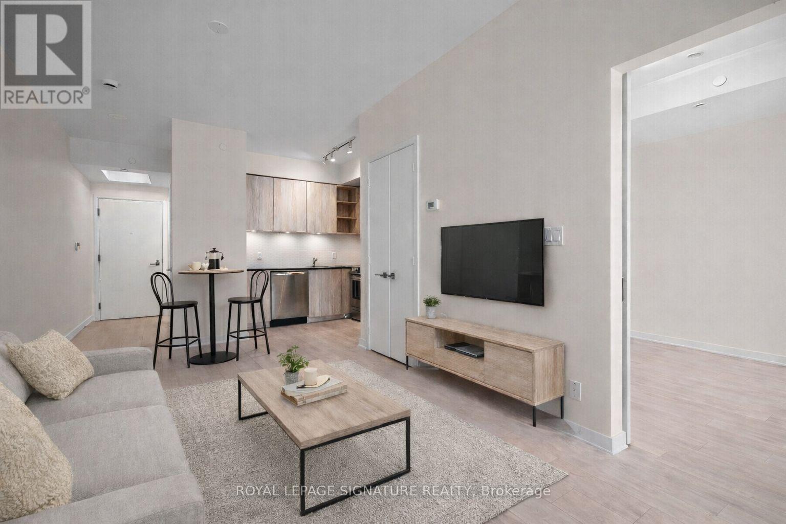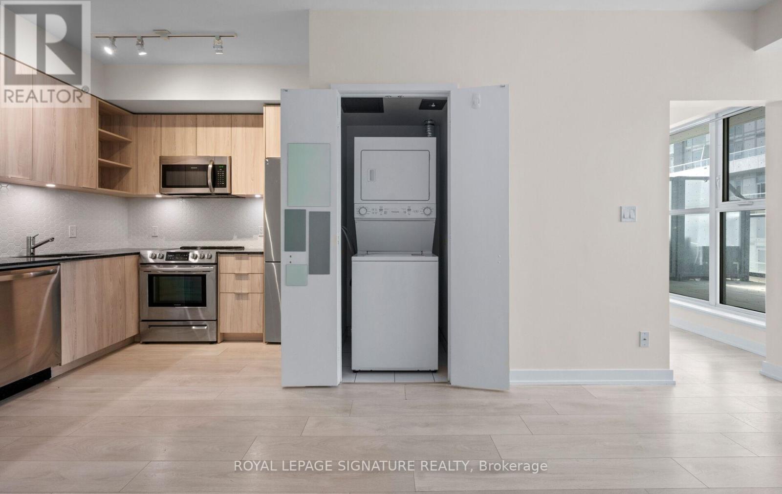 Immaculate and cozy 1-bedroom suite at Garrison Point Condos. Situated on a 3.9-acre city park with extraordinary views of Toronto's skyline. Unwind and relax-or enjoy your morning coffee-on your own private 100 sq ft terrace, also perfect for hosting summer dinners. The bright, thoughtfully designed suite features 9-ft smooth ceilings, laminate flooring throughout, and a modern kitchen with integrated Bloomberg stainless-steel appliances, custom backsplash, and quartz countertops. Exceptional building amenities include 24-hr concierge/security, gym, movie theatre, meeting/party rooms, outdoor pool, indoor hot tub & cold tub, sauna, steam room, guest suites and visitor parking. Secure building with FOB controlled elevator and floor access. Prime location: steps to TTC streetcar stops, EX-GO, QEW, new pedestrian bridge, King West, Lakeshore, waterfront trails, and parks. Walking distance to Starbucks, Metro grocery, Wine Rack, major banks, restaurants, cafes, medical and dental services, physiotherapy clinic, fitness studios, and hotels. Experience the ease of living with everything you need just moments away. **Some images have been virtually staged to illustrate potential design ideas.** (id:4555)
