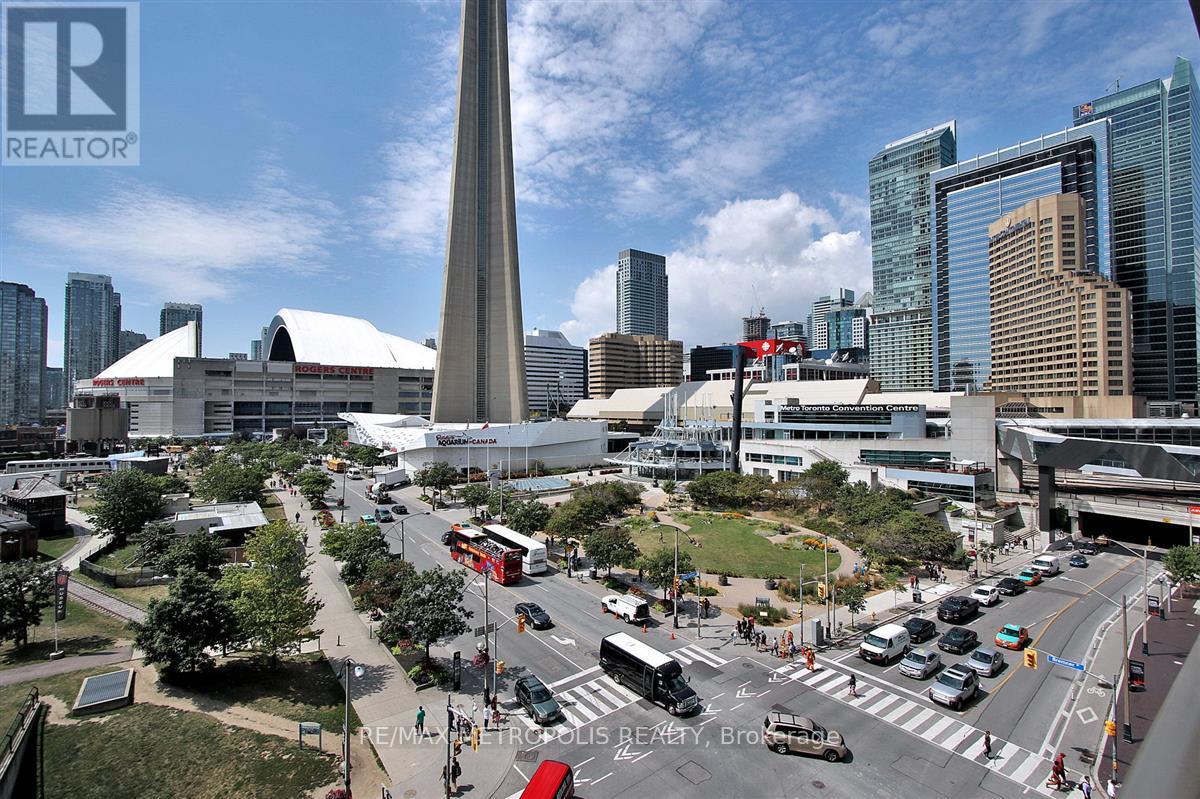 Bright and spacious 1-bedroom + den condo in the heart of downtown Toronto featuring one of the best 1-bedroom + den floor plans in the building, an open-concept layout, and expansive windows that flood the space with natural light while offering iconic CN Tower views from the private balcony. The functional den provides a flexible space ideal for a home office or guest area. Located in a highly coveted postal code, this beautiful condo is just steps from Rogers Centre, Scotiabank Arena, Union Station, CN Tower, Ripley's Aquarium, waterfront trails, transit, shops, and dining, with all amenities within walking distance. Enjoy the epitome of downtown luxury and vibrant Toronto waterfront living. (id:4555)