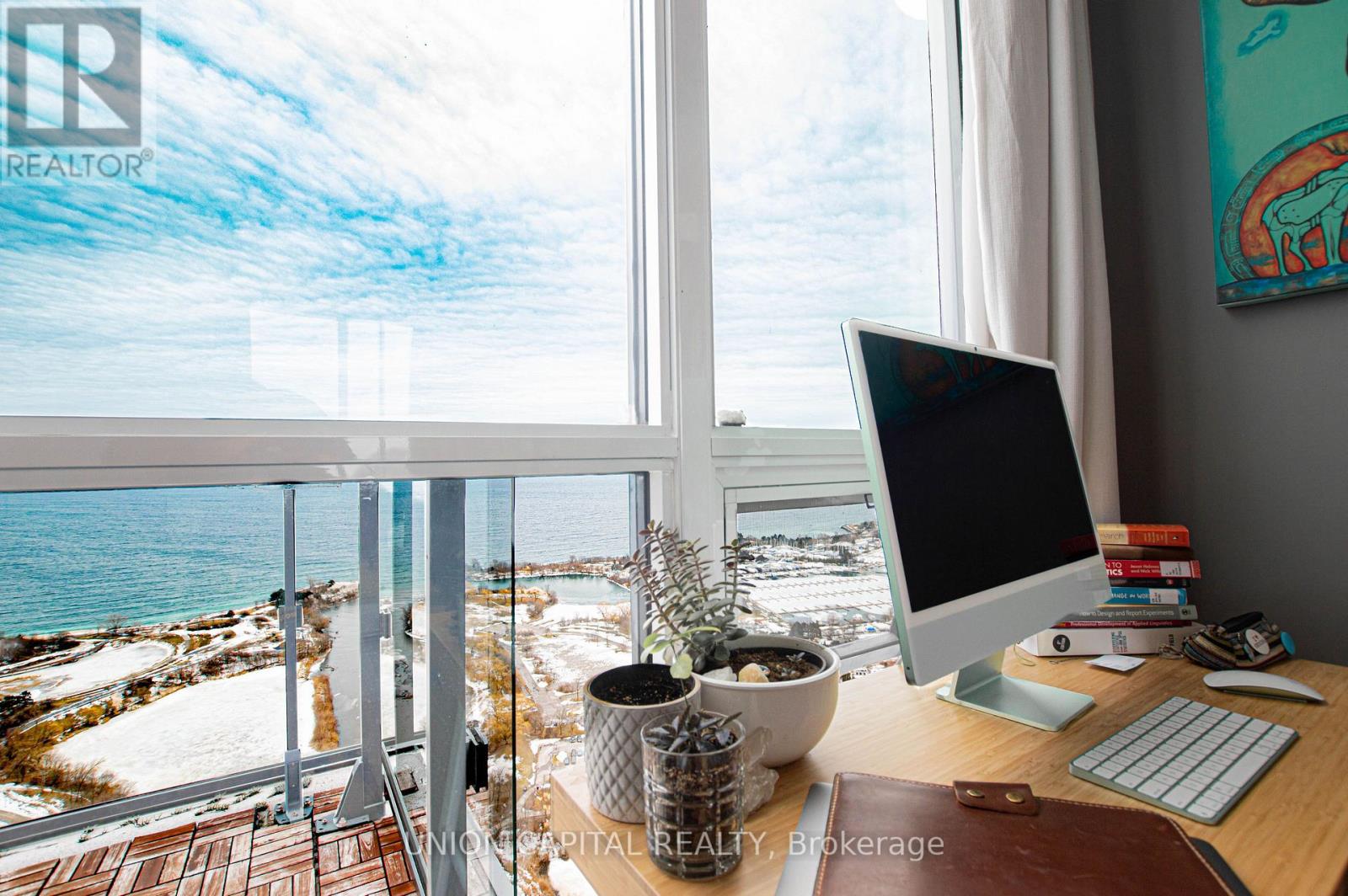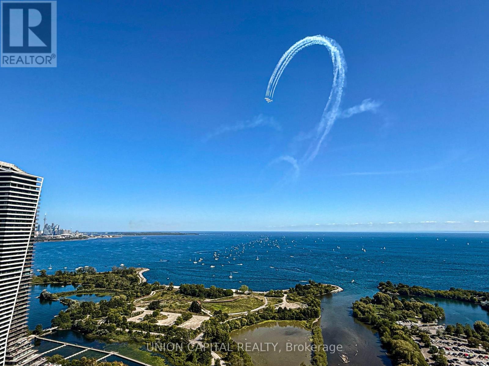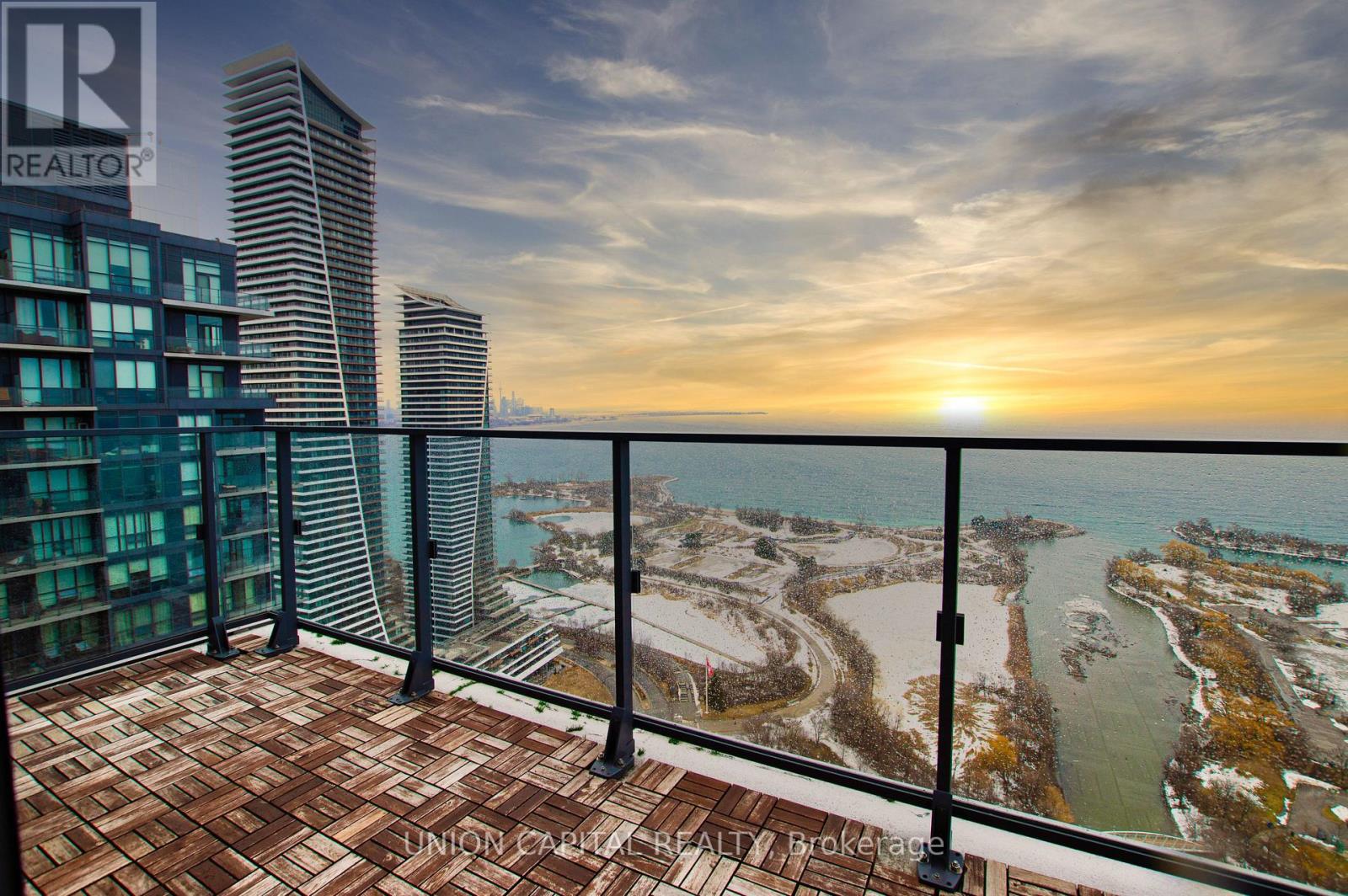 Wake up every day to a wide open horizon instead of a wall of concrete. This rare penthouse at Westlake III offers forever south views over Lake Ontario, Humber Bay Park and the CN Tower skyline, protected from future obstruction at the very edge of the waterfront. Soaring 10 ft ceilings, a smart split 2 bedroom layout, and a full sized den that easily functions as an office or 3rd bedroom create a sense of space you'll never find in the downtown core. Step outside to Toronto's largest continuous waterfront park, beaches, and bike paths that lead all the way downtown. Live steps above Metro grocery, LCBO, cafés, restaurants, banking, and future Go Transit Terminal. Instant highway access when you need to jump core downtown. Sunrise pours across the water and into your living room, turning every morning into something quiet, magical, and completely yours. If you're ready to live downtown without feeling boxed in by it, book your private viewing of this lakefront penthouse today-opportunities like this do not comeback (id:4555)