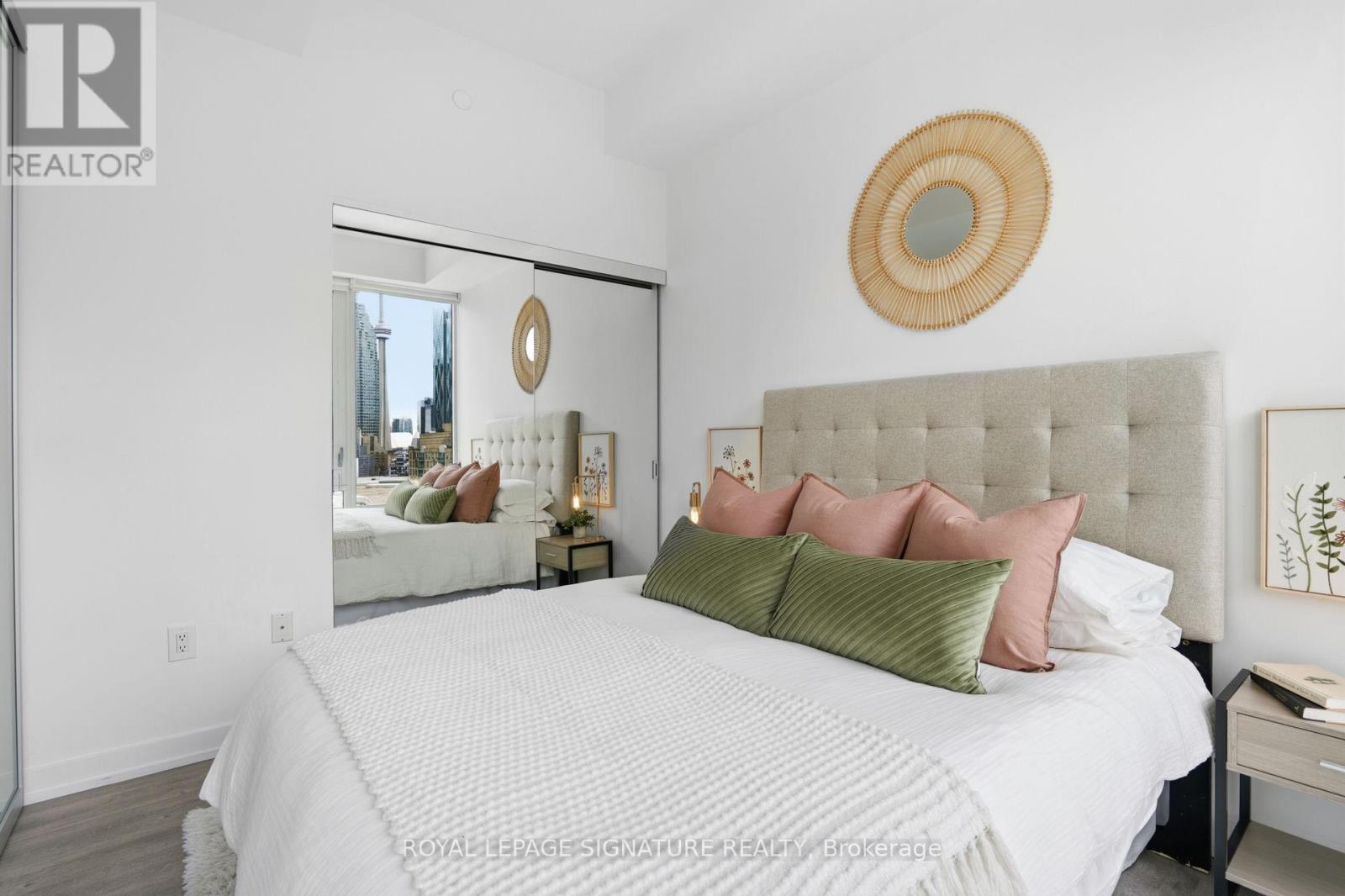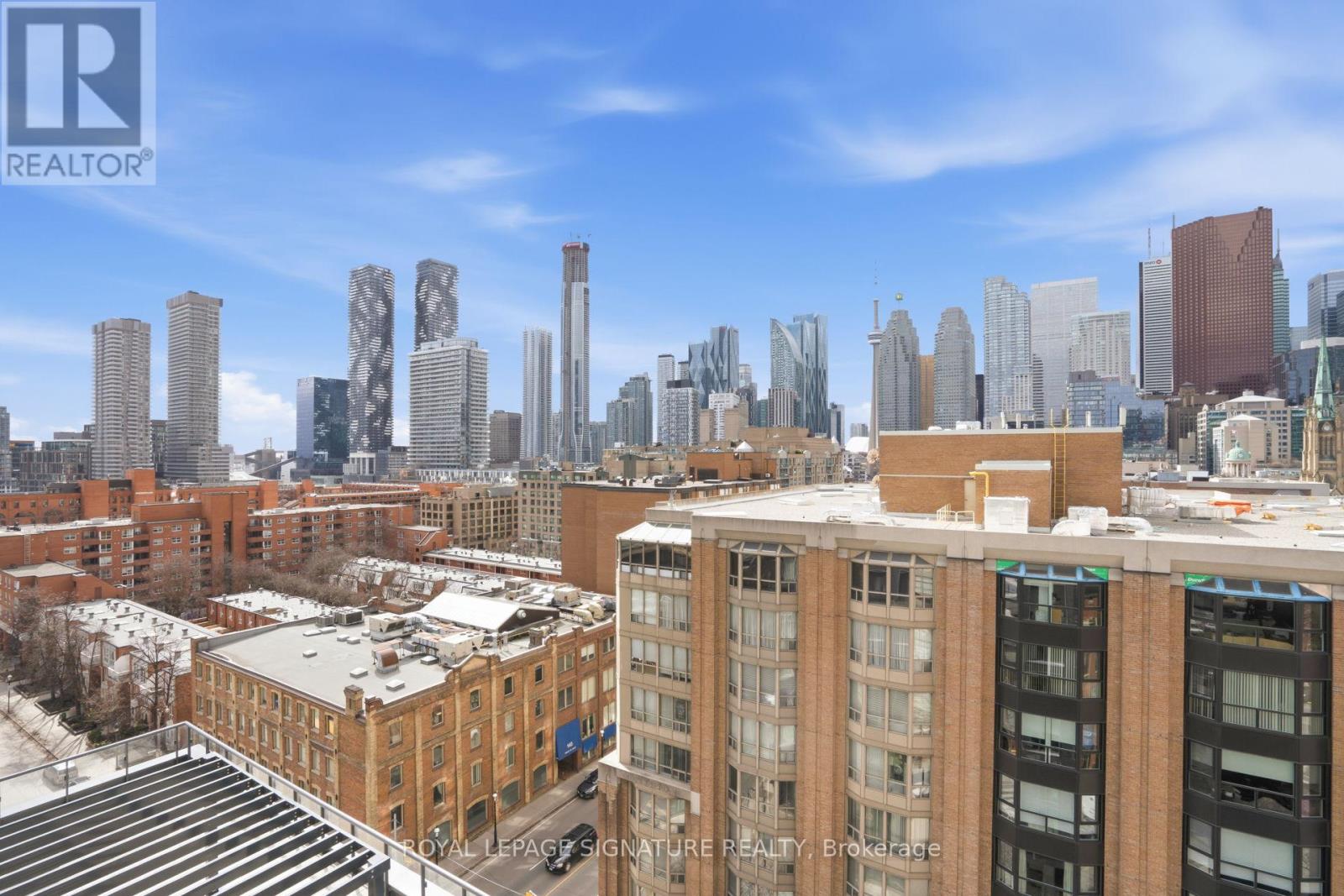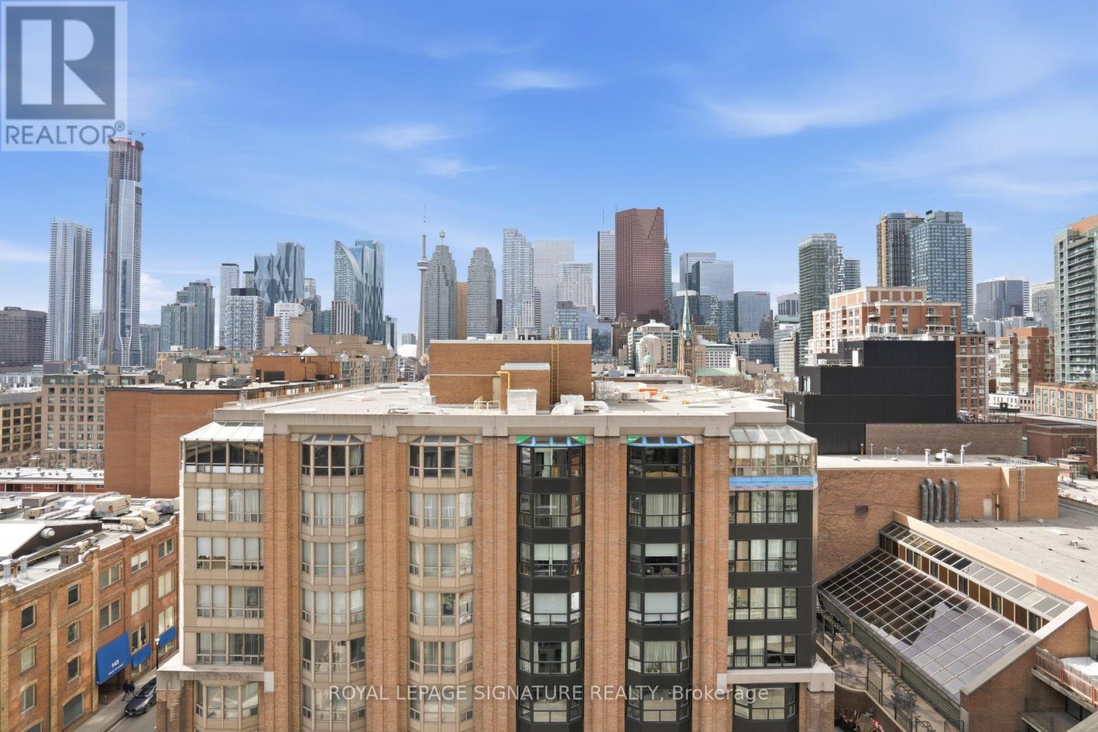 Experience elevated downtown living in this stunning corner suite in the heart of the St. Lawrence Market district. This thoughtfully designed 2-bedroom, 2-bathroom residence features a functional split-bedroom layout ideal for privacy and everyday comfort, complete with one parking space. Enjoy spectacular west-facing city views through expansive floor-to-ceiling windows that flood the space with natural light and frame an incredible, unobstructed view of the CN Tower and downtown skyline. Soaring 10-foot ceilings enhance the sense of space, creating a bright, airy, modern atmosphere. The building offers exceptional amenities, including 24-hour concierge and security service, an outdoor rooftop pool and terrace with seating/BBQ area, a three-level fitness centre, party room with kitchen and social lounge, billiards lounge and games room, library and co-working space, as well as guest suites and visitor parking. Perfectly positioned in one of Toronto's most sought-after neighbourhoods, you are steps to St. Lawrence Market, The Esplanade, Union Station, the Financial District and the waterfront. Commuting is effortless with quick access to the DVP, TTC and major transit hubs, while world-class dining, shopping and entertainment are right outside your door. A rare opportunity to own a beautifully designed suite with unbeatable skyline views in the centre of Toronto's most iconic downtown community. Internet included in monthly maintenance fee. (id:4555)