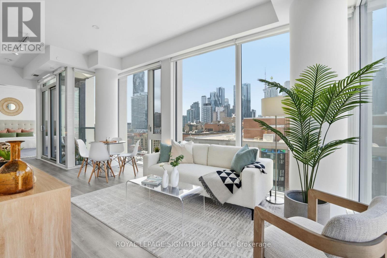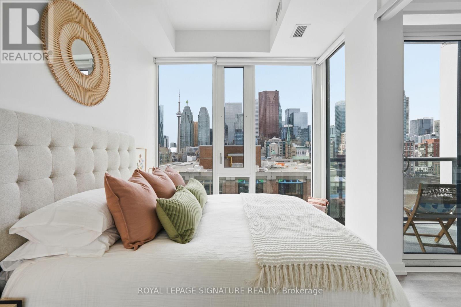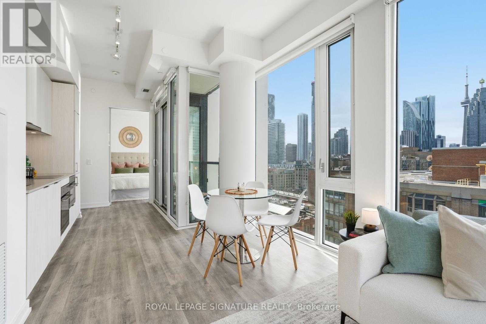 Experience elevated downtown living in this stunning corner suite in the heart of the St. Lawrence Market district. This thoughtfully designed 2-bedroom, 2-bathroom residence features a functional split-bedroom layout ideal for privacy and everyday comfort, complete with one parking space. Enjoy spectacular west-facing city views through expansive floor-to-ceiling windows that flood the space with natural light and frame an incredible, unobstructed view of the CN Tower and downtown skyline. Soaring 10-foot ceilings enhance the sense of space, creating a bright, airy, modern atmosphere. The building offers exceptional amenities, including 24-hour concierge and security service, an outdoor rooftop pool and terrace with seating/BBQ area, a three-level fitness centre, party room with kitchen and social lounge, billiards lounge and games room, library and co-working space, as well as guest suites and visitor parking. Perfectly positioned in one of Toronto's most sought-after neighbourhoods, you are steps to St. Lawrence Market, The Esplanade, Union Station, the Financial District and the waterfront. Commuting is effortless with quick access to the DVP, TTC and major transit hubs, while world-class dining, shopping and entertainment are right outside your door. A rare opportunity to own a beautifully designed suite with unbeatable skyline views in the centre of Toronto's most iconic downtown community. Internet included in monthly maintenance fee. (id:4555)