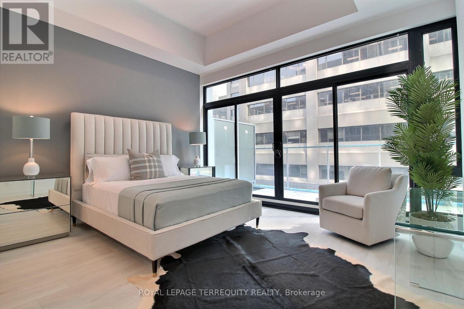 Exquisite executive residence in the heart of Yorkville, defined by soaring 12-foot ceilings and dramatic walls of windows that flood the space with natural light. One of the building's most coveted features, this suite boasts an exceptionally rare private terrace - offered in only a select handful of residences - creating a seamless extension of indoor-outdoor living in the city's most prestigious neighbourhood. A sleek and functional open-concept living & dining area offers effortless flow, ideal for both everyday living and elegant entertaining. The chef's kitchen features a generous centre island, built-in appliances, and ample storage. The spacious primary bedroom boasts a wall-to-wall closet, a 4-piece ensuite, and a walkout to the terrace. Fully furnished and flawlessly styled, this suite is ready for you to move in and enjoy immediately. Perfect as a sophisticated pied-à-terre for the executive or international traveller, the residence is complemented by hotel-inspired concierge service, valet parking, and refined building amenities including a gym, indoor pool, BBQ terrace, billiards lounge, and more. Just steps from Toronto's world-renowned Mink Mile, Yorkville's luxury boutiques, celebrated fine dining, and cultural landmarks. (id:4555)