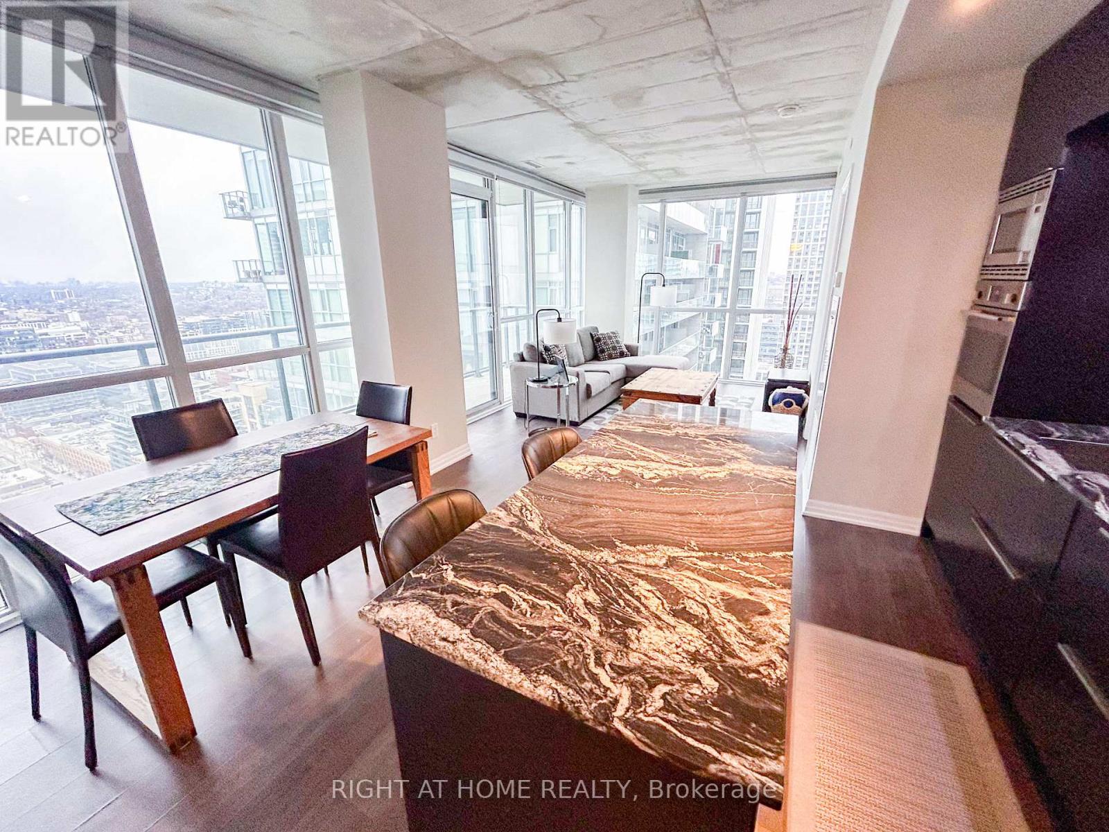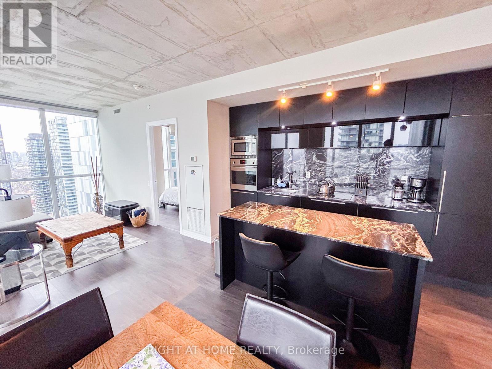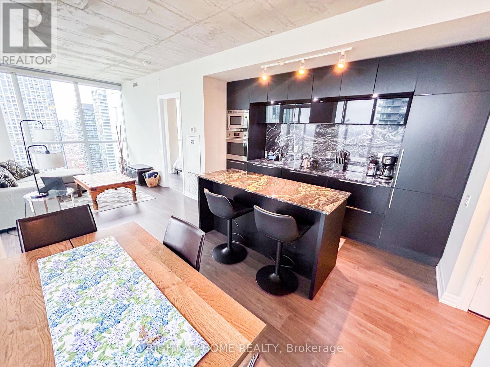 Discover elevated living at the iconic Bisha Hotel & Residences in the heart of King West. This sought-after 2-bedroom, 2-bathroom suite offers a desirable split-bedroom layout with 843 sq. ft. of thoughtfully designed living space, complemented by a 109 sq. ft. balcony showcasing expansive northwest views. The interior blends modern sophistication with an industrial edge, featuring exposed concrete ceilings, dramatic floor-to-ceiling windows, and a stylish open-concept kitchen complete with a central island and integrated appliances. Residents enjoy access to exceptional amenities, including a rooftop infinity pool and 24-hour concierge service. With an outstanding Walk Score of 99 and Transit Score of 100, you are just moments from the Rogers Centre, the Toronto International Film Festival, and some of the city's best dining and entertainment-offering not just a place to live, but a true King West lifestyle. (id:4555)