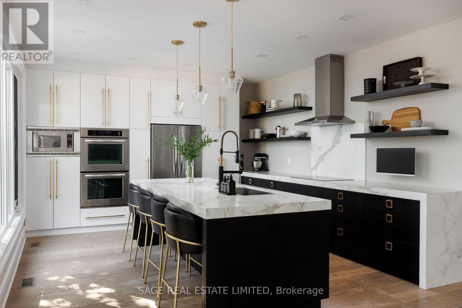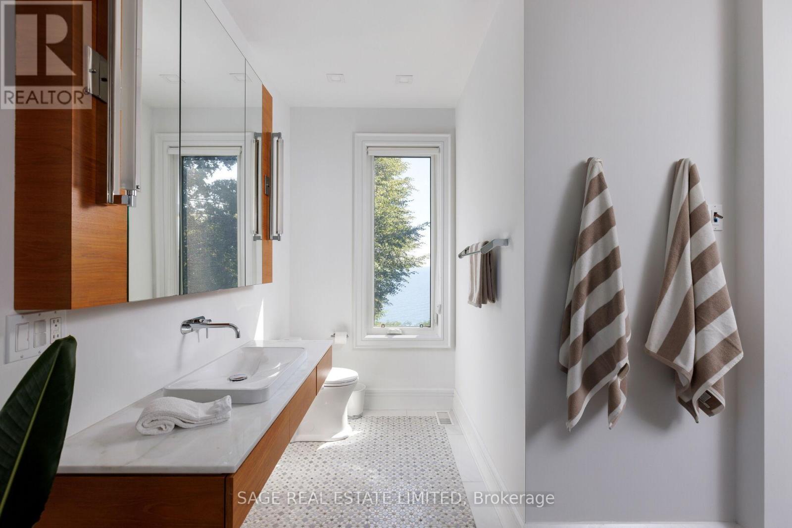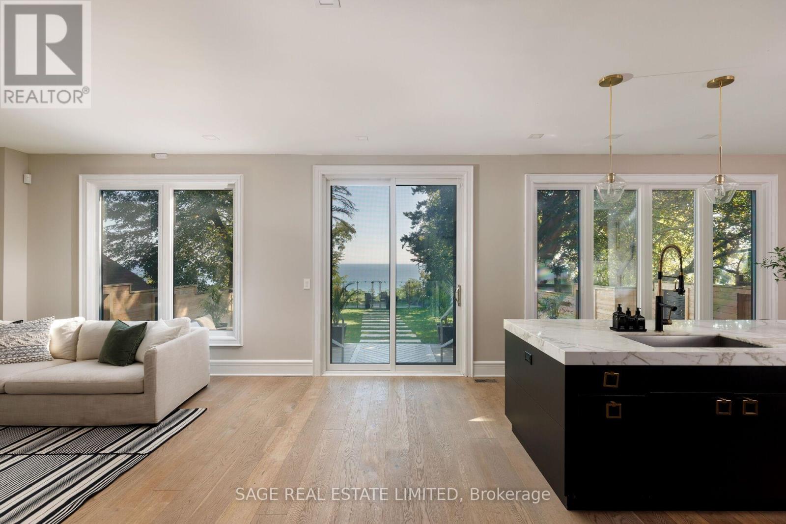 Perched on the Scarborough Bluffs with sweeping, year-round lake views, this sophisticated family home was built in 2011 and offers over 5,000 sq. ft. across four levels. From multiple vantage points you are treated to lakeside vistas, most notably from the show-stopping 875 sq. ft. rooftop terrace with a full outdoor custom kitchen (B/I fridge & BBQ) and gas fireplace. Additional outdoor spaces include a main floor composite deck, a fully fenced and extensively landscaped yard and a new glass-fenced cliffside patio. Inside, a custom chef's kitchen anchors the main floor with an open living/dining area plus a family room perfectly appointed for cozy movie nights. A private office is tucked away behind the kitchen. Upstairs, the primary suite offers two ensuite bathrooms and walk-in closets. A renovated second-floor bath features a new skylight and curbless shower, while the laundry room has new cabinetry, marble counters, and Miele appliances. The lower level features extra-high ceilings, a gym, renovated bath, partial kitchen, and garage access that's ideal for a nanny/in-law suite. The 2-car garage includes new epoxy flooring, slat wall storage and fastback hanging Kayak storage. Recent upgrades extend outdoors with a sprinkler system, upgraded landscaping, built-in BBQ & fridge and a custom front door. Security is top-tier with Ring cameras, hardwired AI cameras, DVR monitoring, Metalex screens, reinforced locks, and monitored alarm. Set within a close-knit community and near top-rated Chine Drive Public School, you'll also enjoy quick access to the Great Lakes Waterfront Trail plus hidden neighbourhood trails at the base of the Bluffs that provide direct lakeside access few know about. Birchmount Stadium, parks, and tennis courts are within walking distance, with shops and restaurants like City Cottage Market and The Birchcliff nearby. Just minutes from the Beaches but without the congestion; this is where waterfront luxury meets everyday comfort. (id:4555)