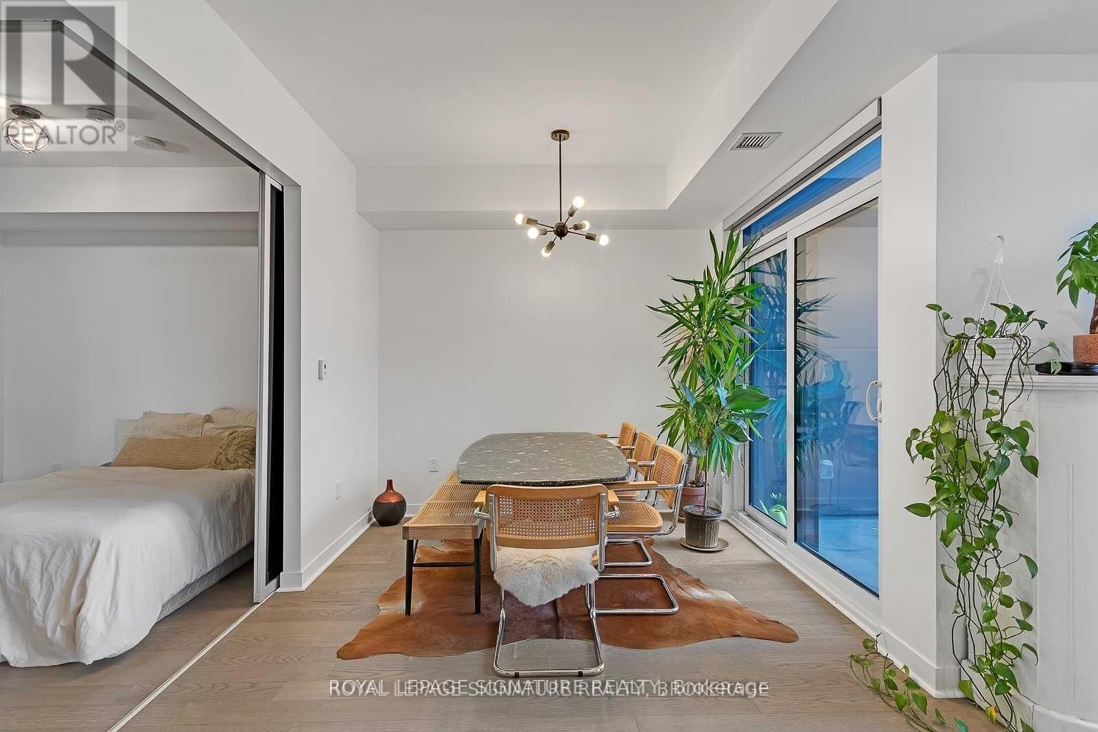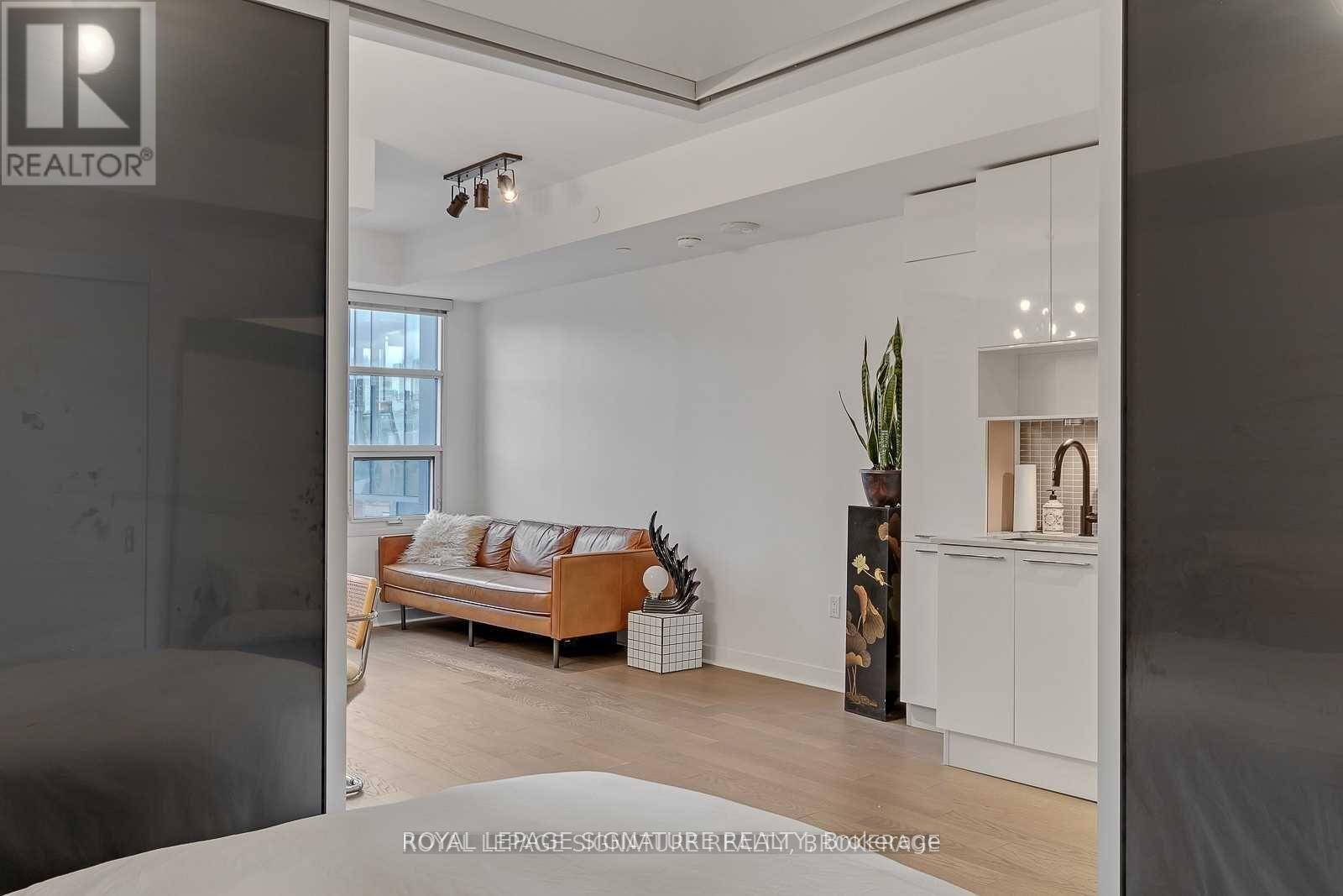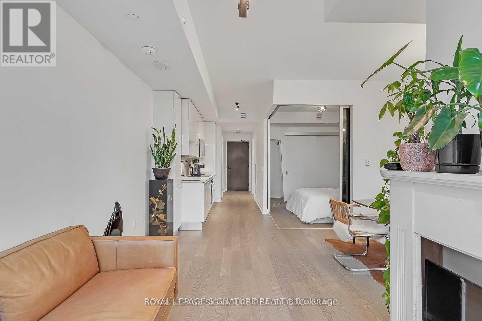 Experience the best of King West living at the highly coveted Kingly Condos at King & Portland. This exceptional 1-bedroom suite offers incredible value with thoughtful upgrades and a spacious open-concept layout designed for modern city living.The suite features expansive New York-style warehouse windows, 9-ft smooth ceilings, and wide plank flooring throughout, creating a bright and stylish atmosphere. The custom Scavolini kitchen is a standout, complete with full-sized integrated/panelled stainless steel appliances, natural stone counters, subway tile backsplash, and an additional custom pantry for extra storage.The lengthy open-concept living and dining area is perfect for entertaining, enhanced by floor-to-ceiling windows that bring in abundant natural light and offer versatile layout options. The primary bedroom is smartly enclosed with frosted glass sliding doors and features a double closet. Relax in the spa-inspired 4-piece bathroom finished with modern tile, a stone vanity, mirrored medicine cabinet, extra shelving, and a luxury 2-in-1 shower/tub. Step out onto your private balcony to enjoy sensational sunrise views, and take advantage of the included locker for added convenience.Residents enjoy state-of-the-art amenities, including a fitness centre and gym, rooftop deck, party and meeting rooms, and 24-hour concierge. Located just steps from Toronto's hottest restaurants, cafés, nightlife, and shopping, this is King West living at its finest. Live like royalty at The Kingly. (id:4555)