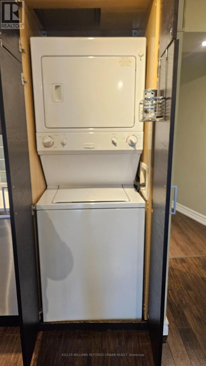 Gorgeous 2 bedroom, 850 sq. ft. suite, European style, renovated kitchen, open concept living/dining/kitchen. 2nd bedroom is currently used as an office. Halogen track lighting. South exposure with lake view. Great location, walk score of 99. Minutes to major amenities; Union Station, St. Lawrence Market, Harbourfront. Distillery, financial and entertainment districts. (id:4555)
