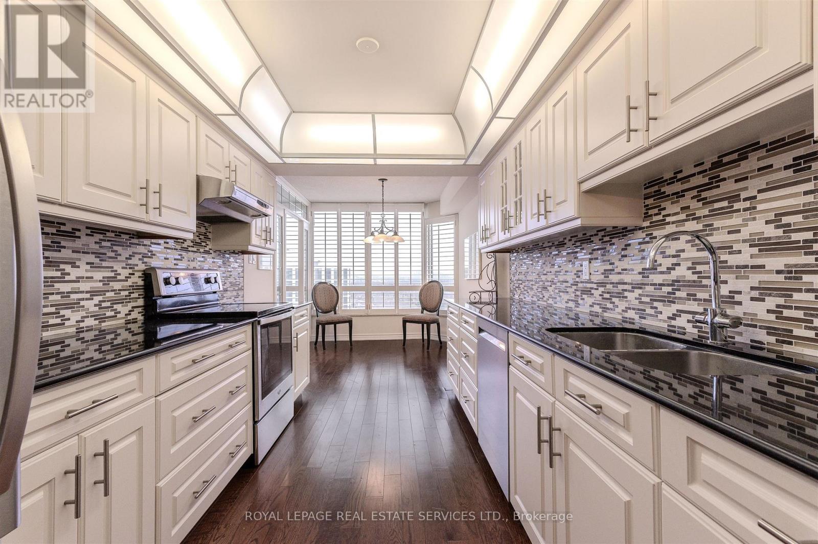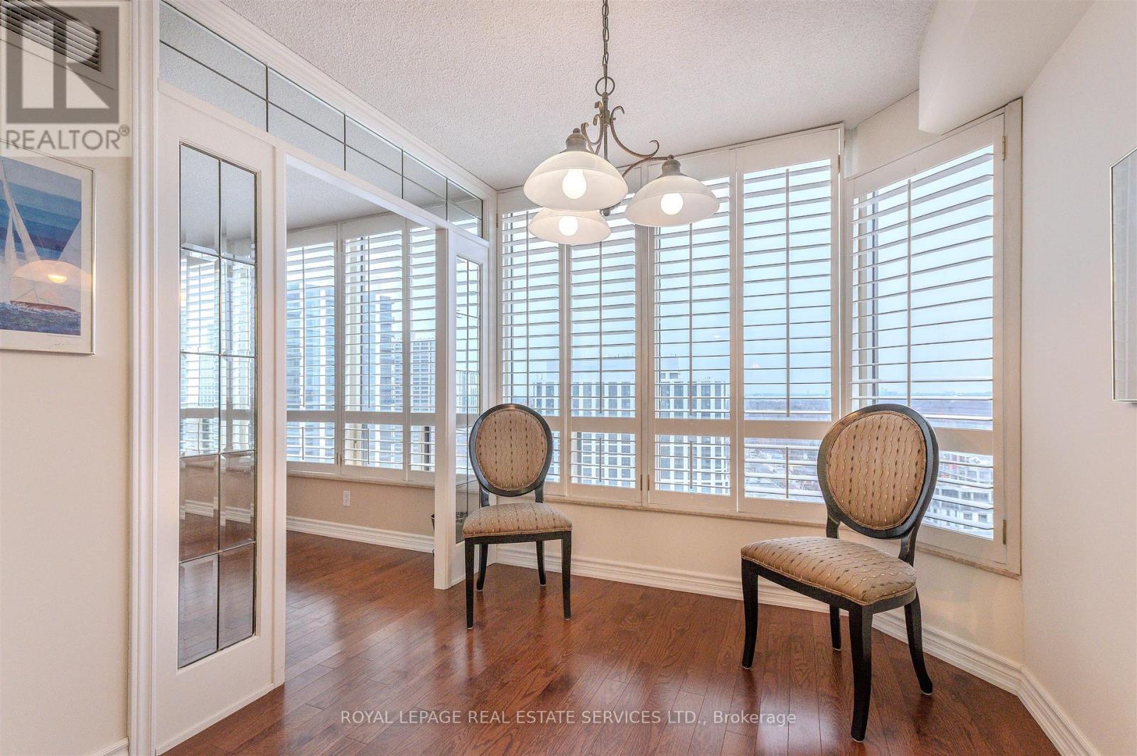 Step into a residence that truly sparkles. This super spacious 1350 square foot 2-bedroom plus den suite at the sought after Barclay Terrace offers an immaculate living experience - neat as a pin and bathed in bright natural light. Modern elegance meets functional design with engineered hardwood flooring flowing through the suite. The heart of the home is an updated kitchen featuring polished granite countertops and a ceramic/glass tile backsplash, sleek stainless steel appliances and a dedicated breakfast area for casual mornings. The primary living spaces are complemented by a versatile den and an updated 4-piece main bathroom, complete with a separate walk-in shower and a deep soaker tub. A stylish powder room with a pedestal sink serves guests, while the clear south west views provide a serene backdrop to your daily life. For ultimate convenience there is ensuite laundry, an ensuite locker/storage room and an included parking space. Your all-inclusive maintenance fees cover everything - even high-speed internet and cable TV! Experience a "vacation at home" lifestyle with incredible resort-style amenities including a 24-hour concierge, indoor pool, jacuzzi, fitness center, tennis and squash court, billiards, a woodworking shop, and a party room. Perfectly situated for an active lifestyle, and with a vibrant community atmosphere, you are just steps away from the charm of Islington Village. Enjoy easy access to local shops, cafes, and pubs, or take a short stroll to the Islington Golf Course and the seasonal farmer's market at Montgomery's Inn. Commuting is effortless with the Islington Subway and GO Station nearby, connecting you to the rest of the GTA in minutes. Suite 2504 isn't just a condo; it's a meticulously kept sanctuary in a premier Etobicoke community. (id:4555)