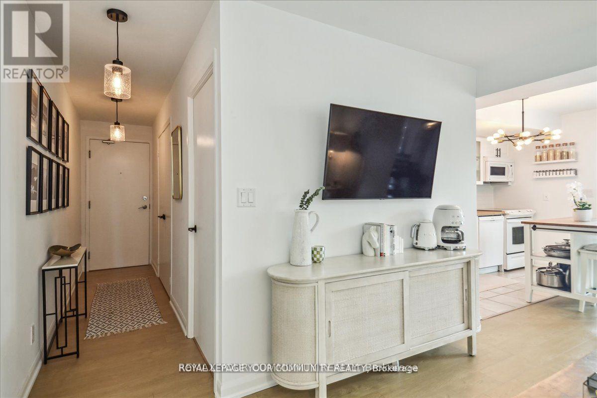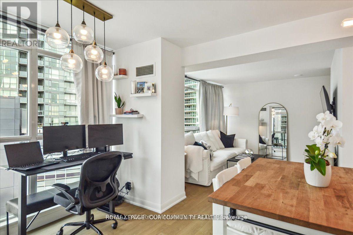 Spacious Corner Suite with Breathtaking Lake Views! Step into this exquisite one-bedroom corner suite, where floor-to-ceiling windows flood the space with natural light and showcase panoramic lake and city views. The functional and spacious layout includes room for a dedicated workspace, perfect for modern living. Recently upgrade dwith sleek new flooring and contemporary finishes, this suite is move-in ready and designed to impress. Ideally located just steps from Loblaws, Shoppers Drug Mart, LCBO, and Starbucks, with TTC Streetcars at your doorstep and easy access to highways. Enjoy Toronto's best restaurants., entertainment, and stunning suite that combines luxrury, convenience and unbeatable views! Parking rents in the building for roughly $150/month (id:4555)
