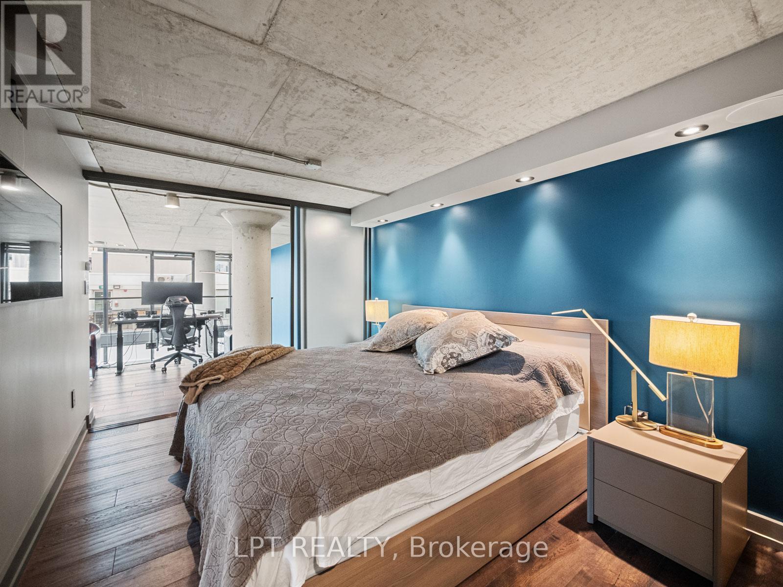 Where King West Energy Meets Penthouse Luxury.Amazing two-storey, 2+1 bedroom, 2 1/2 bath loft is one of only two on the floor - completely reimagined with over $500,000 in custom redesign and detailing.Spanning 1,600 + sq ft, the open-concept living area sits beneath dramatic 18 ft double-height glass, blurring the line between indoors and out. Every detail is intentional - exposed concrete columns, custom wood floors, and a 10.5-ft island, anchor a Miele-equipped kitchen designed for enjoyable cooking and entertaining. Integrated Bowers & Wilkins sound flows through the space, while a 9-ft dining table and sculptural lighting set the stage for memorable evenings.The flexible layout can be enjoyed in its current configuration or easily converted back to the original two-bedroom design on the upper level. Either way, this space blends calm and character with rich textures, built in wet bar, private jacuzzi bath, and a spacious balcony that accentuates unobstructed city views - your own quiet retreat above the skyline. The main-floor den includes a built-in desk and Murphy bed, ideal for guests or a private home office. The 806 sq ft lower terrace is the true showstopper: a private outdoor oasis with a premium Swim Spa, Weber Summit BBQ, and custom Sunbrella lounge and dining zones. Gas and water lines make it perfect for year-round use.Every finish has been curated - from automated blinds and integrated lighting to two parking spaces and a triple-size locker. Set in Toronto's King West, you're steps from top restaurants, shopping, gyms, and nightlife.If you love to entertain and live in style, PH1 at 533 Richmond is where it all comes together. (id:4555)