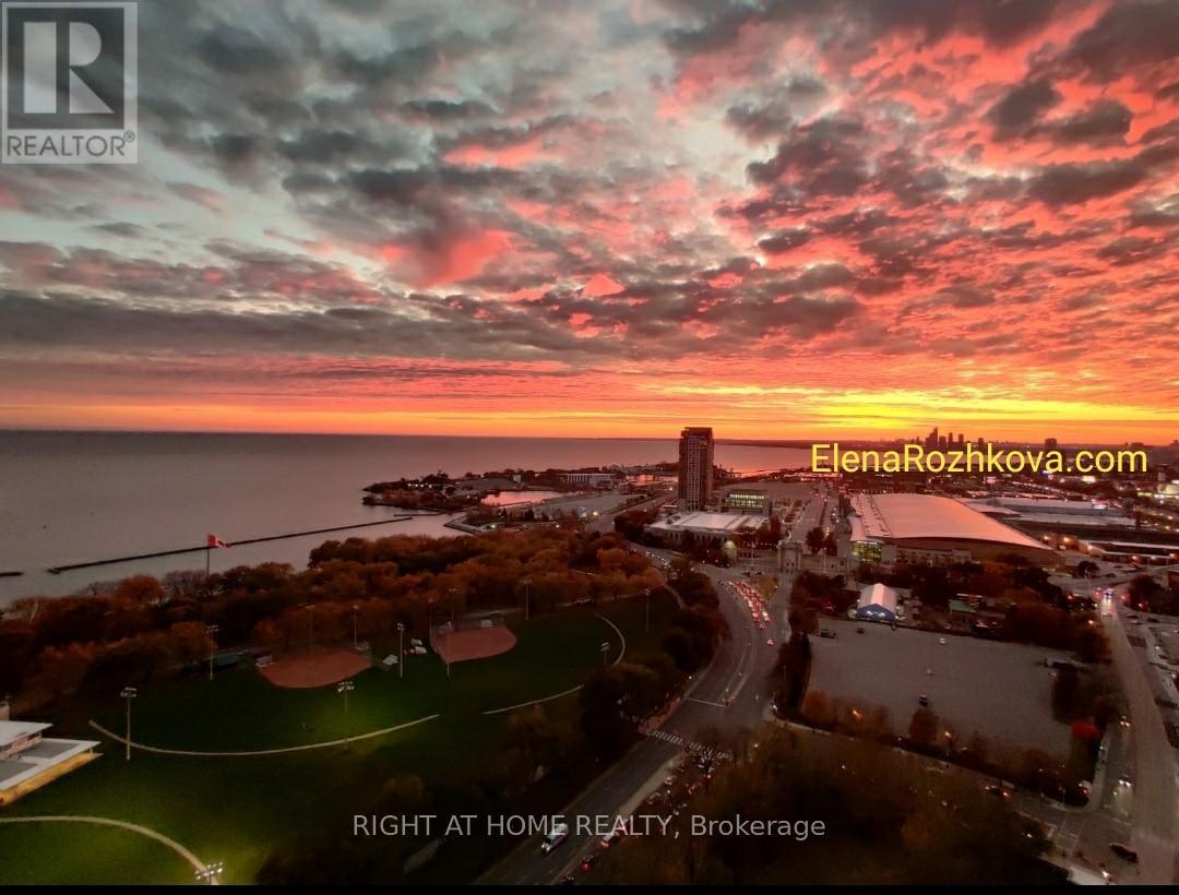 Large Modern Bright Studio with gorgeous lake and sunset views from floor to ceiling windows! One Of The Most popular downtown condo buildings! Very practical layout, separate kitchen area. 9 Ft Ceilings. Dark hardwood floors & tall Kitchen Cabinets W/Custom undercabinet lighting, Granite Counters, S/S Appliances, Dishwasher, Microwave, En Suite Laundry, 2 Closets. Custom Pot Lights In Living Room. Steps To Parks, Lake, Skating Rink. (id:4555)