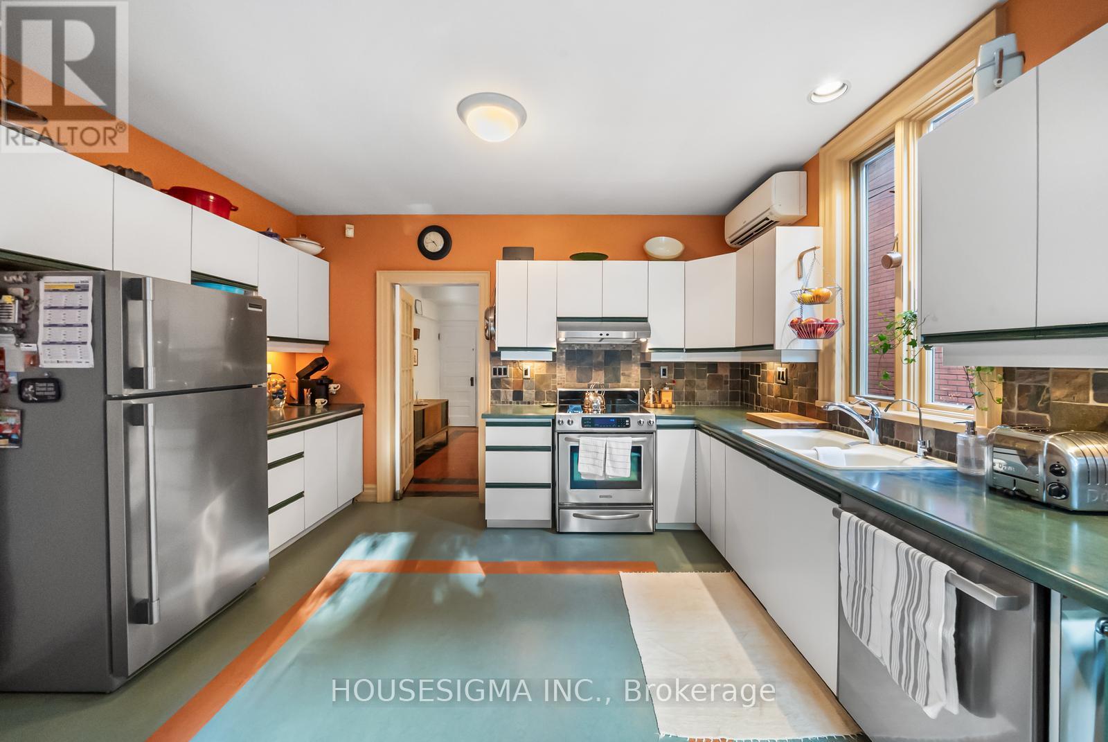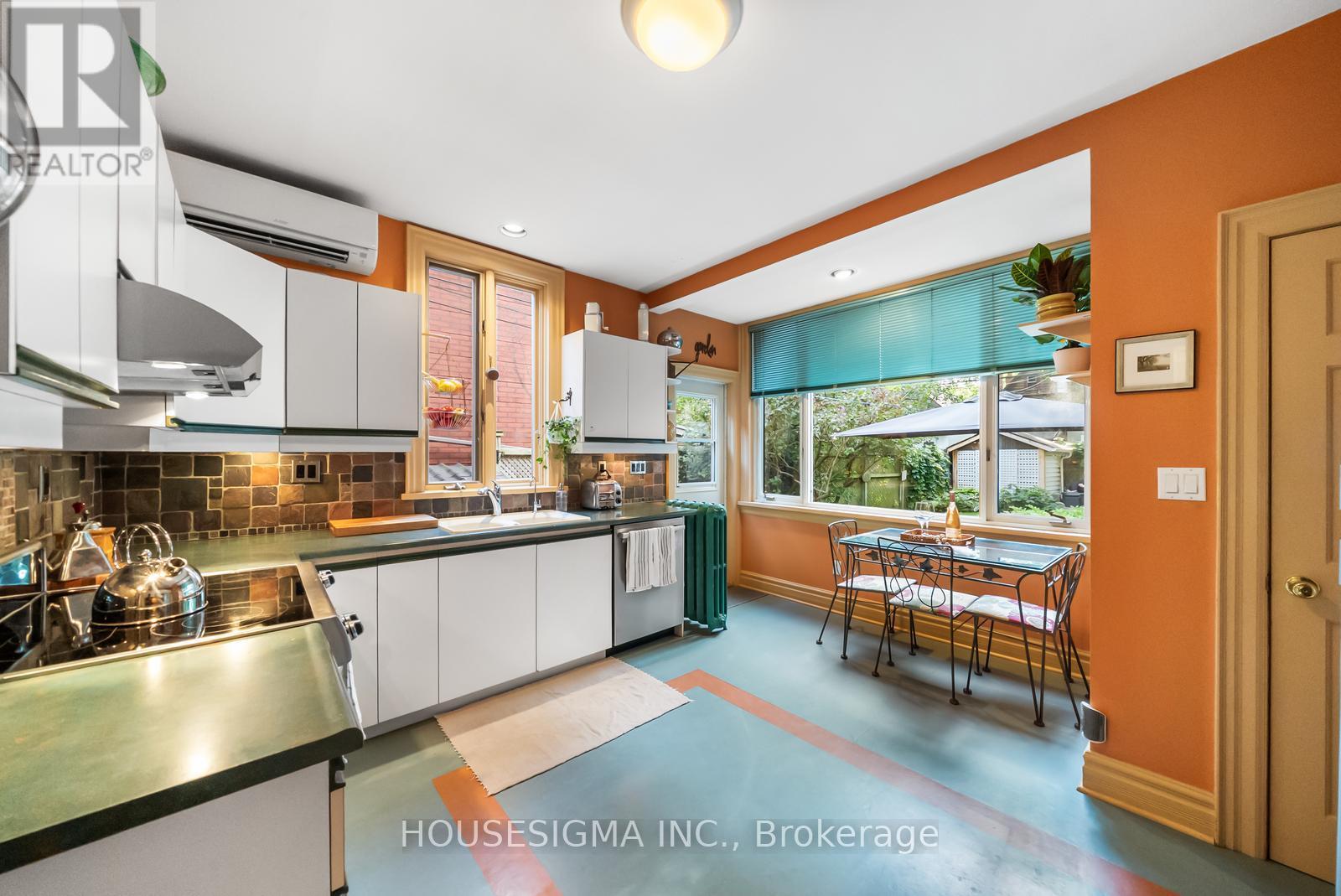 Upon entering this lovingly maintained home you're greeted by timeless charm seamlessly blended with contemporary living. This turnkey two-storey exudes warmth and character, with three bedrooms, soaring ceilings, two modern bathrooms, and a kitchen designed for both everyday living and entertaining. The spacious living/dining room includes exposed brick, large windows, and generous traditional trims. The second floor includes a primary bedroom with a bonus office, two additional bedrooms, and a tranquil 4-piece bath with cathedral ceiling and skylight. The exterior's charm extends the interior's comfort, with a welcoming front porch and a walkout from the kitchen that leads to an inviting urban courtyard - mature perennial gardens and a natural shade provide the perfect spot for morning coffee or unwinding with a book. The basement has a separate entrance and provides versatile additional living space, ideal for work, guests, or recreation. With its abundance of character, exceptional curb appeal, and a deep lot with a wide, private driveway, this home checks every box. Shopping, transit, restaurants, schools (Montessori, public, and alternative), and the lake are just steps away. Whether you're a first-time buyer or looking to downsize, this home offers comfort, convenience, and charm in a delightful family-oriented community. Welcome to 172 Ashdale everything you need, wrapped up in one sweet package. (id:4555)