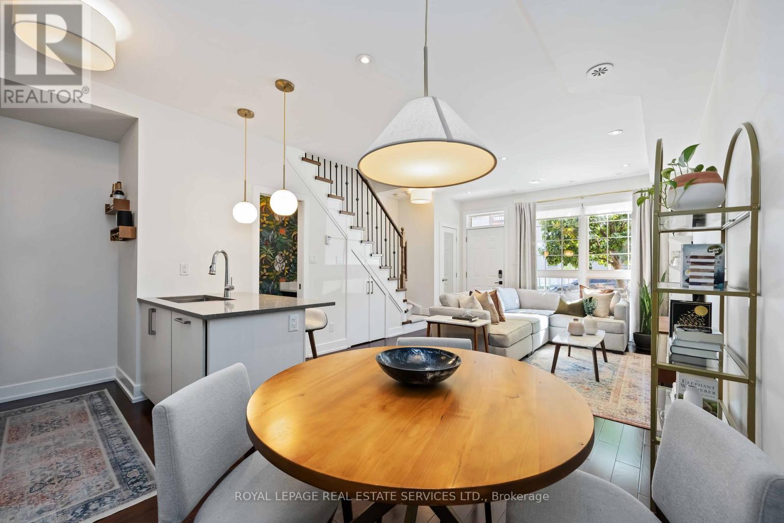 Discover elevated urban living in this spacious, sleek, and contemporary three-bedroom, three-bathroom home at Heritage Towns in Davenport Village. Located in Toronto's highly sought-after West End, this well designed residence is thoughtfully laid out over 4 spacious levels. The home's rich-toned brick exterior and majestic windows exude curb appeal. Inside, the open-concept layout is bathed in natural light, thanks to soaring nine-foot ceilings and dramatic floor-to-ceiling windows. The gourmet kitchen is a chef's dream, featuring upgraded Jenn-Air appliances, premium quartz counters, and custom cabinetry. Luxurious engineered hardwood flooring runs throughout, complemented by a fresh, clean feel from the 2022 full-house paint and refreshed bathrooms. The luxurious Master Retreat boasts two large closets and a private ensuite. Two additional large bedrooms accompany a versatile den-perfect for a home office-which opens onto your massive, south-facing terrace. This private oasis features a gas connection for your BBQ and offers a spectacular, unobstructed skyline and CN Tower view. This incredible home includes two underground parking spaces (one being extra-wide/handicap accessible) and one storage locker. Situated perfectly, you'll enjoy unparalleled access to the West Toronto Rail-path, subway, TTC/streetcar, GO Train, and a vibrant neighbourhood with parks, top restaurants, and shopping-all within walking distance. (id:4555)