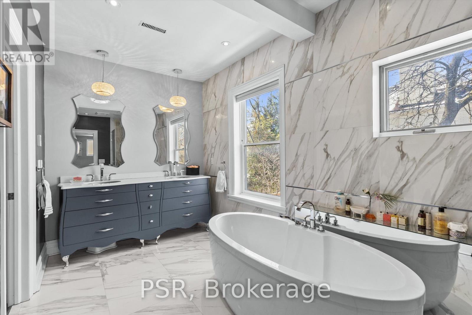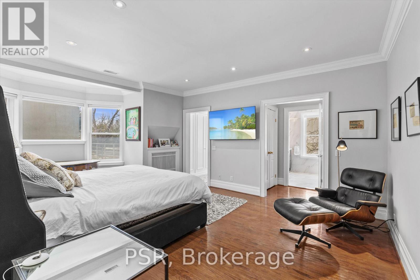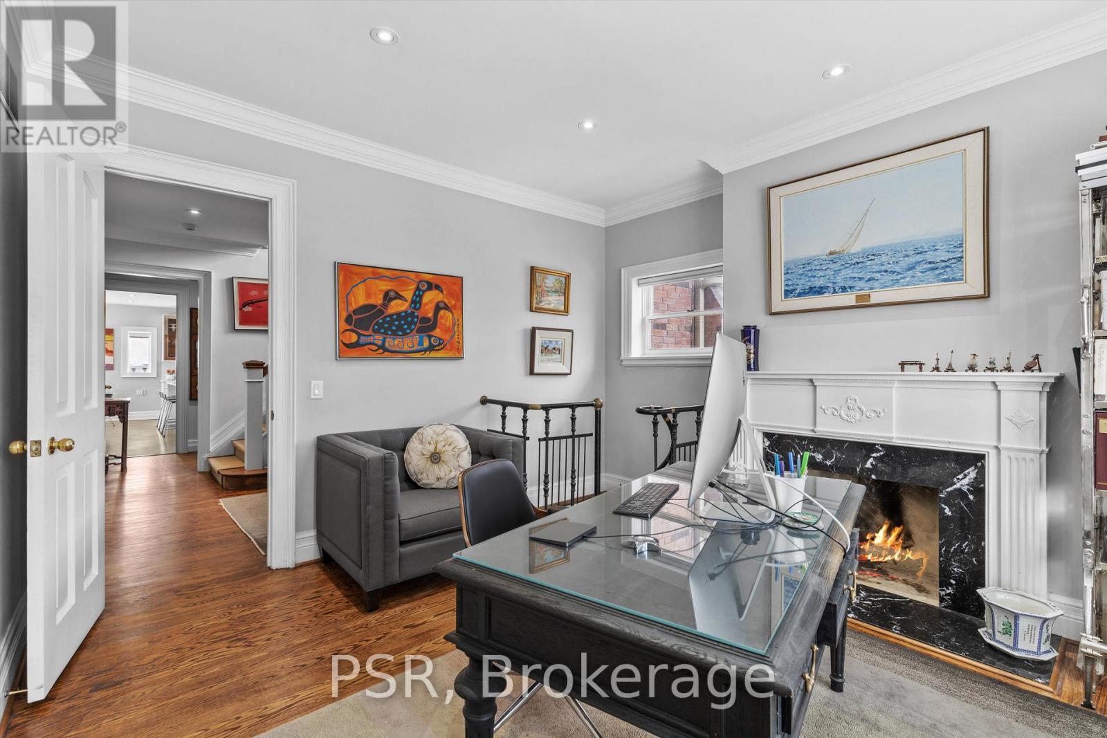 Nestled on a 50 x 135 ft corner lot in prestigious South Hill, 31 Clarendon Avenue offers charm, space, and functionality. The home features a lovely, cottage-like exterior and a unique corner setting with a sport court along Poplar Plains, backyard space on the Clarendon side, and a 2-car garage with 4-car driveway. Inside, dark hardwood floors run through elegant principal rooms including a formal living room with fireplace, formal dining room, and an enclosed kitchen with dark rubber flooring, Thermador & Bosch appliances, centre island, and built-in bar area. A bright step-down family room with windows on two sides and outdoor access offers a comfortable gathering space, while a private office with spiral staircase to the basement is ideal for working from home. The upper levels offer six bedrooms, including a primary suite with walk-in closet and 6-piece ensuite with heated floors, additional heated-floor bathrooms, and laundry. The lower level with separate side entrance features recreation space, a gym area, bedrooms, and ample storage-offering excellent flexibility for family living or guests. 31 Clarendon Avenue is a rare opportunity in South Hill-welcome to your cottage in the city. (id:4555)
