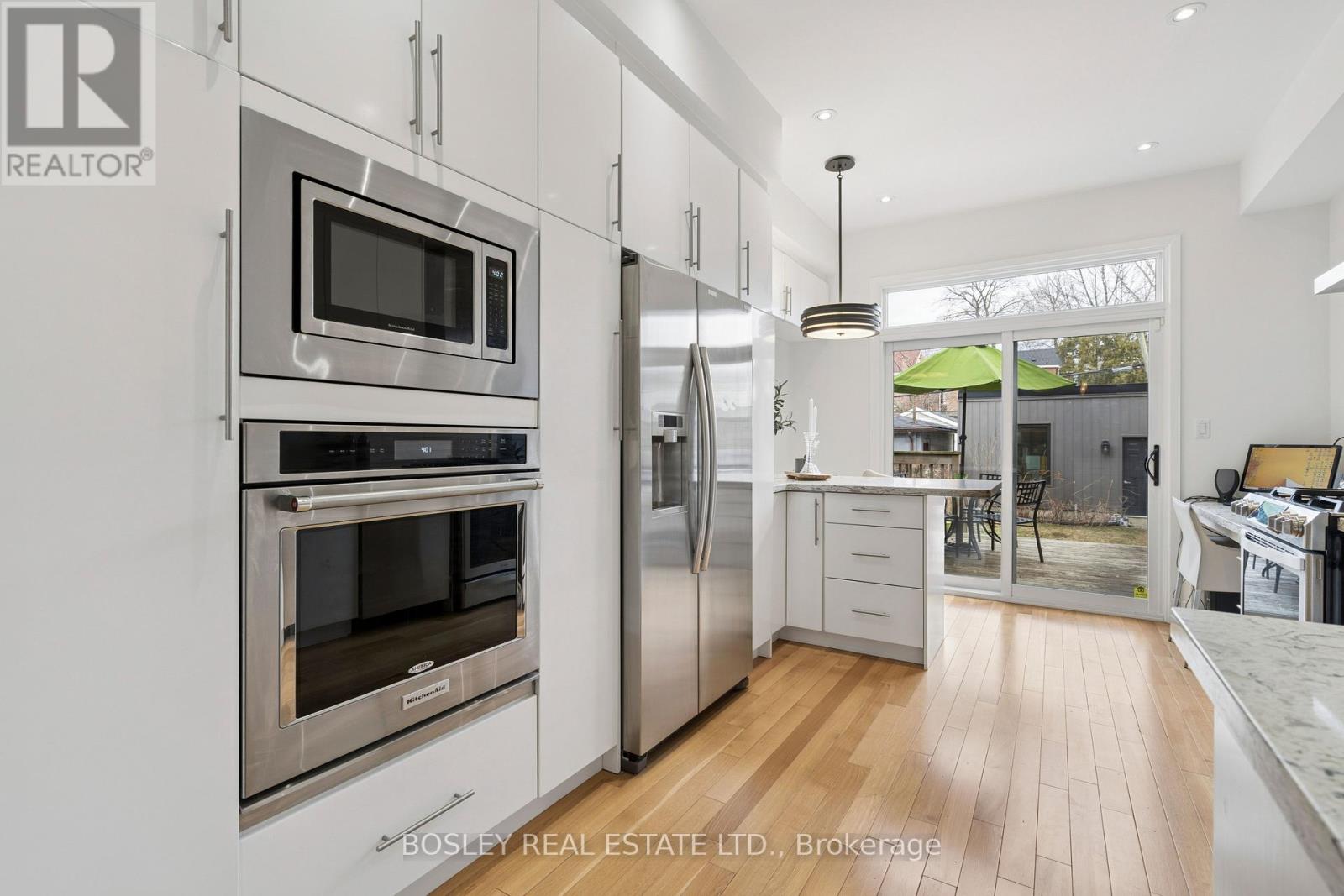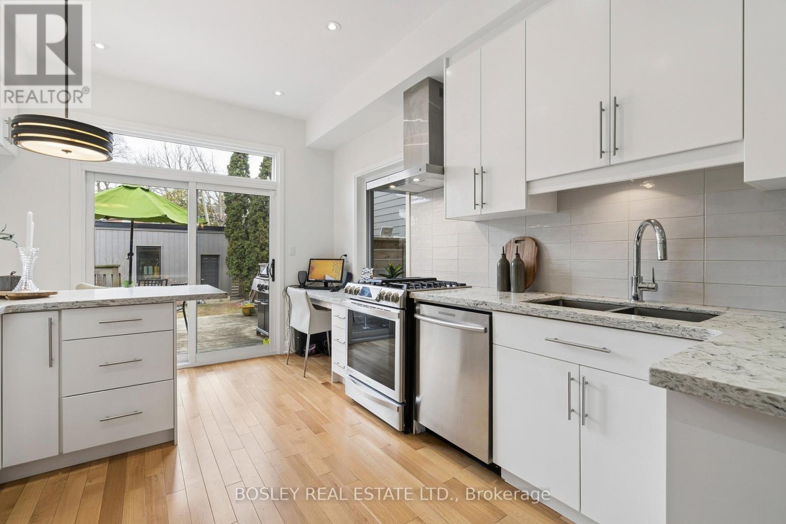 Welcome to 43 Chester Ave: a detached 3-storey custom designed home in Coveted Playter Estates. The home was totally rebuilt in 2015, with an Architect and Designer who thought of everything. Throughout the house are high ceilings, hardwood floors, and low-profile radiators providing a consistent temperature. The open-concept main floor features a bright living room with a stylish built-in gas fireplace, dining room with ample space for family dinners, and a beautifully outfitted custom kitchen with two counters for seating and a built-in desk for the kids to do homework while dinner is cooking. Large sliding glass doors open onto a private deck, garden and garage. The garage, accessed from the lane boasts a 13 ft. ceiling for storage galore and 60-amp service for future projects. On the 2nd floor, there are 2 spacious bedrooms. The primary offers a leafy green view of Chester Ave., a 3-piece ensuite and a built-in closet; the 2nd bedroom overlooks the sunny back garden. Between these are a 4-piece washroom and a stacked laundry area. Open stairs w/skylight leads to the 3rd floor where you will find a uniquely designed bathroom, 2 more bedrooms: one with a sweet balcony; the other, a double built-in closet and a gabled tree top view. The basement, with separate entrance, heated floor, roughed in plumbing and electrical for a kitchen, 4-piece washroom, laundry, full living room and a separate bedroom is perfect for a rental unit/nanny suite/guest room/apartment for the young adult who moves back home after university/a home office, or simply a playroom. So nice to have options! Families will appreciate the convenience of their young children being able to walk to Jackman Elementary School, their teenagers being a short and safe walk to Chester Subway, and proximity for all to shopping, restaurants, and the other amenities of Greektown. Your search is over, you haven't just found a home for your family, you have found your forever home. (id:4555)