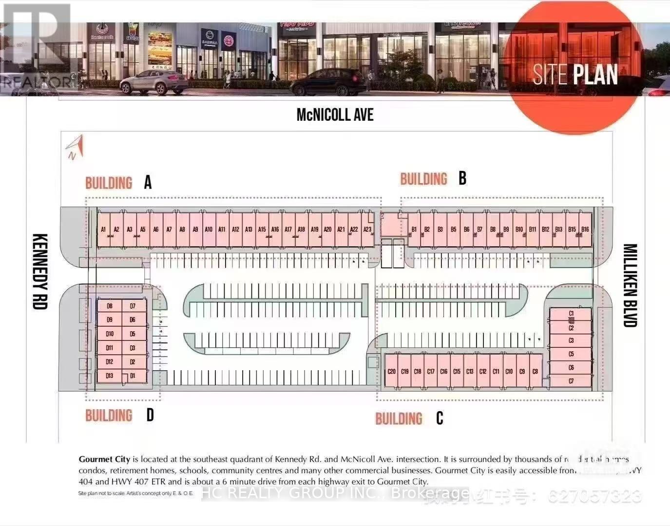 Client RemarksGourmet City Commercial Condos - a brand new culinary hub in Scarborough at a strategic and convenient location in the SE quadrant of Kennedy Rd and McNicoll Ave, offering great exposure on Kennedy Rd, with direct access from Kennedy Rd and Milliken Blvd. The development by H & H Group features a modern design with high quality finishes. The plaza enjoys high visibility and foot traffic, providing a great variety of opportunities for lucrative business ventures. 20 ft high ceiling brand new unit with mezzanine in raw condition. Permitted uses include restaurant, Dining in bakery , cafe, dessert shop, bubble tea, Bar & more. Great business opportunities cater to different cultures. Minutes drive to Hwy 404/407. (id:4555)