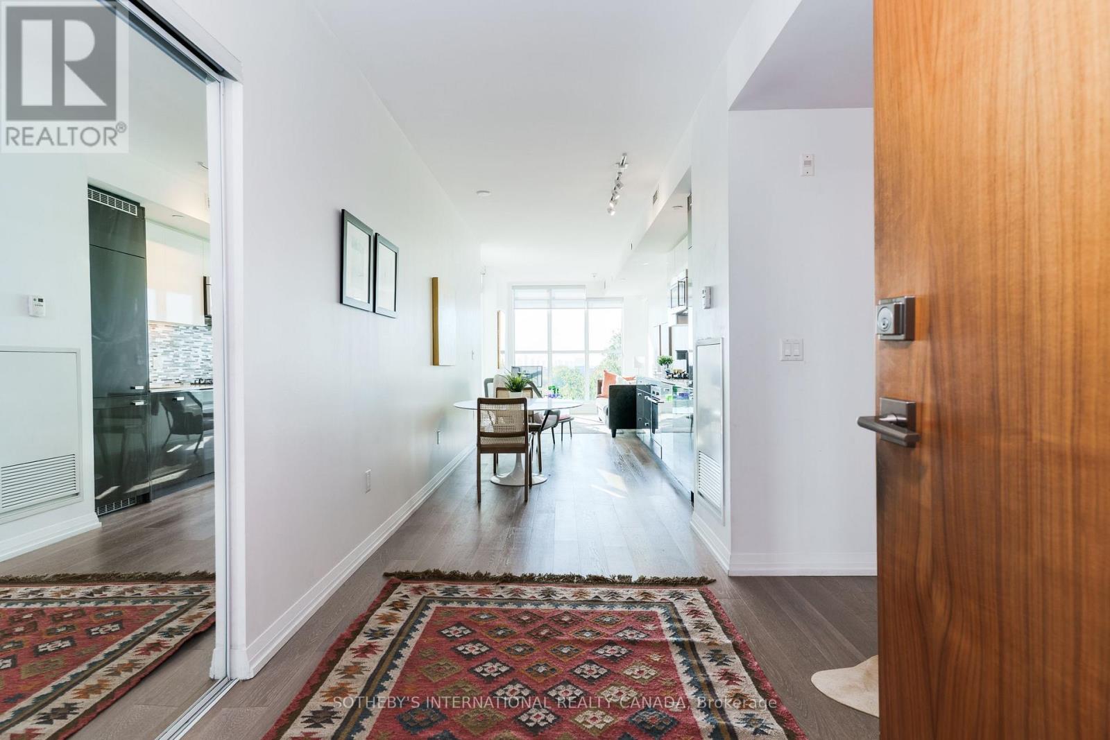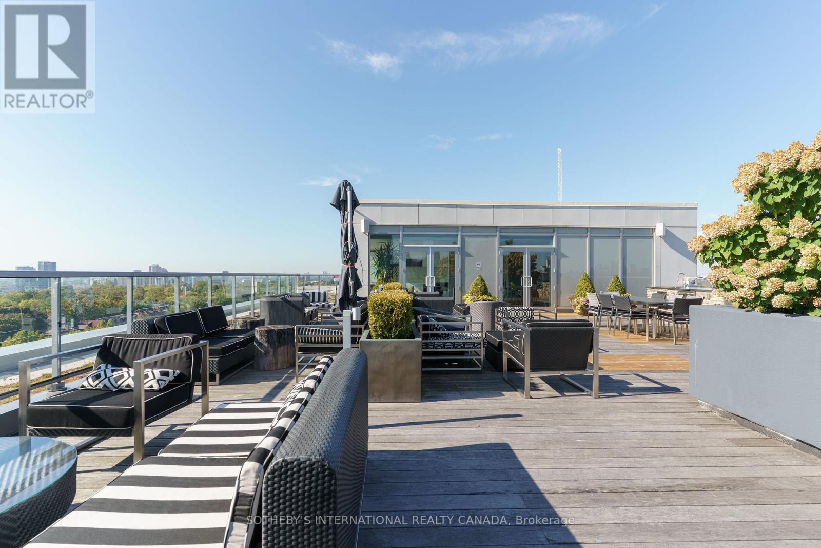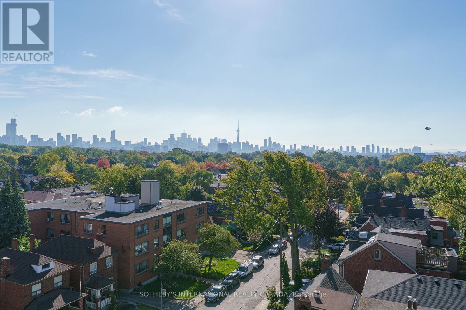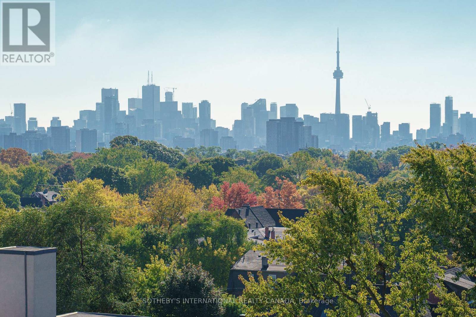 Welcome to NEST Condos, a sought-after boutique building in the heart of Wychwood, just steps to the best of St. Clair West. This immaculate 2 bedroom, 2 bathroom suite offers a thoughtfully designed, highly functional layout tailored for comfortable everyday living. Filled with natural light from its south-facing exposure, enjoy clear views of the CN Tower and city skyline from the living area and private 96 sq. ft. balcony.The sleek kitchen features built-in European appliances, quartz counters, an upgraded backsplash, and a gas cooktop. Generous built-in storage is found throughout. The balcony includes a gas BBQ hookup, ideal for outdoor dining. The primary bedroom offers a 3 piece ensuite and spectacular city-skyline views. The original den has been professionally enclosed to create a true second bedroom, while still offering flexibility as a private office if desired. A second full bathroom adds everyday convenience. Parking is located near the elevator, with a dedicated locker for extra storage. Residents enjoy excellent amenities, including a well-equipped gym, dog wash station, indoor/outdoor rooftop lounge with breathtaking skyline views stretching to Lake Ontario, and a main floor party room. With an outstanding Walk Score of 98, everything you need is just steps away-shops, cafés, restaurants, and the Wychwood Barns farmers' market, with Corso Italia nearby. Easy transit access-just 12 minutes to St. Clair West Station and 22 minutes to Yonge-St. Clair. Offering incredible value, this is a rare opportunity to own in a well-loved boutique building in one of Toronto's most vibrant communities. Maintenance fees include heating and high-speed internet (id:4555)