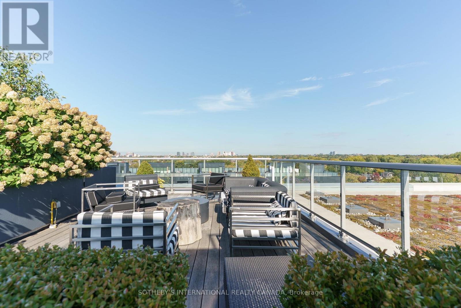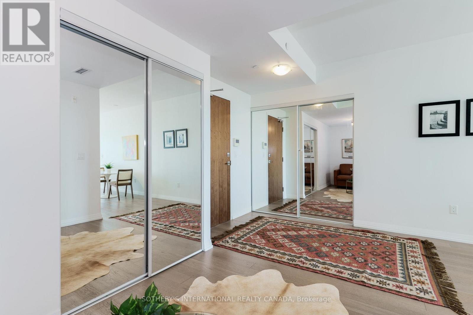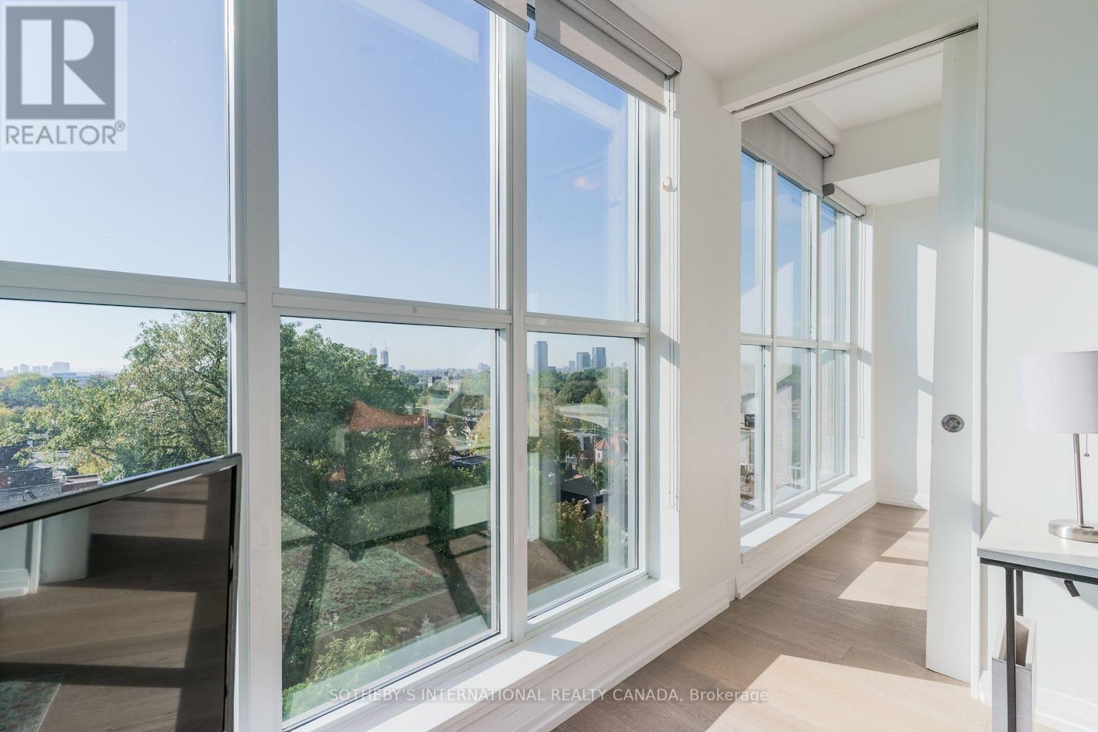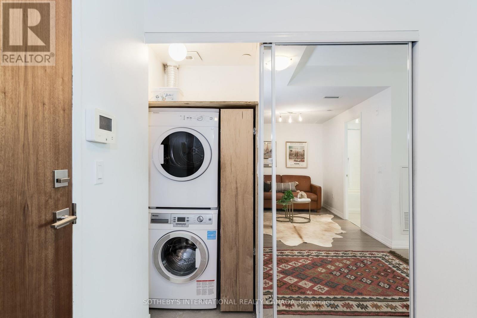 Welcome to NEST Condos, a sought-after boutique building in the heart of Wychwood, just steps to the best of St. Clair West. This immaculate 2 bedroom, 2 bathroom suite offers a thoughtfully designed, highly functional layout tailored for comfortable everyday living. Filled with natural light from its south-facing exposure, enjoy clear views of the CN Tower and city skyline from the living area and private 96 sq. ft. balcony.The sleek kitchen features built-in European appliances, quartz counters, an upgraded backsplash, and a gas cooktop. Generous built-in storage is found throughout. The balcony includes a gas BBQ hookup, ideal for outdoor dining. The primary bedroom offers a 3 piece ensuite and spectacular city-skyline views. The original den has been professionally enclosed to create a true second bedroom, while still offering flexibility as a private office if desired. A second full bathroom adds everyday convenience. Parking is located near the elevator, with a dedicated locker for extra storage. Residents enjoy excellent amenities, including a well-equipped gym, dog wash station, indoor/outdoor rooftop lounge with breathtaking skyline views stretching to Lake Ontario, and a main floor party room. With an outstanding Walk Score of 98, everything you need is just steps away-shops, cafés, restaurants, and the Wychwood Barns farmers' market, with Corso Italia nearby. Easy transit access-just 12 minutes to St. Clair West Station and 22 minutes to Yonge-St. Clair. Offering incredible value, this is a rare opportunity to own in a well-loved boutique building in one of Toronto's most vibrant communities. Maintenance fees include heating and high-speed internet (id:4555)