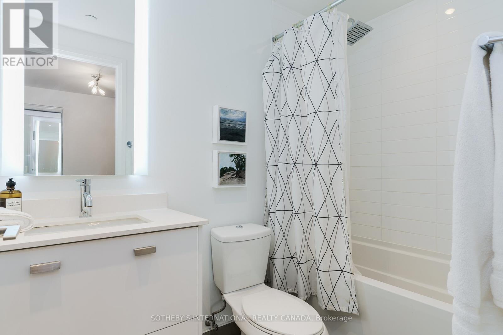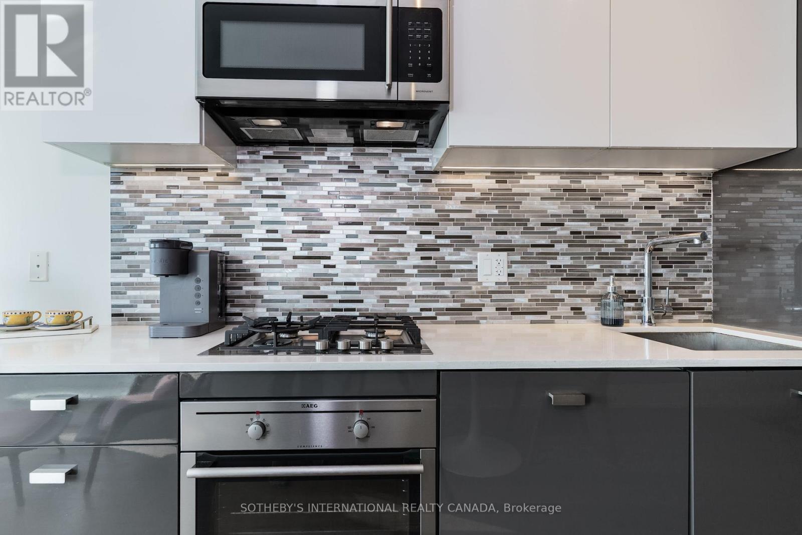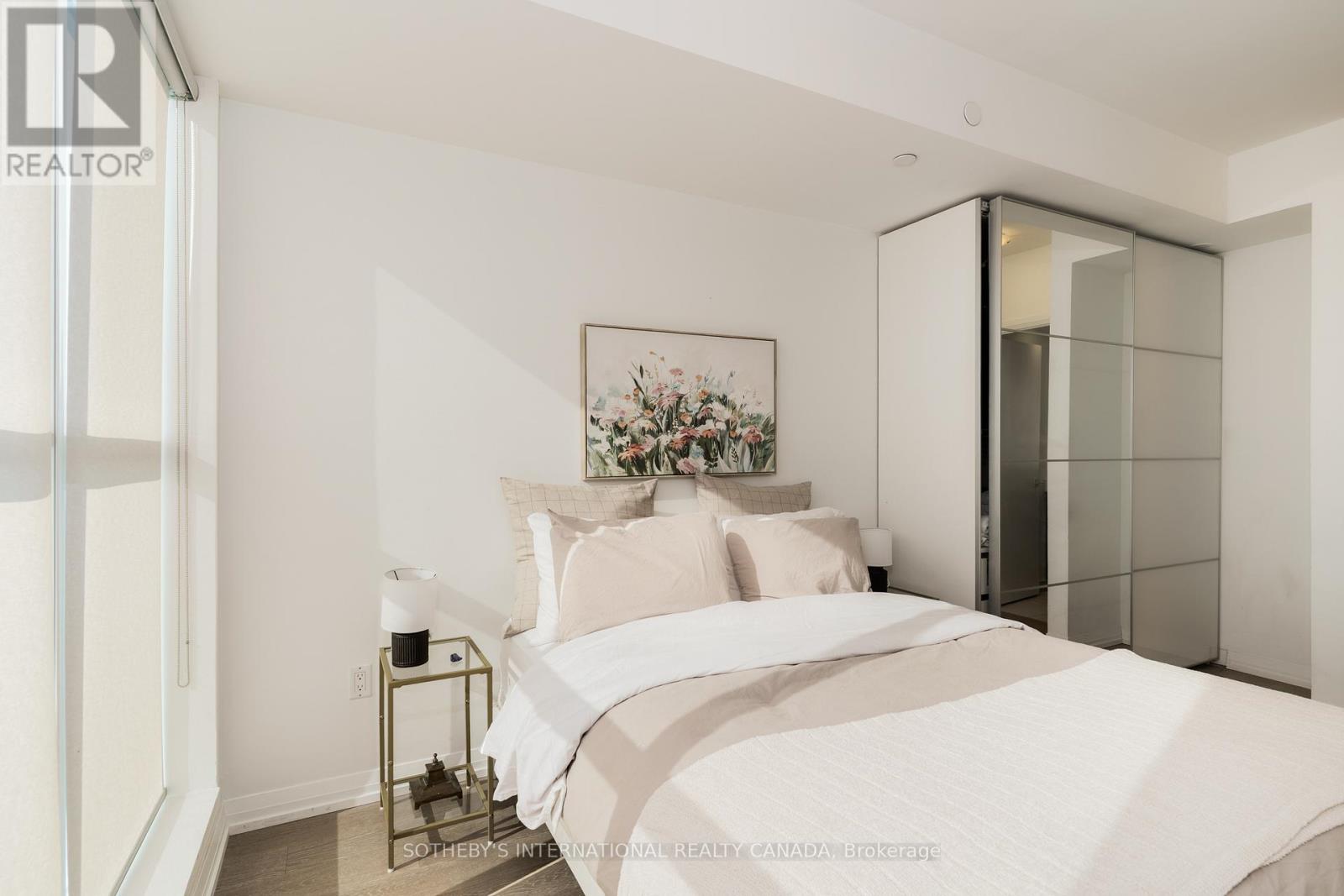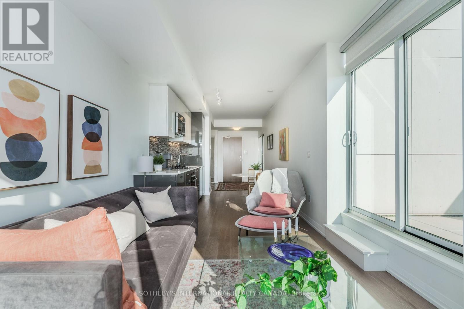 Welcome to NEST Condos, a sought-after boutique building in the heart of Wychwood, just steps to the best of St. Clair West. This immaculate 2 bedroom, 2 bathroom suite offers a thoughtfully designed, highly functional layout tailored for comfortable everyday living. Filled with natural light from its south-facing exposure, enjoy clear views of the CN Tower and city skyline from the living area and private 96 sq. ft. balcony.The sleek kitchen features built-in European appliances, quartz counters, an upgraded backsplash, and a gas cooktop. Generous built-in storage is found throughout. The balcony includes a gas BBQ hookup, ideal for outdoor dining. The primary bedroom offers a 3 piece ensuite and spectacular city-skyline views. The original den has been professionally enclosed to create a true second bedroom, while still offering flexibility as a private office if desired. A second full bathroom adds everyday convenience. Parking is located near the elevator, with a dedicated locker for extra storage. Residents enjoy excellent amenities, including a well-equipped gym, dog wash station, indoor/outdoor rooftop lounge with breathtaking skyline views stretching to Lake Ontario, and a main floor party room. With an outstanding Walk Score of 98, everything you need is just steps away-shops, cafés, restaurants, and the Wychwood Barns farmers' market, with Corso Italia nearby. Easy transit access-just 12 minutes to St. Clair West Station and 22 minutes to Yonge-St. Clair. Offering incredible value, this is a rare opportunity to own in a well-loved boutique building in one of Toronto's most vibrant communities. Maintenance fees include heating and high-speed internet (id:4555)