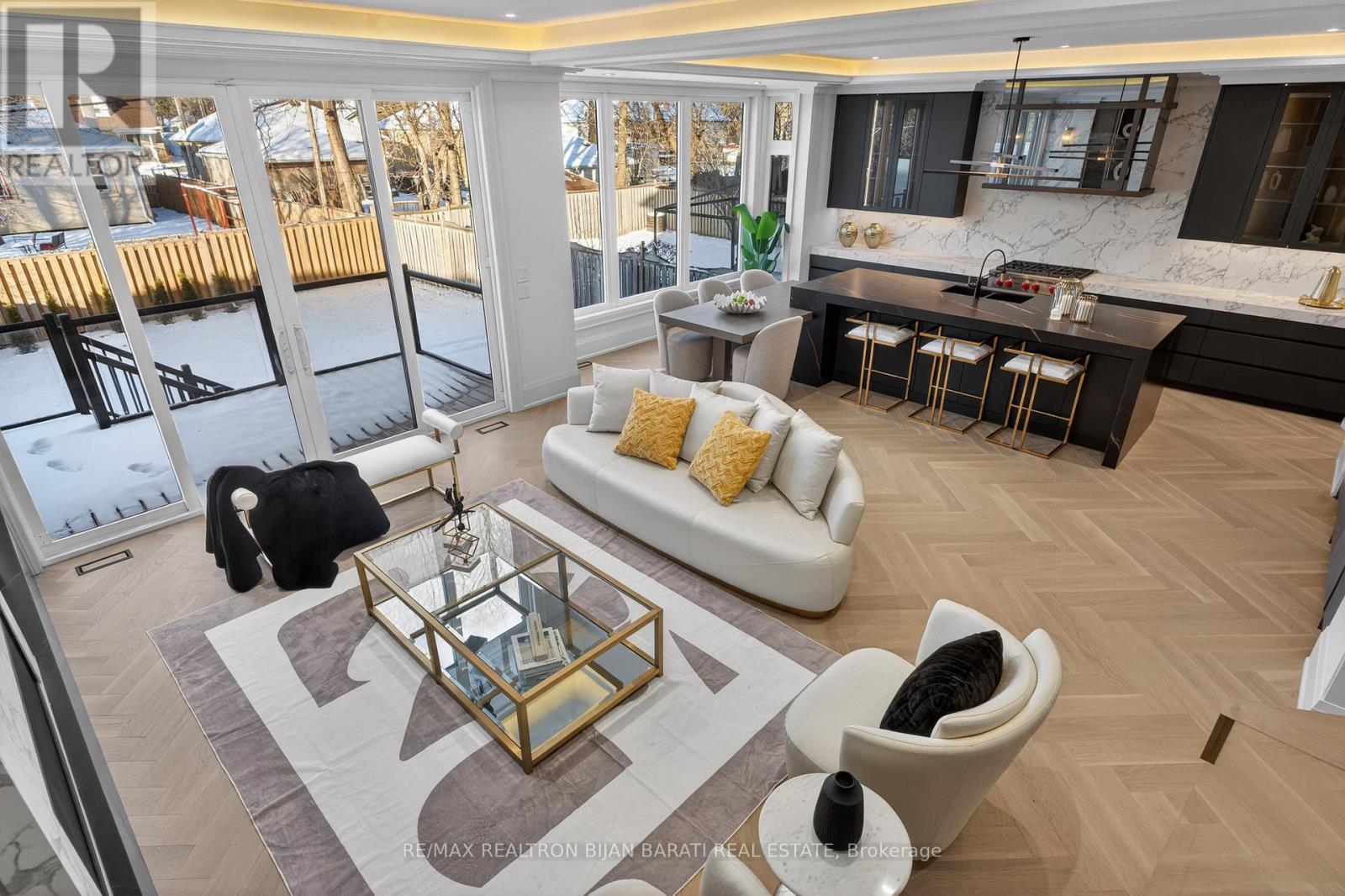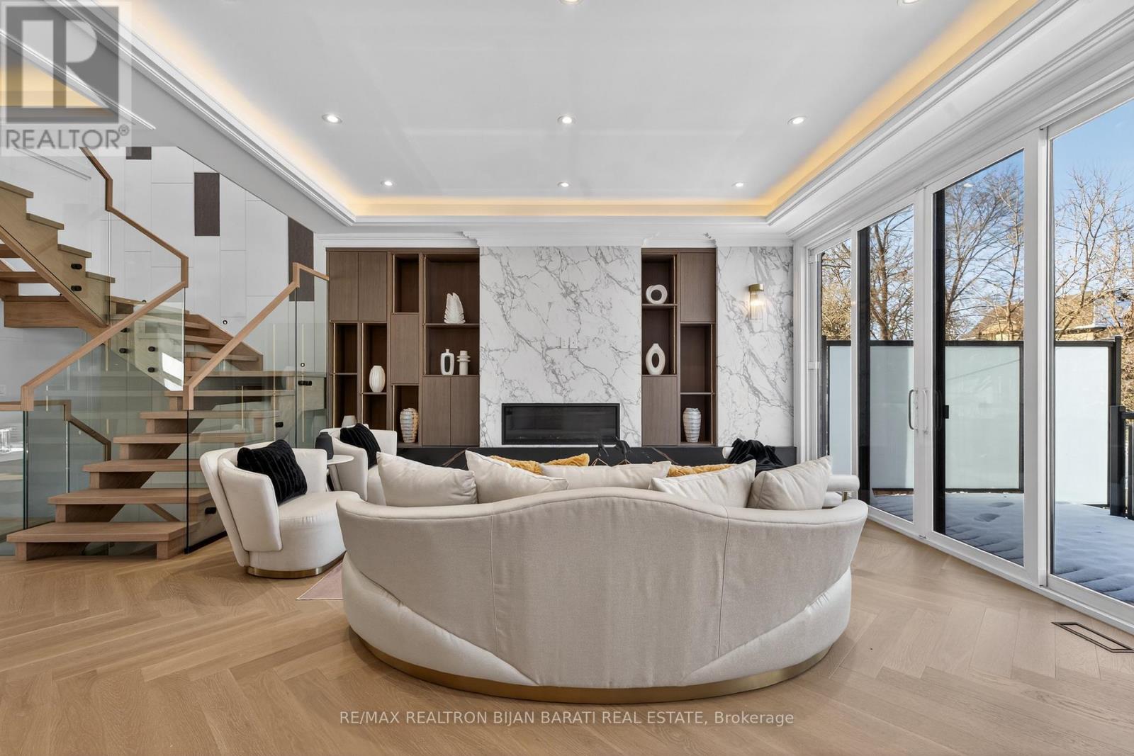 Tastefully Designed, Masterfully Built in 2024, Conventionally located Just Step Away from Vibrant Yonge St / Steeles Ave! Boasting A Perfect Blend Of Contemporary/Modern Design with The Latest Tech & Comfort & Elegance >> ~ 4,800 S.F of Elegant Living Space: 3,262 Sq.Ft + Finished Heated Floor W/O Basement. This Fantastic Home Features Extensive Use of Custom Millwork & Crafted Built-Ins Enriched with Modern Designer Stylish Accents: Blending Wood, Porcelain Slabs, Wallpaper, Glass, Lighting & Other Trendy Materials! Timeless Curb Appeal with A Quality Pre-Cast Facade! Designer Herringbone Hardwood and Porcelain Slabs for Floors, High-Grade Windows, Panelled Walls In Living/Dining/Staircase/Foyer&Hallways! Functional Architectural Design! Open Rising Main Staircase Accented by LED Night Light,Tempered Glass Railing & Skylight with An Artful Wall Panelled. Heated Floor Foyer and Stylish Library With 12' Ceiling Height. Elegant Modern Office with Incredible Designed Walls, Cabinet, Dropped Ceiling & Hidden/Inlay Lighting. Open Concept Main Level with 10' Ceiling, LED Lighting, Decorative Wall Unit/Drink Centre, Living & Dining Room with Panelled Wall and LED Lights. Sleek Professional-Style Kitchen Include Modern Quality Cabinetry, Wolf & Sub-Zero Appliances, Huge Island, Breakfast Bar & An Extra Catering Kitchen in Servery! Dramatic Family Rm with Designer Wall Unit Includes a Gas Fireplace & Floor-To-Ceiling Sliding Doors W/O to Family-Sized Deck and Fully Fenced Backyard! Upstairs with ~10' Cling Includes the Primary Suite Showcases a Designer Bed Board, Boutique Style Walk-In Closet & Skylight Above & Spa-Inspired 6-Pc Ensuite with Smart Toilet & Heated Floor. Additional 3Bedrooms Offer:Own Ensuite, Built-In Closets with Organizers.The Finished Lower Level Boasts 12' Clings, Heated Floor, A Beautiful Wall Unit & Wet Bar, Nanny/Guest Suite & 3-Pc Ensuite, Gym/Den, and a Mudroom. (id:4555)