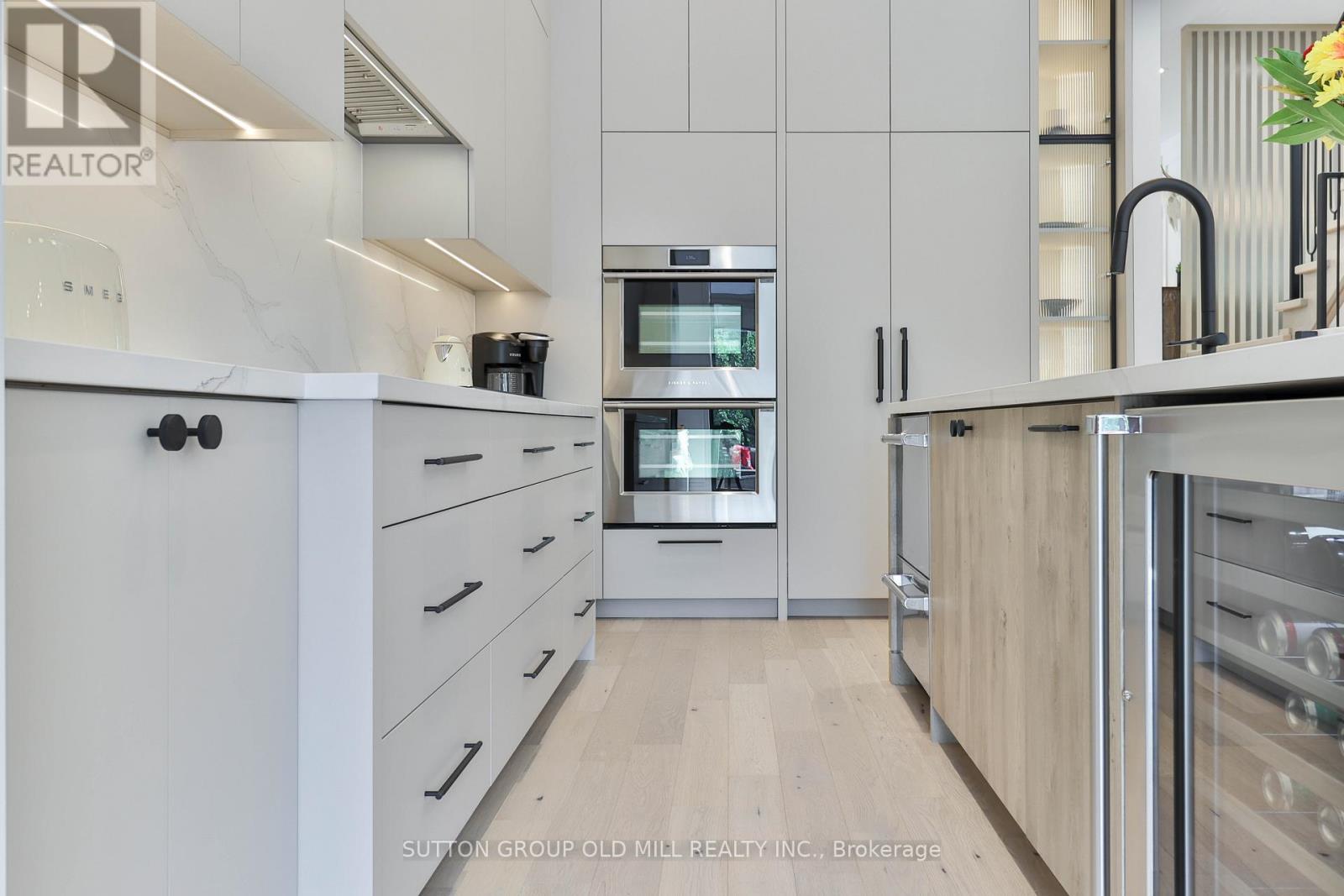 Luxury living in the heart of Etobicoke. This meticulously crafted residence showcases elevated design and exceptional attention to detail throughout. Soaring ceilings create an immediate sense of space, while the inviting living area is anchored by a cozy fireplace-perfect for relaxing winter evenings. Elegant Kentwood hardwood flooring flows throughout the home, beautifully complemented by striking white oak feature walls. The chef-inspired kitchen by Cameo Kitchens is the true centerpiece, blending style with modern functionality. It features sleek European cabinetry, premium Fisher & Paykel appliances, a 42-inch integrated fridge, double wall ovens, and an induction cooktop. Dishwasher drawers are seamlessly integrated into the island, creating a streamlined space ideal for both everyday living and entertaining. The sun-filled dining area offers an expansive setting for hosting family and friends. Upstairs, the primary suite serves as a private retreat, complete with a coffered ceiling, a cozy sitting area, custom dressing room, and a spa-inspired ensuite featuring a soaker tub, double vanity, oversized rain shower, and heated floors. A convenient second-floor laundry room adds to the home's thoughtful design. Smart home technology enhances daily living with integrated speakers, Google Nest climate control, and security cameras for added peace of mind. The lower level offers a refined basement retreat perfect for entertaining, while the backyard oasis is designed for unforgettable gatherings. Situated on a quiet, family-friendly street in desirable South Etobicoke, this home offers quick access to major highways, transit, parks, excellent schools, and the lakefront. A rare blend of luxury, comfort, and cutting-edge design-this is truly a one-of-a-kind place to call home. (id:4555)