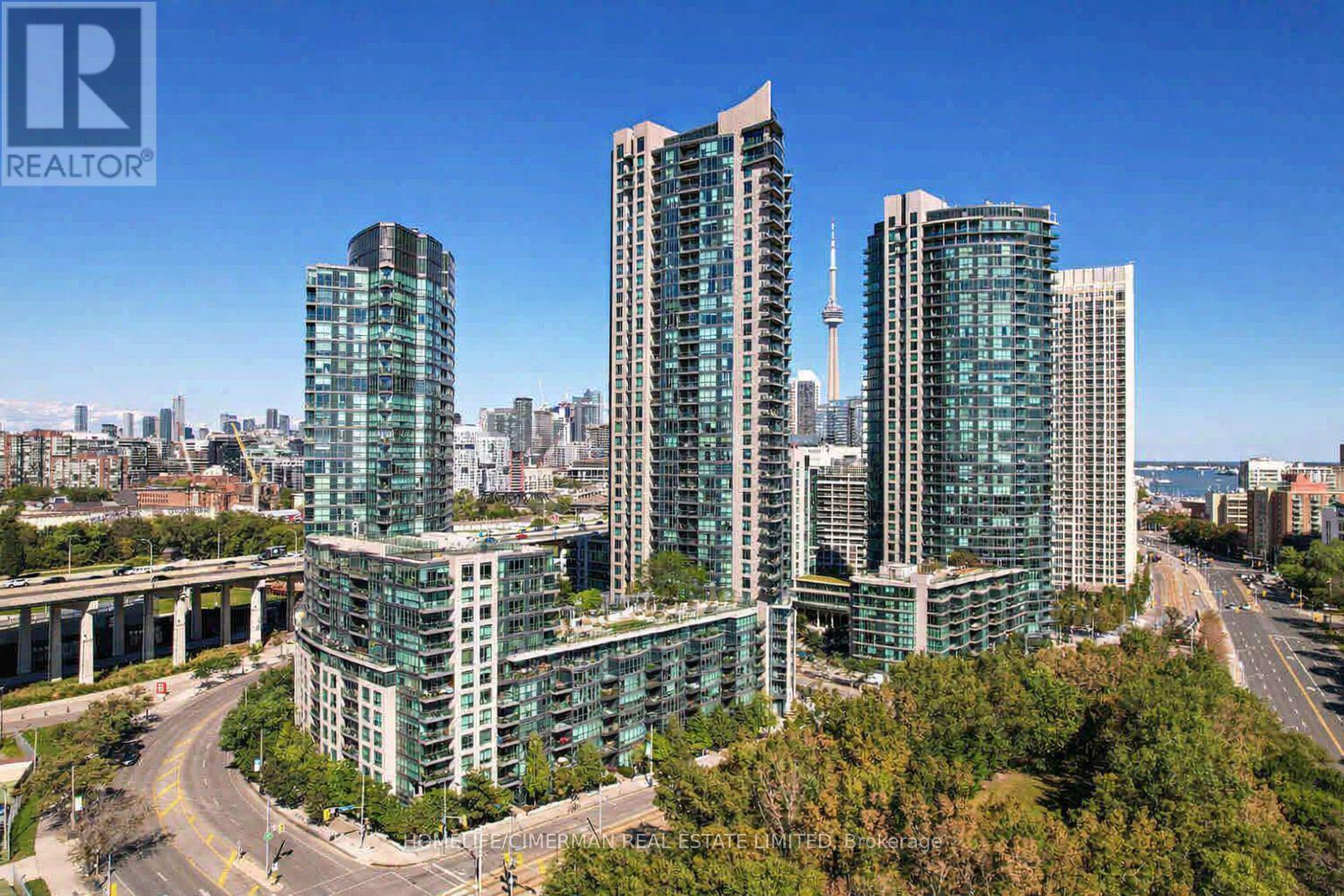 Stunning 977 sq ft split-bedroom layout with 9' ceilings and abundant natural light throughout. This spacious 2-bedroom, 2.5-bathroom suite features two large bedrooms, each with its own 4-piece ensuite and generous closet, offering excellent privacy and comfort. Enjoy unobstructed lake views from this bright and well-designed unit. The dining area can easily be converted into a den or home office, providing flexible living space. Residents enjoy top-tier building amenities, including a gym, indoor pool, hot tub, sauna, games room, party room, and an 8th-floor terrace with BBQ and breathtaking views, plus plenty of visitor parking. Prime location with easy access to public transit and minutes to the QEW. Close to the CN Tower, Rogers Centre, Scotiabank Arena, Billy Bishop Toronto City Airport, waterfront, downtown core, Toronto Chinatown, Enercare Centre, and scenic bike trails. Don't miss this rare opportunity to own in one of Toronto's most desirable locations. Sold As-Is, Where-Is. (id:4555)