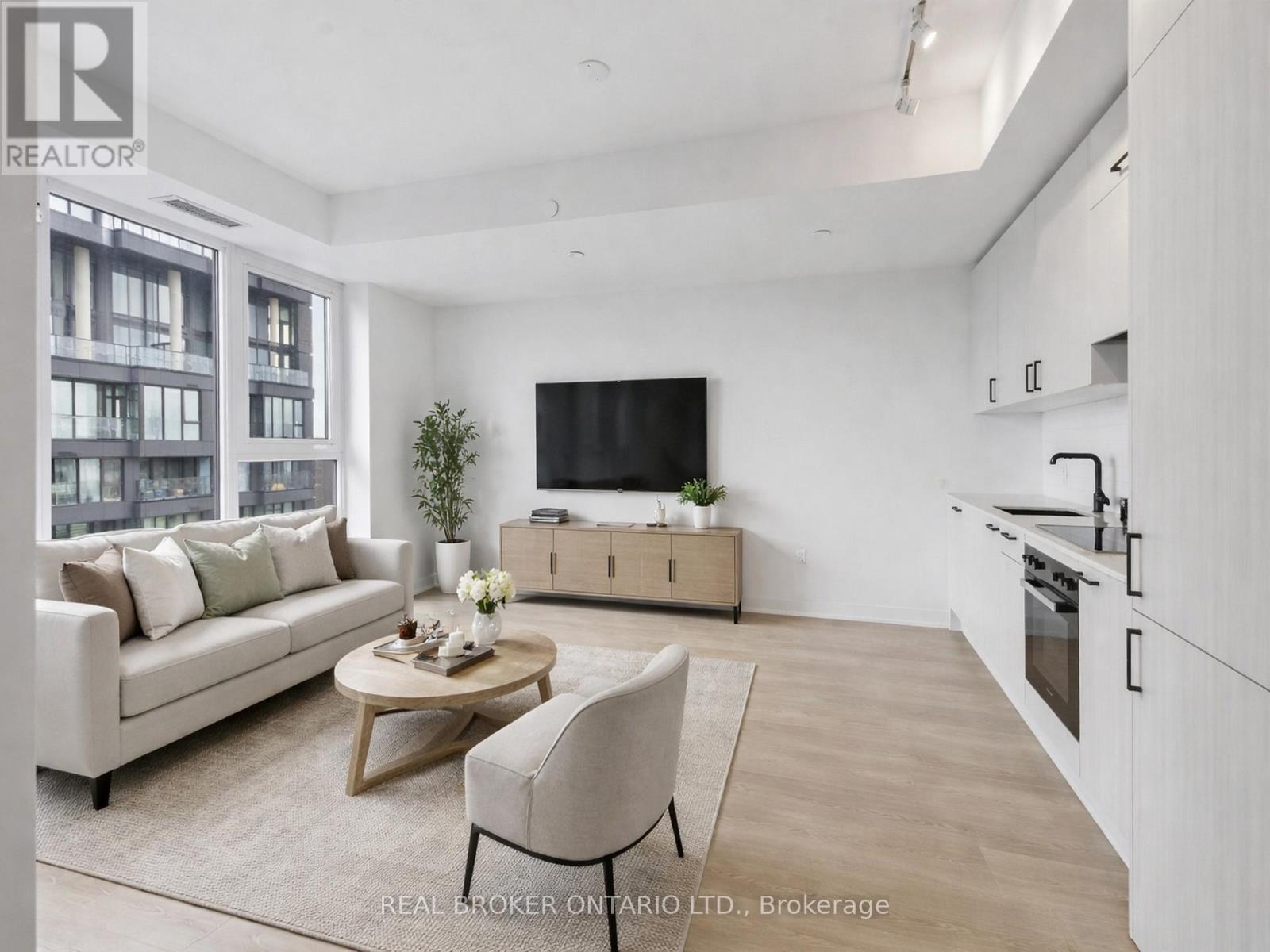 Welcome to elevated living in the heart of the vibrant Crosstown community. This stunning 1-bedroom, 1-bathroom condo offers breathtaking, unobstructed views of the Toronto skyline-where every evening is framed by spectacular sunsets pouring through expansive floor-to-ceiling windows. Thoughtfully designed, the open-concept layout is filled with natural light and showcases a sleek, modern kitchen complete with premium integrated Miele appliances, quartz countertops, and contemporary cabinetry. The living space flows effortlessly, creating the perfect setting to relax or entertain against a truly remarkable city backdrop. This suite also offers enhanced accessibility, featuring wider doorways and a spacious, thoughtfully designed bathroom with grab bars-providing both comfort and ease of living without compromising style. Located in one of Toronto's fastest-growing neighbourhoods, you're surrounded by transit, shopping, parks, and everyday essentials. With quick access to the Eglinton Crosstown LRT, TTC, DVP, and Highways 401/404, commuting is seamless. Just minutes to CF Shops at Don Mills, Sunnybrook Hospital, scenic trails, and more. This is refined urban living with a view you'll never tire of. Offered furnished or unfurnished, with the option to lease fully furnished at $2,400/month for a turnkey, move-in-ready experience. (id:4555)