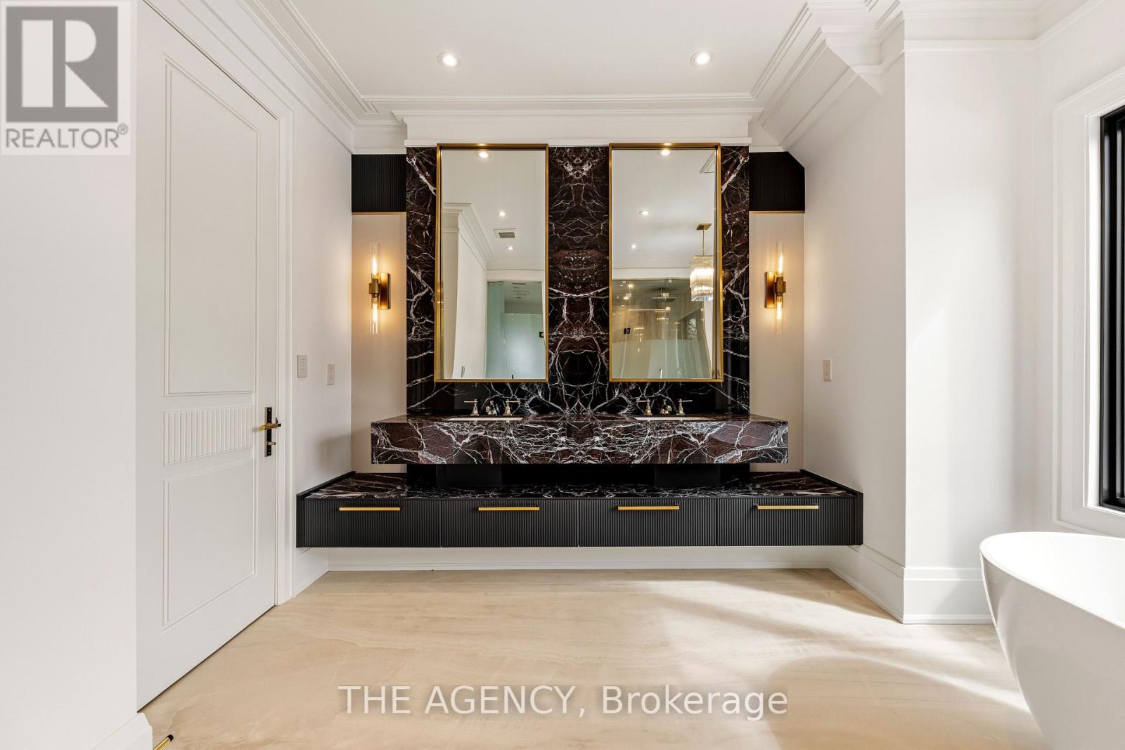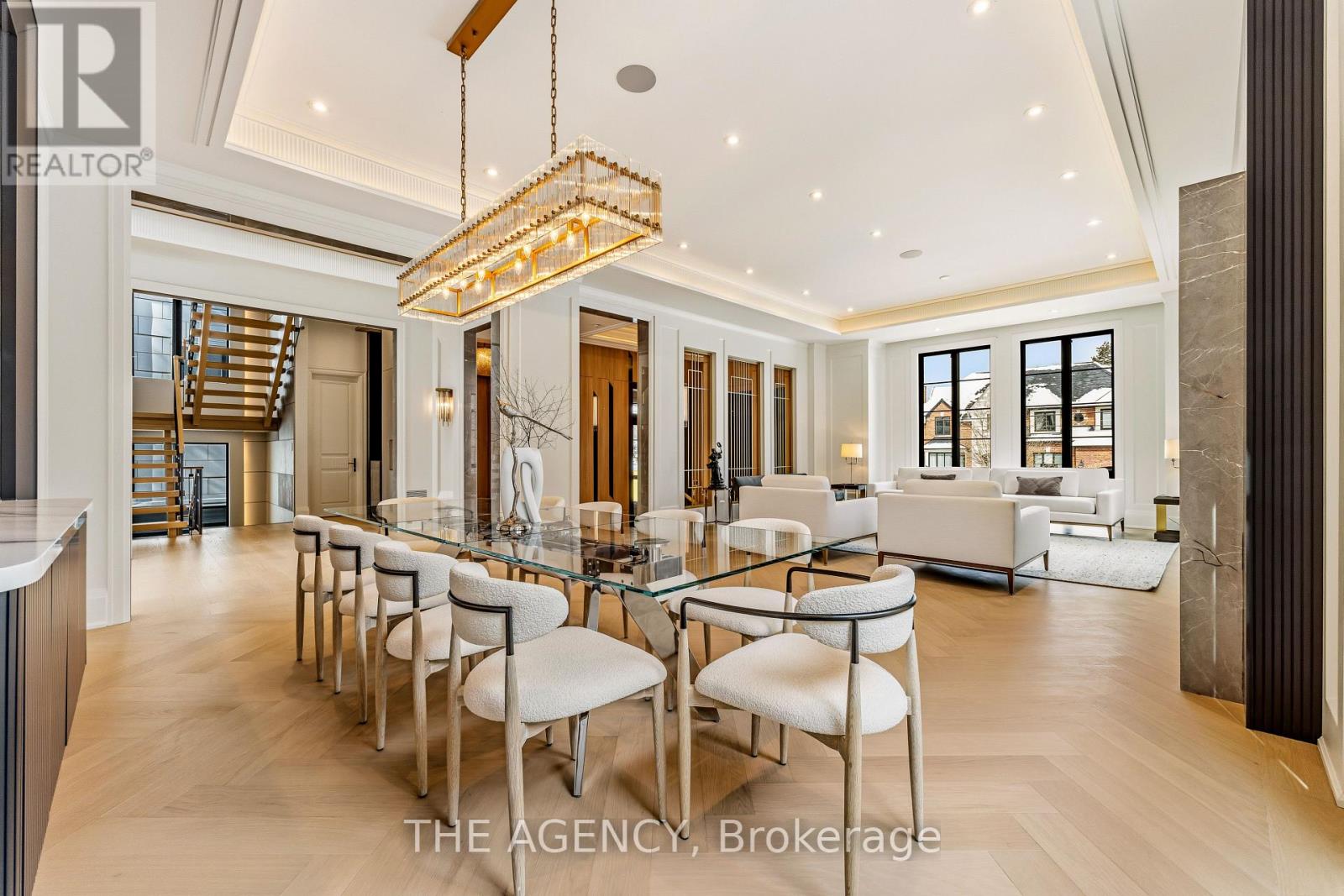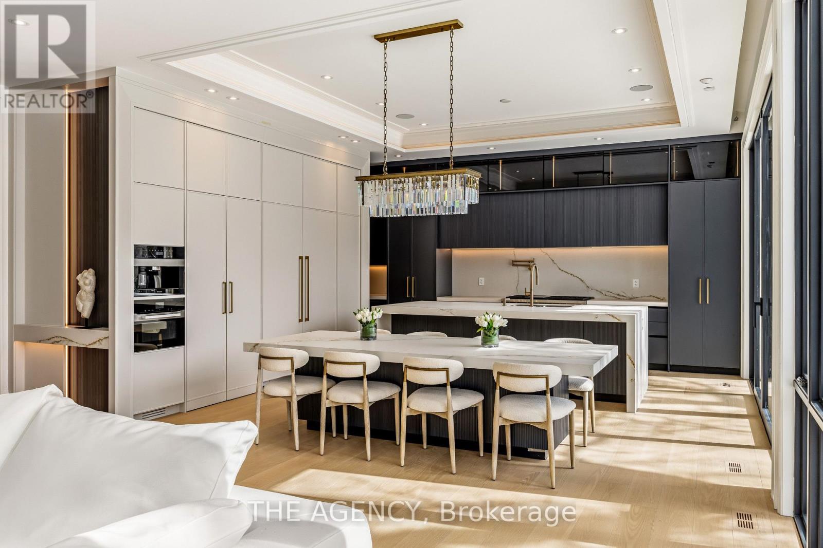 Truly A Must See Home!Welcome to 149 Highland Crescent, a true statement of luxury in the heart of the prestigious Bridle Path. Situated on one of the area's most coveted streets, this brand-new custom residence blends refined design, exceptional craftsmanship, and timeless elegance.Offering approximately 7,500 sq. ft. of thoughtfully curated living space, the home makes a striking first impression with its elegant façade, heated driveway, and heated front porch. Inside, exquisite millwork and designer finishes elevate every room, complemented by elegant fireplaces with 14K gold-vein accents.Designed for both entertaining and everyday living, the main level features a spectacular double-island kitchen by Luxeme, complete with Miele appliances, a Wolf cooktop, and a walk-in pantry, seamlessly open to a bright and expansive family room. A stunning library office with 15-foot ceilings and a dramatic second foyer with 23-foot ceilings, grand staircase, and skylight add architectural distinction.Fully integrated with Lutron automation, the home offers seamless control of lighting and ambiance throughout. The private backyard is a true retreat, showcasing an oversized saltwater pool, gazebo lounge, and beautifully landscaped grounds.Upstairs, five spacious bedrooms provide ideal family living. The primary suite offers a serene escape with custom millwork and a refined makeup area. A private four-stop elevator ensures effortless access to all levels.The lower level is designed for ultimate lifestyle and entertainment, featuring a recreation area, minibar, glass-enclosed gym, home theatre, and nanny suite. A rare offering, this residence defines elevated living in one of Toronto's most exclusive neighbourhoods. (id:4555)