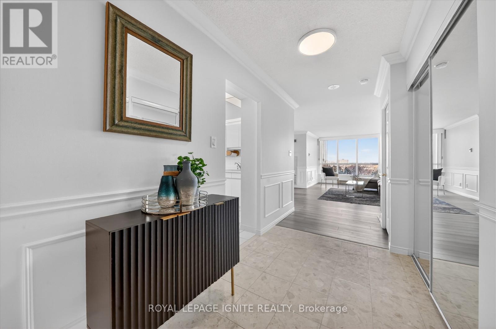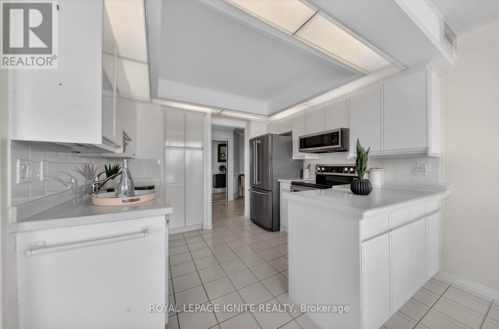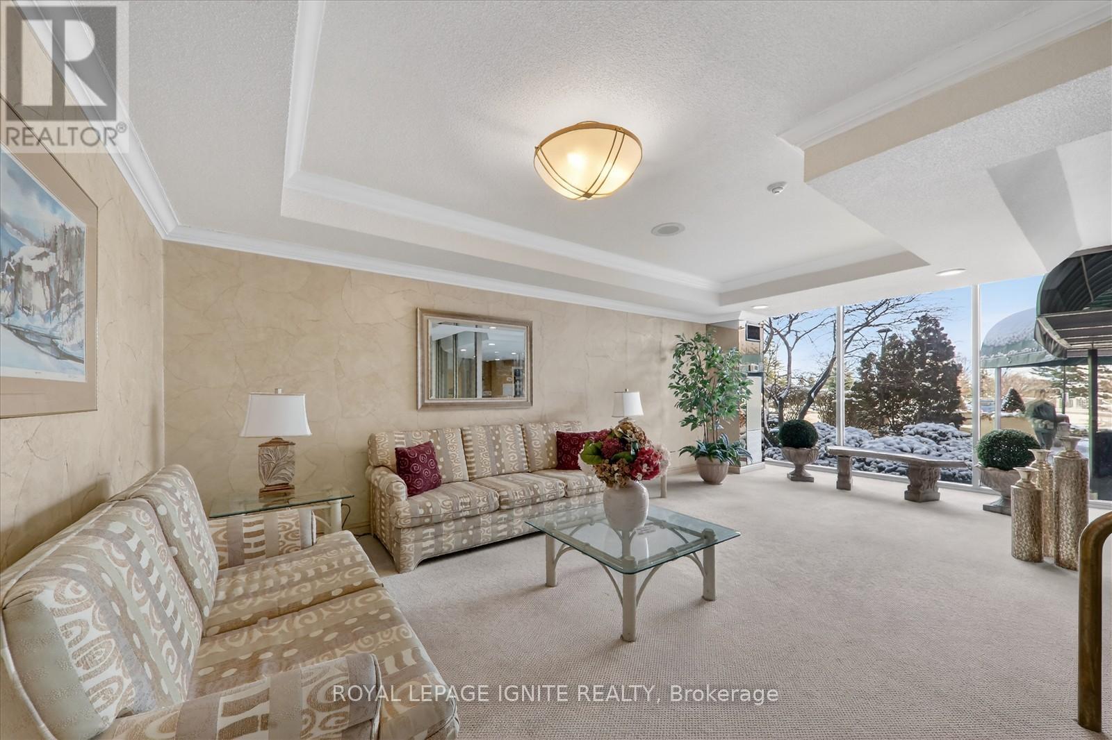 Experience a "bungalow in the sky" lifestyle in the prestigious Gates of Guildwood. Welcome to this luxurious corner unit - a highly desired Rowatson Suite offering an expansive 1,540 sq. ft. of elegant living space. This inviting unit features two spacious bedrooms, two full bathrooms, an in-suite laundry and storage room, and two parking spots on P1. Cozy fireplace, a rare find in condo living! The sun-drenched solarium is perfect for enjoying your morning coffee or an evening drink. Step outside to a spacious balcony, your private outdoor retreat that boasts spectacular west-facing sunsets and a partial lakeview, capturing the blue hues of Ontario's waters from a peaceful vantage point. You must see it for yourself! Meticulously updated, the suite features wainscoting, brand-new luxury flooring, and upgraded bathrooms. Residents enjoy a resort-style, maintenance-free lifestyle with access to an outstanding recreation centre featuring an indoor saltwater pool and whirlpool, a fully equipped gym, a billiards room, an indoor golf practice area, an outdoor putting green, tennis, squash, pickleball courts, and more. A vibrant social calendar offers a variety of clubs and activities to suit every lifestyle. Surrounded by beautifully landscaped gardens, this community offers a tranquil setting and a low-maintenance lifestyle, ideal for downsizers or those planning for retirement. The GO Train is just steps away(25 mins to downtown) and the TTC is at the gate. Nearby Grocery stores, Restaurants/Pubs, Public schools, Catholic schools, Centennial College, and the University of Toronto Scarborough campus add convenience and long-term value! Don't wait-this reimagined suite is the best value in the complex! (id:4555)