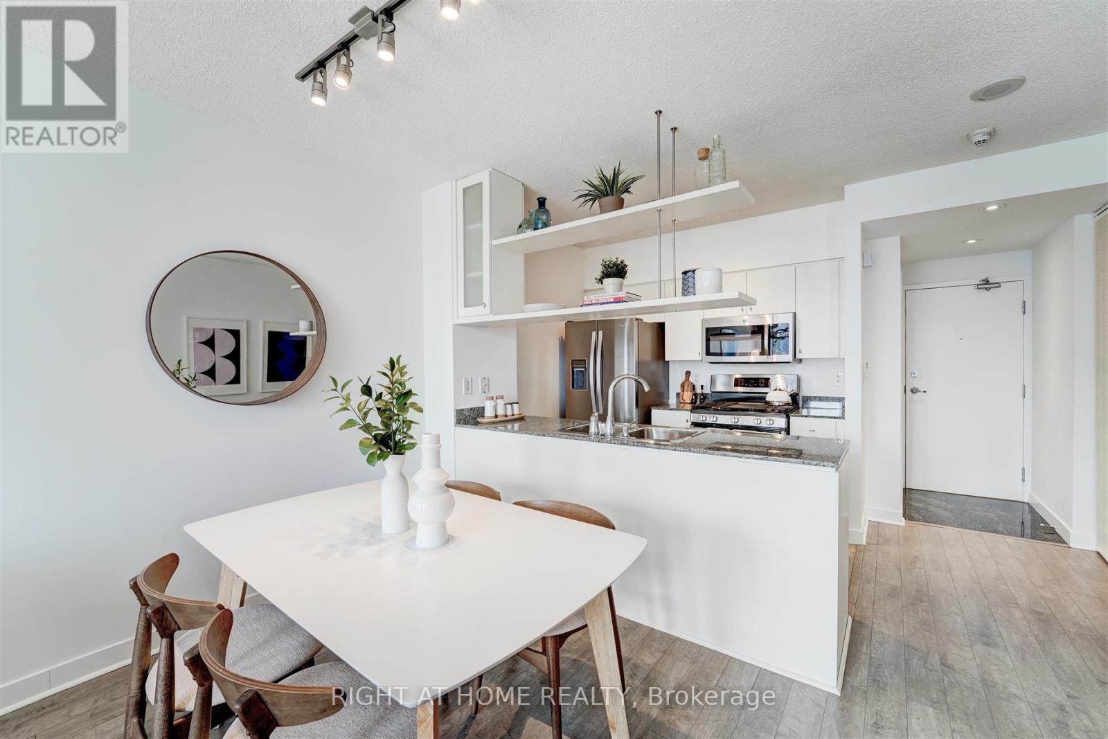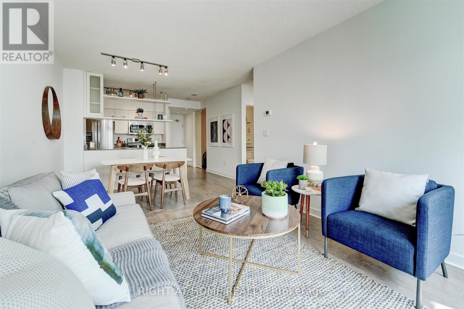 Welcome to Harbour View Estates. This bright and modern 1+Den suite offers a smart, functional layout in one of Toronto's most vibrant waterfront communities. Steps to the Harbourfront, Gardiner Expressway, CN Tower, Scotiabank Arena, Rogers Centre, transit, dining, and shopping. The open-concept living space features floor-to-ceiling windows, filling the unit with natural light. The kitchen is equipped with stainless steel appliances, granite countertops, and a gas stove. Sleek laminate flooring runs throughout, and the den with sliding doors provides versatility as a second bedroom, home office, or nursery. Enjoy city and lake views from the southwest-facing balcony. Parking and locker included, with the parking space featuring an installed two-bike stand. Maintenance fees are all-inclusive, covering heat, hydro, and water. Residents have access to over 30,000 SqFt of amenities at the CityPlace SuperClub, including an indoor pool, gym, basketball court, running track, bowling alley, tennis courts, spa, and 24/7 concierge. Live steps from the water while enjoying world-class amenities and everything downtown Toronto has to offer! (id:4555)