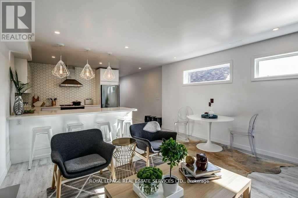 Gorgeous upper floor suite located in the Upper Junction near Jane & St Clair. Newer Build top floor withbeautiful cooks kitchen, 1 bedroom and large den & ensuite laundry. Private entrance w dedicated parkingspot in rear. Huge open concept kitchen/living/dining room. lots of sunlight through multiple skylights.Private deck. steps to transit and express bus 935, close to subway. Great neighborhood, with shopping,dining nearby. Cats Welcome. (id:4555)