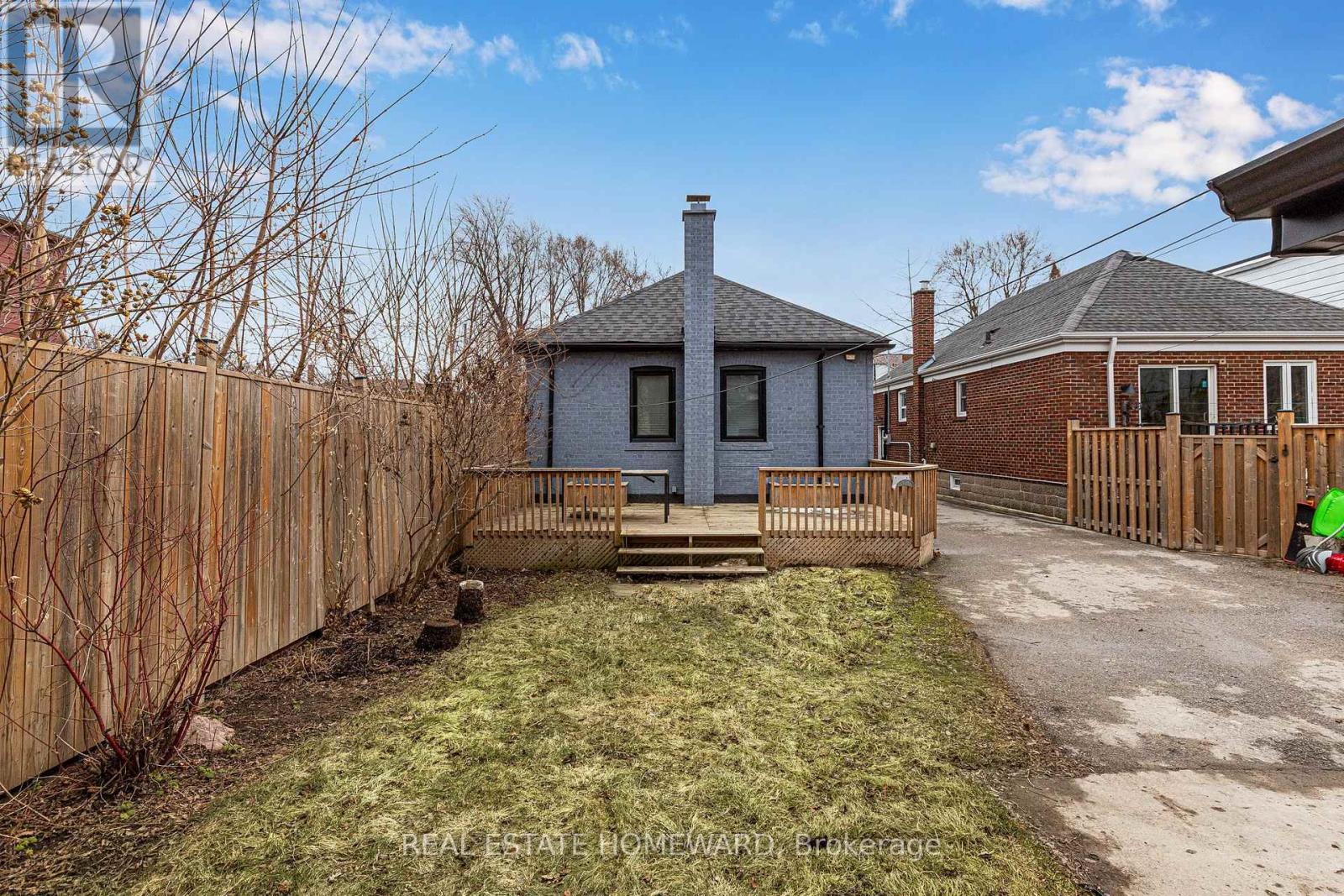 Spectacular fully renovated modern bungalow offering a rare open concept layout unlike anything else in the area. Featuring soaring cathedral ceilings exceeding 15 feet across the main level, this home feels incredibly spacious and truly exceptional. Boasting 2 modern kitchens on the main floor and basement, both updated within the last 5 years with appliances, along with 2 beautifully renovated bathrooms including heated floors. Gorgeous engineered hardwood flooring, baseboards, trim, windows, doors and more. This home truly shows pride of ownership. The fully finished basement offers excellent income or multi generational living potential, complete with a separate side entrance, full kitchen and full bathroom. Additional upgrades include a newer roof re-shingled within the last few years, a brand new high efficiency boiler system installed within the past year with a 10 year warranty, new glass shower enclosures, updated bannister, and extensive exterior improvements including a new deck, fencing and landscaping. Brand new built-in shelving in massive basement laundry area, great for storage! Detached garage at the rear provides parking for up to two vehicles. The property also presents an exciting opportunity for future development! The lot is well suited for a detached garden suite under current Toronto zoning regulations, with a preliminary review indicating no major regulatory barriers, offering strong long-term value and potential for income or family expansion! A turnkey opportunity showcasing exceptional craftsmanship throughout! This is an absolute must see! See attachments for existing floorplans and preliminary ADU information! (id:4555)