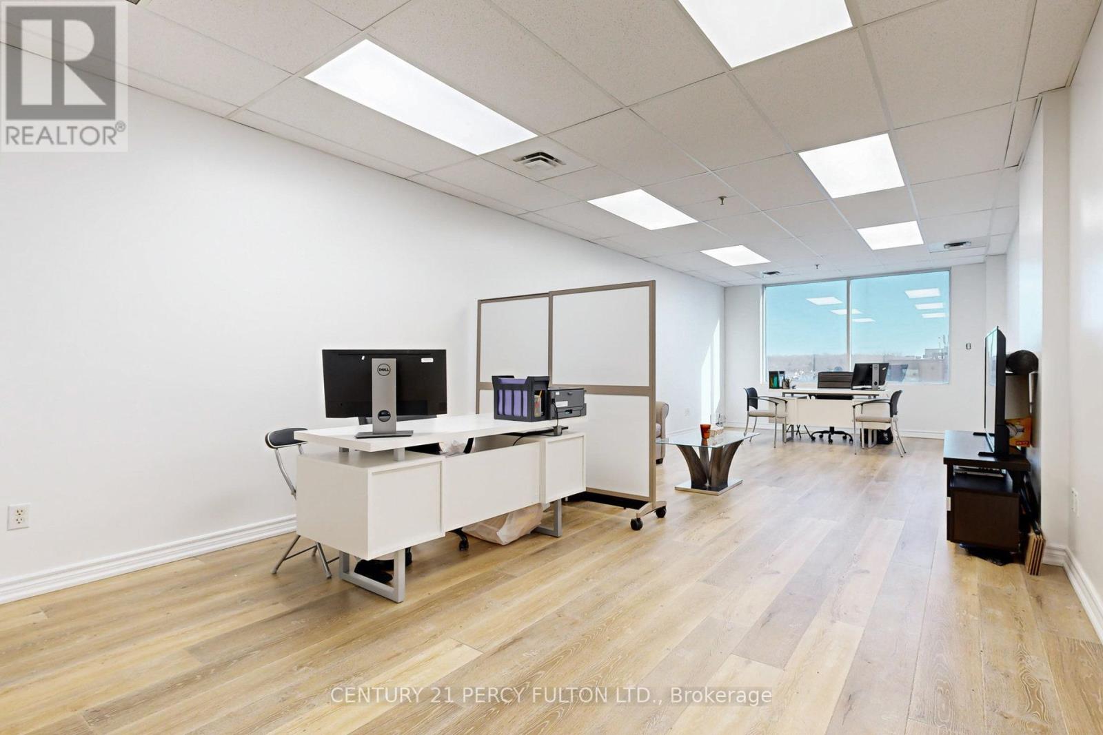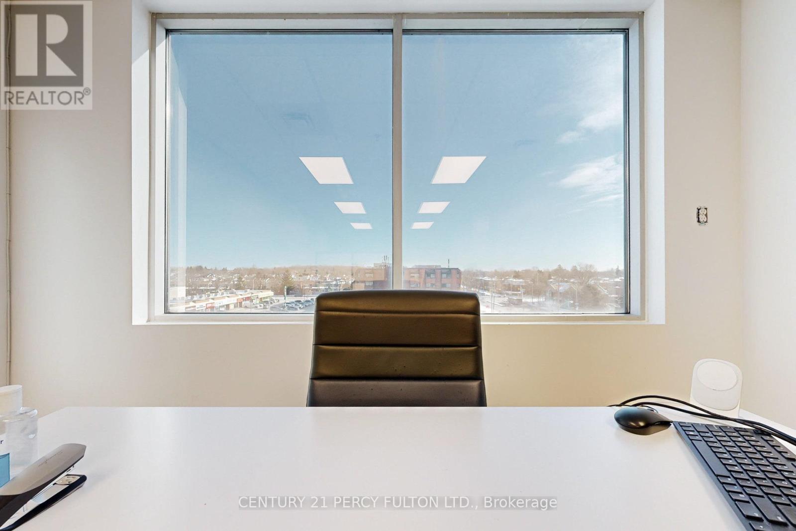 Rare Penthouse professional suite (594 SF) at 4168 Finch Ave East. This turn-key office features upgraded neutral laminate flooring, 8ft ceilings, and an enhanced soundproof wall for maximum privacy. Large East-facing windows offer bright views of a high-traffic plaza anchored by Tim Hortons, restaurants, and retail. Situated on a prestigious floor alongside established legal and medical practices, the unit includes a digital building directory, key-access washrooms on every floor, ample underground parking, and elevator access. Unbeatable connectivity-steps to TTC bus stops and minutes to Hwy 401 and 404. Ideal for professional services requiring a high-profile, accessible location. (id:4555)