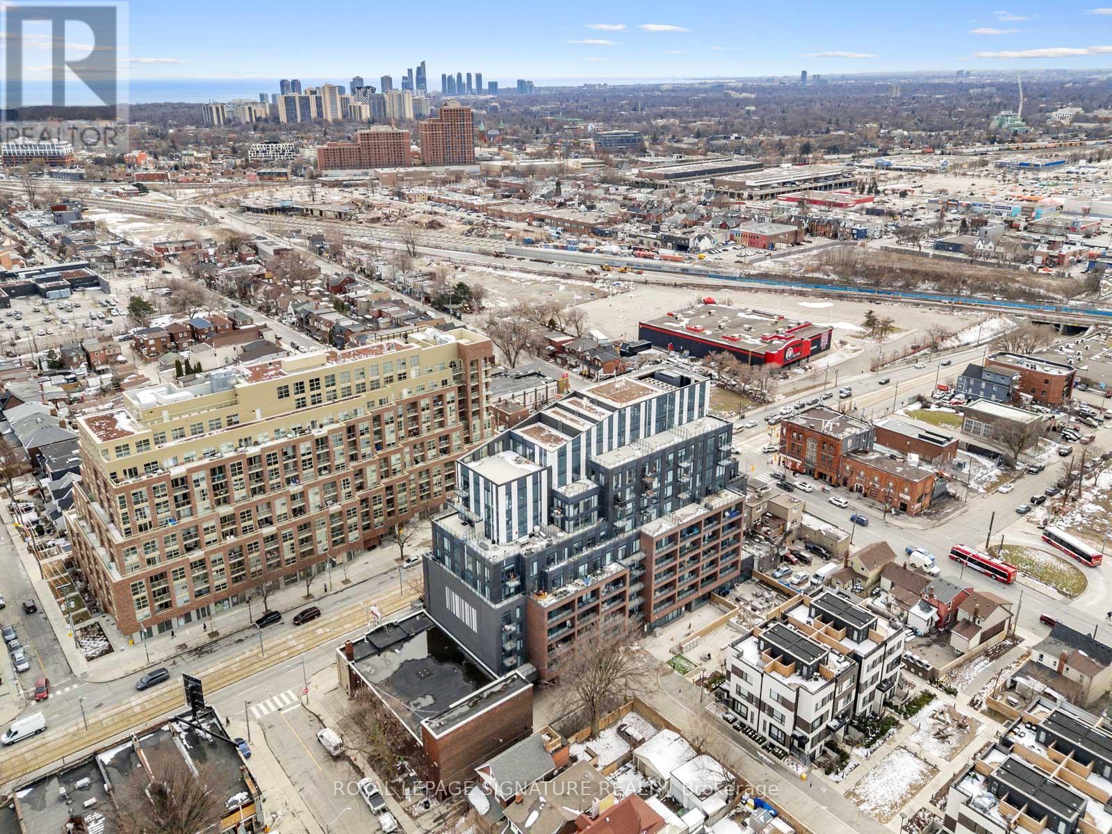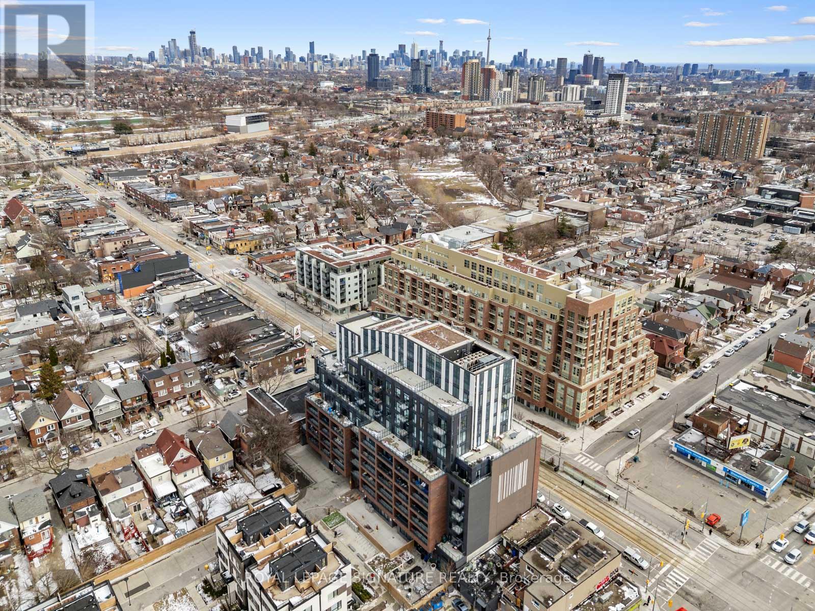 Welcome to this stunning loft-style suite in the heart of St. Clair West. Bright, spacious, and Scandinavian-inspired, this beautifully designed home features approximately 800 sq ft + balcony, a concrete loft style 9'3" Ceiling, 2 bedrooms, and 2 bathrooms, highlighted by windows showcasing panoramic north views of downtown Toronto, The Junction, High Park, and Lake Ontario. The spacious balcony is perfect for everyday enjoyment, offering unobstructed panoramic views. This exceptional outdoor retreat is ideal for morning coffee, gardening, entertaining, or simply relaxing, creating your own private outdoor oasis in the city. Located in an intimate boutique building with contemporary architecture and sophisticated design. Residents enjoy premium building amenities, including a fitness center, a community lounge with co-working space, an urban garage for bike repair or creative projects, a party room, a common BBQ area, EV Chargers, and a bike repair room. Direct access to St. Clair streetcar, mins to the subway, GO train, UP express and future Old Weston SmartTrack line. An exceptional opportunity for professionals, downsizers, investors, or first-time homebuyers seeking a move-in-ready home in a thriving urban community. Just a short stroll to Stockyards Village, grocery stores, schools, and popular local spots such as Geladona, Wallace Espresso, Tavora Foods, Earl's Court Park, the Toronto Public Library, and the Junction Farmers' Market. Commuting is effortless with convenient access to transit, Keele Street, Black Creek, Highways 401 and 400, and a new GO FastTrack station coming soon. Steps from the vibrant shops, cafés, Portuguese bakeries, and culture of St. Clair Ave West and The Junction, yet minutes to downtown Toronto - this is elevated city living in one of Toronto's trendy midtown neighbourhoods. (id:4555)
