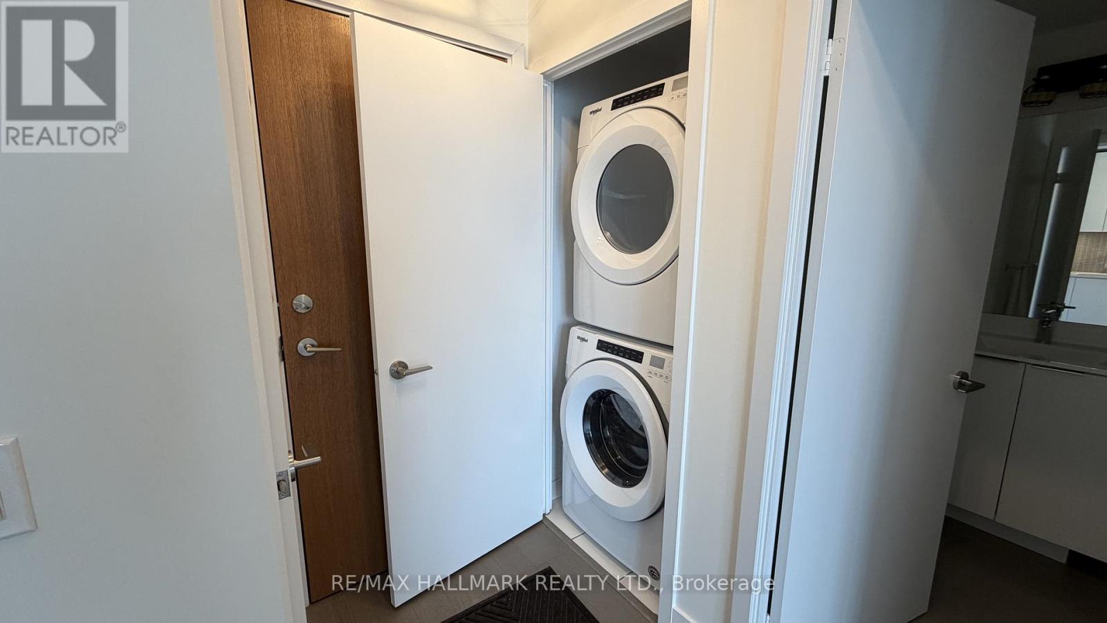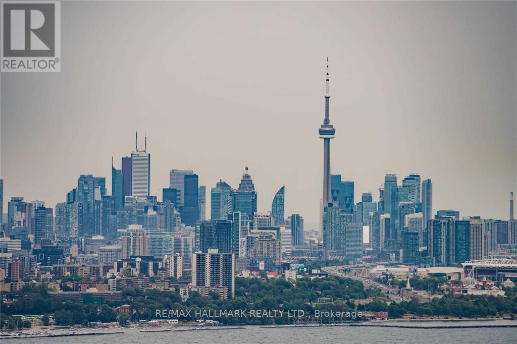 Experience elevated waterfront living with breathtaking views of the CN Tower skyline and Lake Ontario from this high-floor 1-bedroom plus study suite. Designed with efficiency in mind, the unit offers a smart layout complemented by a sleek, contemporary kitchen featuring full-size stainless steel appliances and an in-suite washer and dryer.Step out onto the expansive ~100 sq ft balcony and take in stunning sunset views and open skies stretching across the city.Extensively upgraded (over $20,000 spent), this suite showcases smooth ceilings, a custom-built bedroom closet, mirrored closet doors, updated lighting fixtures, enhanced kitchen cabinetry with upgraded countertops and backsplash, a modernized bathroom with frameless glass shower and upgraded tilework, along with premium laminate flooring throughout.The property includes one parking space and a generously sized locker.Located in the sought-after Eau Du Soleil community in Humber Bay, residents enjoy access to resort-style amenities including a saltwater pool, sauna, jacuzzi, fitness centre, yoga and Pilates studio, theatre room, rooftop terrace with BBQs, elegant party spaces, guest suites, and 24-hour concierge service.Just steps to the lakefront, Humber Bay Park, and a variety of dining and entertainment options, with convenient access to TTC transit, the Gardiner Expressway, Mimico GO Station, Sherway Gardens, Costco, Cineplex, and more. (id:4555)