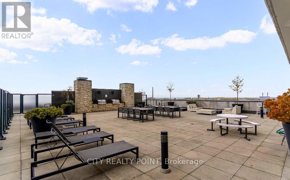 Bright, spacious, and thoughtfully crafted, this loft at The Carlaw features one well-sized bedroom and one full bathroom. Designed for contemporary living, it boasts 9-foot exposed concrete ceilings, expansive floor-to-ceiling windows, and a north-facing balcony complete with a gas line. The open-concept design is perfect for both entertaining and everyday use. The modern kitchen is upgraded with quartz countertops, extended cabinetry, and full-size stainless steel appliances, all presented in a sleek, cohesive finish. Hardwood flooring runs throughout, adding warmth and continuity to the space. A conveniently located locker on the same floor adds extra practicality. Residents enjoy access to premium building amenities, including a rooftop terrace with stunning city views, a fully equipped fitness center, a stylish rooftop party room, and 24-hour concierge service. Ideally located in the vibrant East End, this home places you steps from Crows Theatre, the newly opened Piano Piano, and the best of Leslieville's shops, cafés, parks, and transit. An exceptional opportunity to experience stylish, low-maintenance urban living-welcome home. (id:4555)